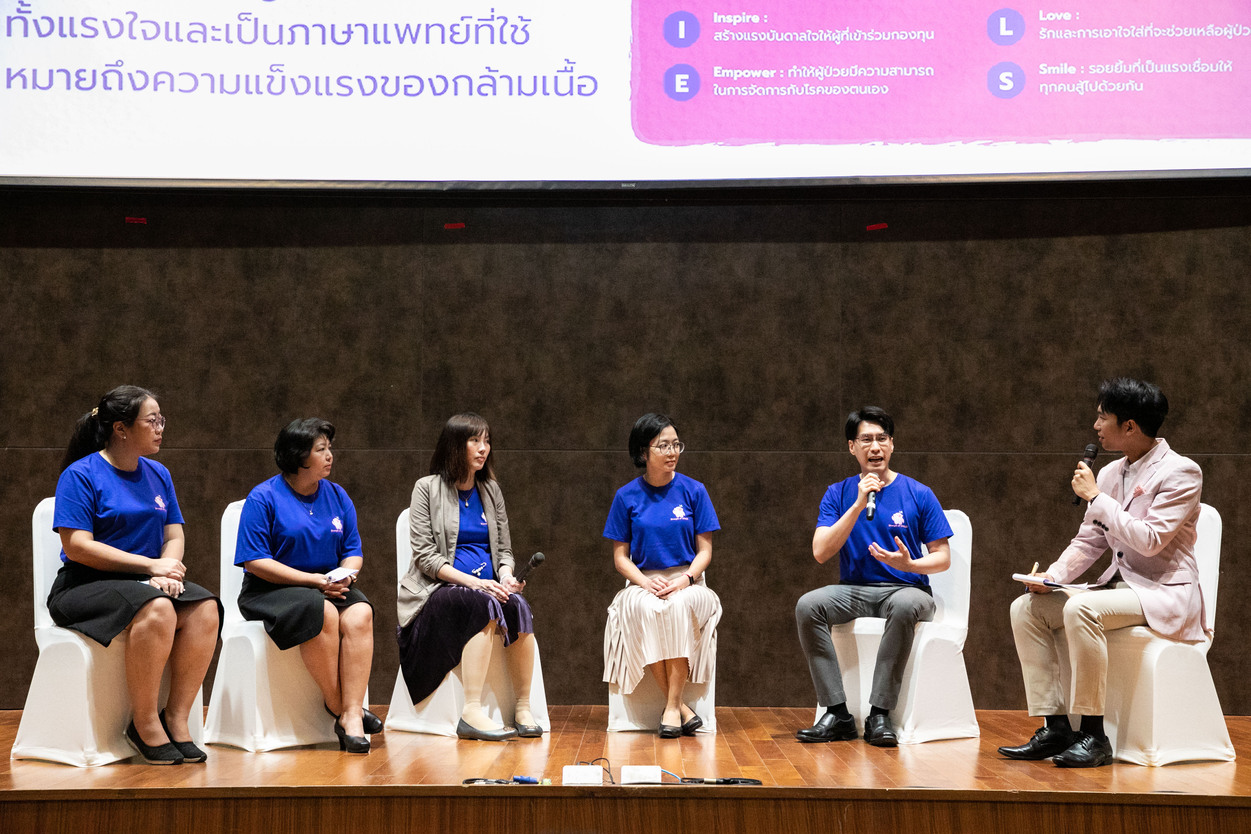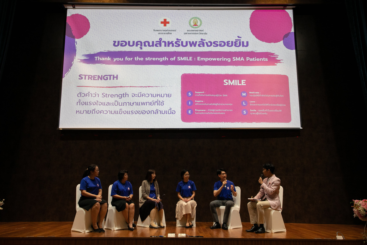 ภายในงาน มีเสวนาจากผู้เชี่ยวชาญในหัวข้อเรื่อง “สถานการณ์ปัจจุบันของโรคกล้ามเนื้ออ่อนแรง SMA และแนะนำกองทุนเพื่อผู้ป่วยโรคกล้ามเนื้ออ่อนแรง SMA” โดยอ.นพ.จักรกฤษ อมรวิทย์ แพทย์ผู้เชี่ยวชาญด้านประสาทวิทยา ฝ่ายอายุรศาสตร์ ผศ.(พิเศษ)พญ.วรวรรณ ศิริชนะ แพทย์ผู้เชี่ยวชาญด้านระบบทางเดินหายใจ ฝ่ายอายุรศาสตร์