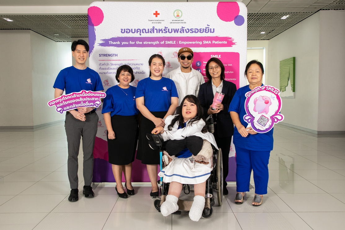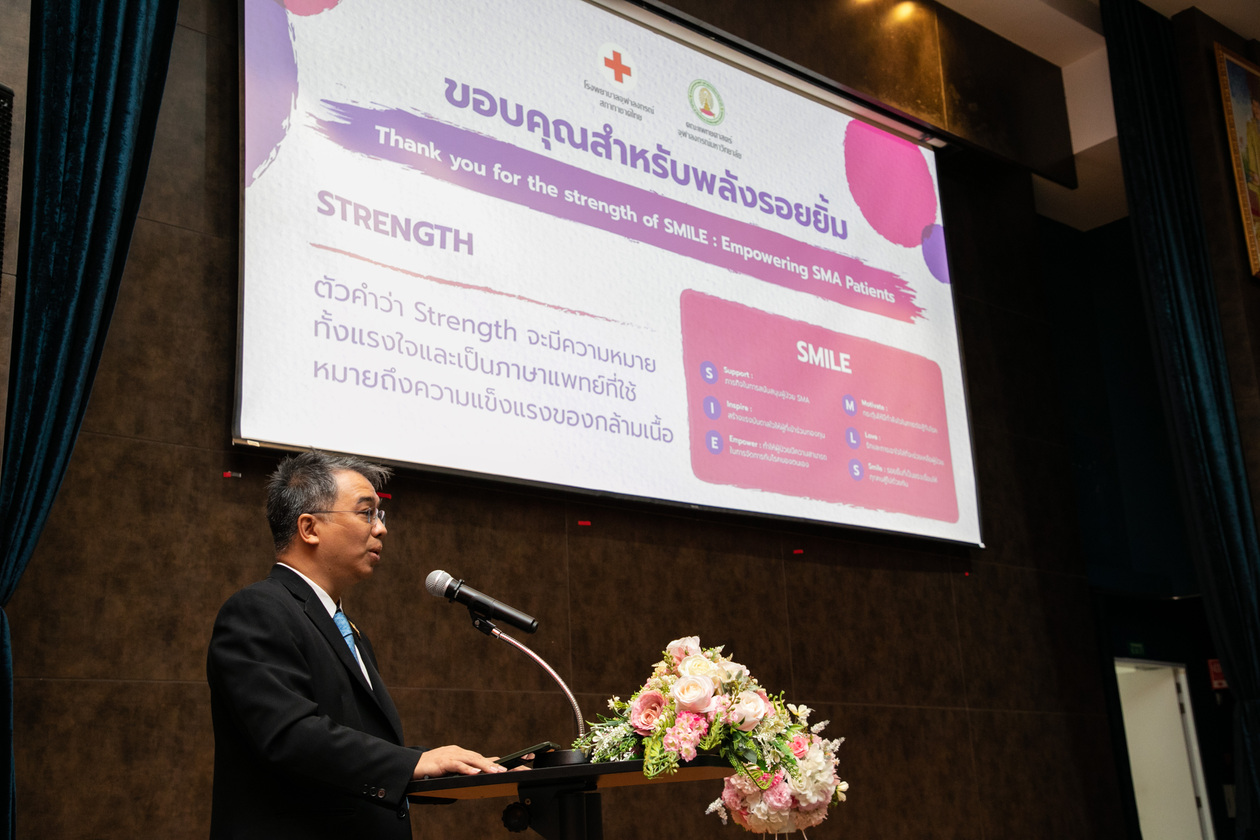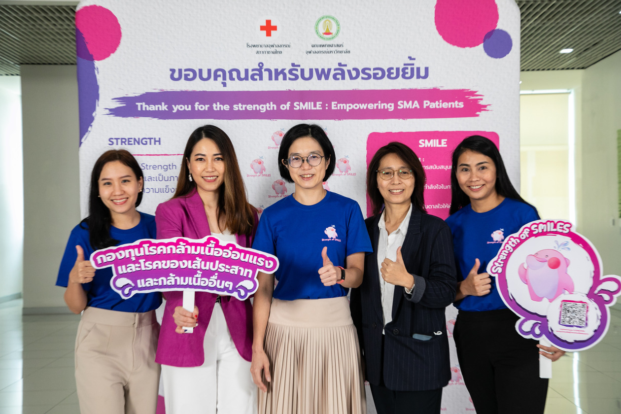 วันจันทร์ ที่ 21 สิงหาคม 2566 โรงพยาบาลจุฬาลงกรณ์ สภากาชาดไทย และคณะแพทยศาสตร์ จุฬาลงกรณ์มหาวิทยาลัย และฝ่ายสวัสดิการสังคม แถลงข่าวเปิดตัวกองทุนโรคกล้ามเนื้ออ่อนแรง และโรคของเส้นประสาท และกล้ามเนื้ออื่นๆ กับงาน “Thank You for the Strength of SMILES: Empowering SMA Patients ขอบคุณสำหรับพลังรอยยิ้ม” เพื่อระดมทุนช่วยเหลือผู้ป่วยโรคกล้ามเนื้ออ่อนแรง และโรคของเส้นประสาท และกล้ามเนื้ออื่น ๆ ให้ได้เข้าถึงการรักษาที่จำเป็น และได้มีคุณภาพชีวิตที่ดีขึ้น โดยมี รศ.นพ.รัฐพลี ภาคอรรถ รองผู้อำนวยการโรงพยาบาลจุฬาลงกรณ์ ฝ่ายสนับสนุนบริการ เป็นประธานเปิดงาน และ อ.นพ.จักรกฤษ อมรวิทย์ แพทย์ผู้เชี่ยวชาญด้านประสาทวิทยา ฝ่ายอายุรศาสตร์ โรงพยาบาลจุฬาลงกรณ์ สภากาชาดไทย กล่าวรายงาน
