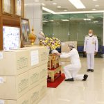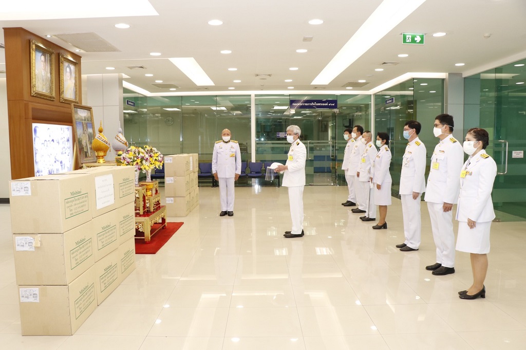 พระบาทสมเด็จพระวชิรเกล้าเจ้าอยู่หัว และสมเด็จพระนางเจ้าฯ พระบรมราชินี ทรงพระกรุณาโปรดเกล้าโปรดกระหม่อม พระราชทานหมวกป้องกันใบหน้า (Face Shield) จำนวน 10,000 ชิ้น เพื่อสนับสนุนการทำงานของบุคลากรทางการแพทย์ ในการปฏิบัติภารกิจท่ามกลางการแพร่ระบาดของเชื้อโรคโควิด-19 แก่เครือข่ายโรงพยาบาลกลุ่มสถาบันแพทยศาสตร์แห่งประเทศไทย (UHosNet) โดยมีคณะแพทย์ กลุ่มสถาบันแพทยศาสตร์แห่งประเทศไทย (UHosNet) เข้ารับพระราชทาน ซึ่งโรงพยาบาลจุฬาลงกรณ์ สภากาชาดไทย นำโดย ศ.นพ.รื่นเริง ลีลานุกรม รองผู้อำนวยการฯ ฝ่ายบริการ เข้าร่วมรับมอบ เมื่อวันพฤหัสบดีที่ 23 เมษายน พ.ศ. 2563 ณ พระที่นั่งอัมพรสถาน พระราชวังดุสิต