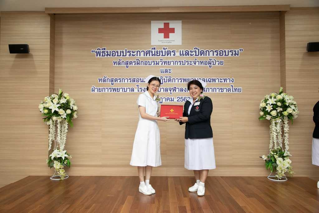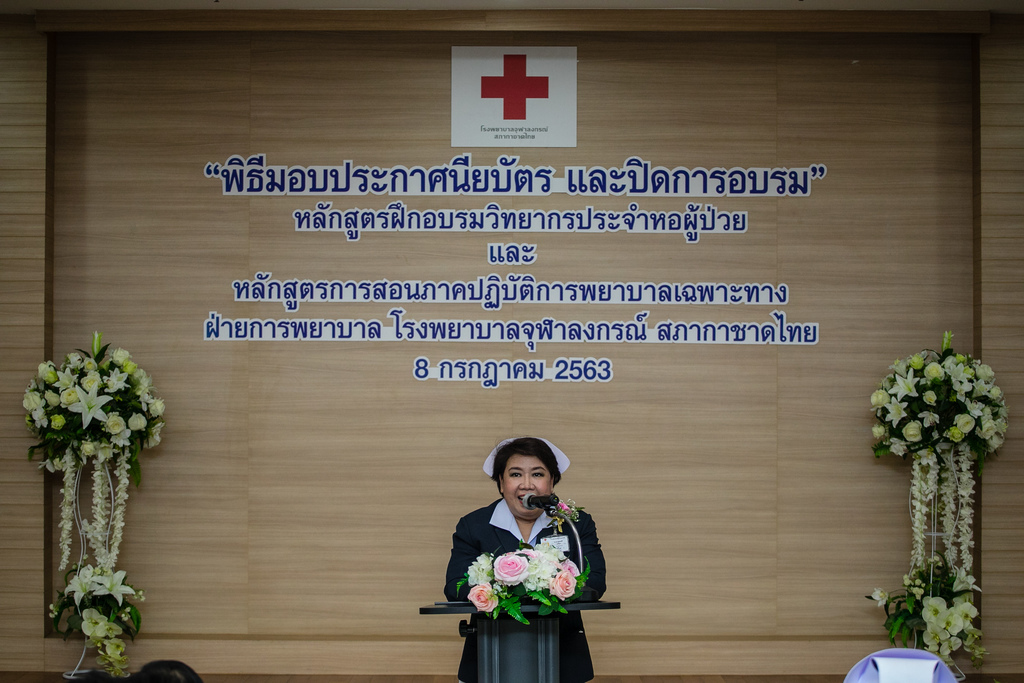 ฝ่ายการพยาบาล โรงพยาบาลจุฬาลงกรณ์ สภากาชาดไทย จัดพิธีมอบใบประกาศนียบัตรและปิดการอบรม หลักสูตรฝึกอบรมอาจารย์พยาบาลคลินิกประจำหอผู้ป่วย และหลักสูตรอบรมระยะสั้น สาขาการสอนภาคปฏิบัติการพยาบาลเฉพาะทาง เพื่อพัฒนาสมรรถนะด้านการสอนงานข้างเตียงที่มีความรู้ ความชำนาญทางคลินิก และผลิตอาจารย์พยาบาลคลินิกประจำหอผู้ป่วยที่มีความรู้ ความเข้าใจ และปฏิบัติบทบาทความเป็นครูสอนงานได้อย่างมีประสิทธิภาพ พร้อมทั้งกลยุทธ์การเรียนการสอนในชั้นเรียน การสอนข้างเตียง รวมถึงการมีทัศนะคติที่ดีต่อการเป็นครูผู้สอนงาน โดยมี นางสาวเฉลาศรี เสงี่ยม หัวหน้าพยาบาล โรงพยาบาลจุฬาลงกรณ์ เป็นประธานมอบใบประกาศนียบัตรและให้โอวาท เมื่อวันพุธที่ 8 กรกฎาคม พ.ศ. 2563 ณ ห้องประชุม 1201 ชั้น 12 อาคารภูมิสิริมังคลานุสรณ์