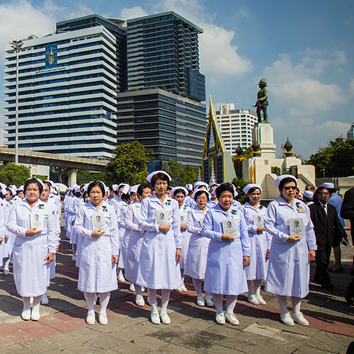 ศ.นพ.สุทธิพงศ์ วัชรสินธุ ผู้อำนวยการโรงพยาบาลจุฬาลงกรณ์ สภากาชาดไทย พร้อมด้วยคณะผู้บริหาร แพทย์ คณาจารย์ พยาบาล บุคลากร นิสิตแพทย์ นักศึกษาพยาบาล โรงพยาบาลจุฬาลงกรณ์ สภากาชาดไทย คณะแพทยศาสตร์ จุฬาลงกรณ์มหาวิทยาลัย และประชาชนทั่วไป ร่วมวางดอกไม้จันทน์เพื่อแสดงความอาลัยถวายแด่ในหลวง รัชกาลที่ 9 เนื่องในพระราชพิธีถวายพระเพลิงพระบรมศพพระบาทสมเด็จพระปรมินทรมหาภูมิพลอดุลยเดช ณ บริเวณลานพระบรมราชานุสาวรีย์พระบาทสมเด็จพระมงกุฎเกล้าเจ้าอยู่หัว สวนลุมพินี กรุงเทพมหานคร