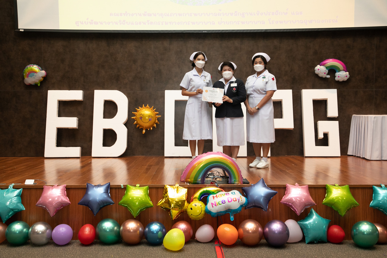 เมื่อวันที่ 21 เมษายน 2566 พว.เฉลาศรี เสงี่ยม หัวหน้าพยาบาล โรงพยาบาลจุฬาลงกรณ์ สภากาชาดไทย เป็นประธานในพิธีเปิดโครงการ เสริมสร้างพลังแรงบันดาลใจสร้างสรรค์ EB-CNPG’ 2023 เรื่อง “Kick off EB-CNPG. 2022” มอบเกียรติบัตรให้แก่คณะทำงาน โดยมีผู้บริหารทางการพยาบาล ร่วมพิธี ณ ห้องประชุม 1210