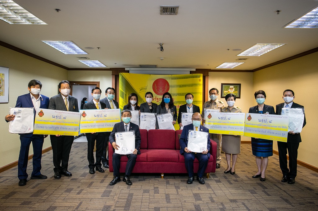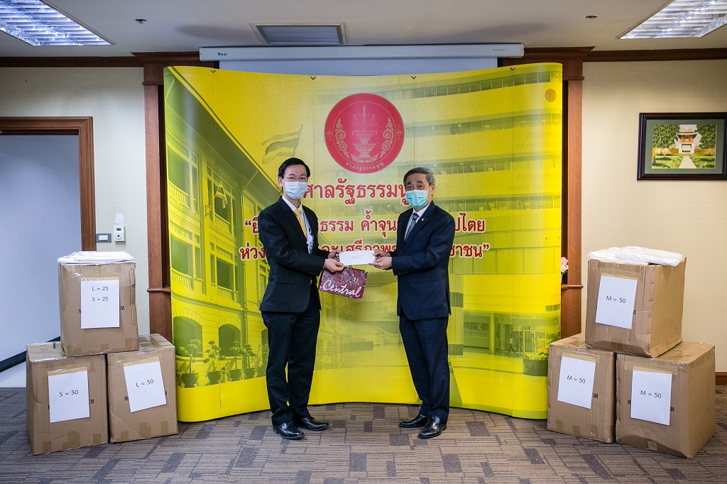 นายชูชาติ เพ็ชรอำไพ ประธานผู้ศึกษาอบรมหลักสูตร “หลักนิติธรรมเพื่อประชาธิปไตย” (นธป.) รุ่นที่ 8 วิทยาลัยศาลรัฐธรรมนูญ มอบชุด PPE จำนวน 300 ชุด แก่โรงพยาบาลจุฬาลงกรณ์ สภากาชาดไทย ซึ่งเป็นกิจกรรมเพื่อสาธารณประโยชน์ (CSR) กิจกรรมหนึ่งของ นธป. รุ่นที่ 8 ในการสนับสนุนการแพทย์และการพยาบาล โดยมี ศ.ดร.นพ.วีรพันธุ์ โขวิฑูรกิจ รองผู้อำนวยการฯ ฝ่ายการคลัง เมื่อวันจันทร์ที่ 13 เมษายน 2563 ณ ศาลรัฐธรรมนูญ