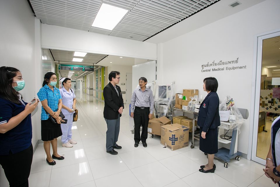 อ.นพ.เพชร อลิสานันท์ ผู้ช่วยผู้อำนวยการโรงพยาบาล ฯ ด้านสนับสนุนบริการ และนางนุชรัตน์ เครืออารีย์รัตน์ หัวหน้าศูนย์เครื่องมือแพทย์ ส่งมอบเครื่องมือแพทย์ให้กับโรงพยาบาลวิหารแดง จังหวัดสระบุรี โดยมี อ.นพ.ธนกร ศรัณยภิญโญ ผู้อำนวยการโรงพยาบาลวิหารแดง จ.สระบุรี เป็นผู้รับมอบ เมื่อวันพฤหัสบดีที่ 27 กุมภาพันธ์ 2563 ณ ศูนย์เครื่องมือแพทย์ อาคารภูมิสิริมังคลานุสรณ์ ชั้น 3 โรงพยาบาลจุฬาลงกรณ์