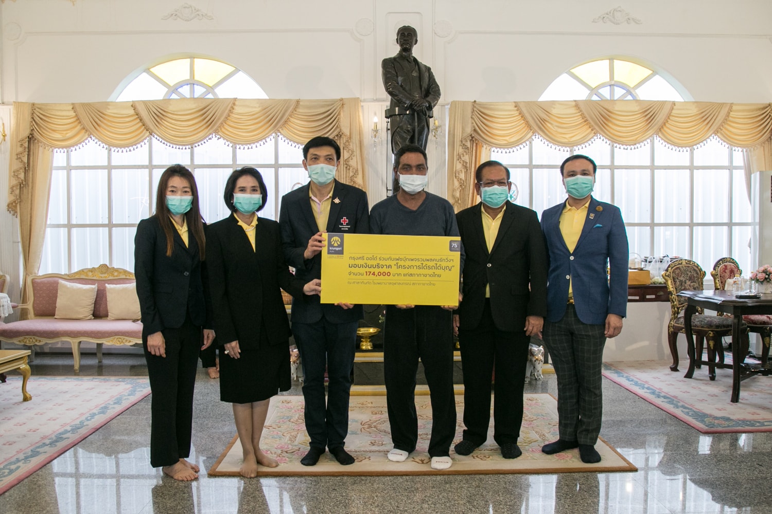 “กรุงศรี ออโต้” ผู้นำธุรกิจสินเชื่อยานยนต์ครบวงจร เครือธนาคารกรุงศรีอยุธยา จำกัด (มหาชน) นำโดย นางกฤติยา ศรีสนิท ประธานคณะเจ้าหน้าที่ด้านธุรกิจสินเชื่อยานยนต์ ธนาคารกรุงศรีอยุธยา จำกัด (มหาชน) พร้อมด้วยคณะผู้บริหารกรุงศรี ออโต้ ร่วมกับ นายวินัย ไกรบุตร ตัวแทนเพจเฟซบุ๊ก “รวมพลคนรักวิ่ง งานเดินวิ่งเพื่อการกุศล นัดรวมพล รวมพลัง ครั้งที่ 1” มอบเงินสนับสนุนจากโครงการ “ได้รถ ได้บุญ” จำนวน 174,000 บาท ให้แก่โรงพยาบาลจุฬาลงกรณ์ สภากาชาดไทย เพื่อสมทบทุนการจัดซื้ออุปกรณ์ทางการแพทย์ โดยมี รศ.นพ.นิพนธ์ เขมะเพชร รองผู้อำนวยการฯ ฝ่ายสนับสนุนบริการ เป็นผู้รับมอบ เมื่อวันจันทร์ที่ 29 มิถุนายน พ.ศ. 2563 ณ ศาลาทินทัต