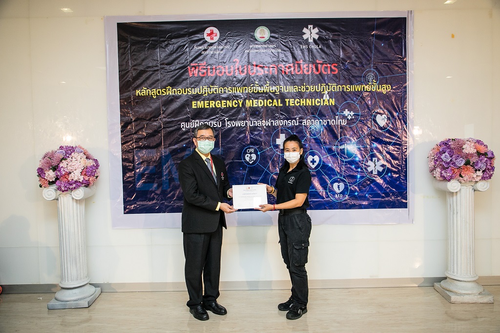 ศูนย์กู้ชีพ ฝ่ายเวชศาสตร์ฉุกเฉิน โรงพยาบาลจุฬาลงกรณ์ สภากาชาดไทย จัดกิจกรรมมอบใบประกาศนียบัตร และปิดการอบรม หลักสูตรปฏิบัติการแพทย์ขั้นพื้นฐานและช่วยปฏิบัติการแพทย์ขั้นสูง รุ่นที่1 ประจำปี 2563 โดยมี ผศ.นพ.พรเลิศ ฉัตรแก้ว ผู้ช่วยผู้อำนวยการฯ ด้านผู้ป่วยวิกฤต เป็นประธาน เมื่อวันพฤหัสบดีที่ 24 กันยายน พ.ศ.2563 ณ ห้องประชุม 1209 อาคารภูมิสิริมังคลานุสรณ์