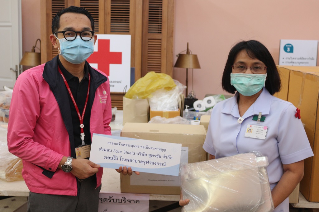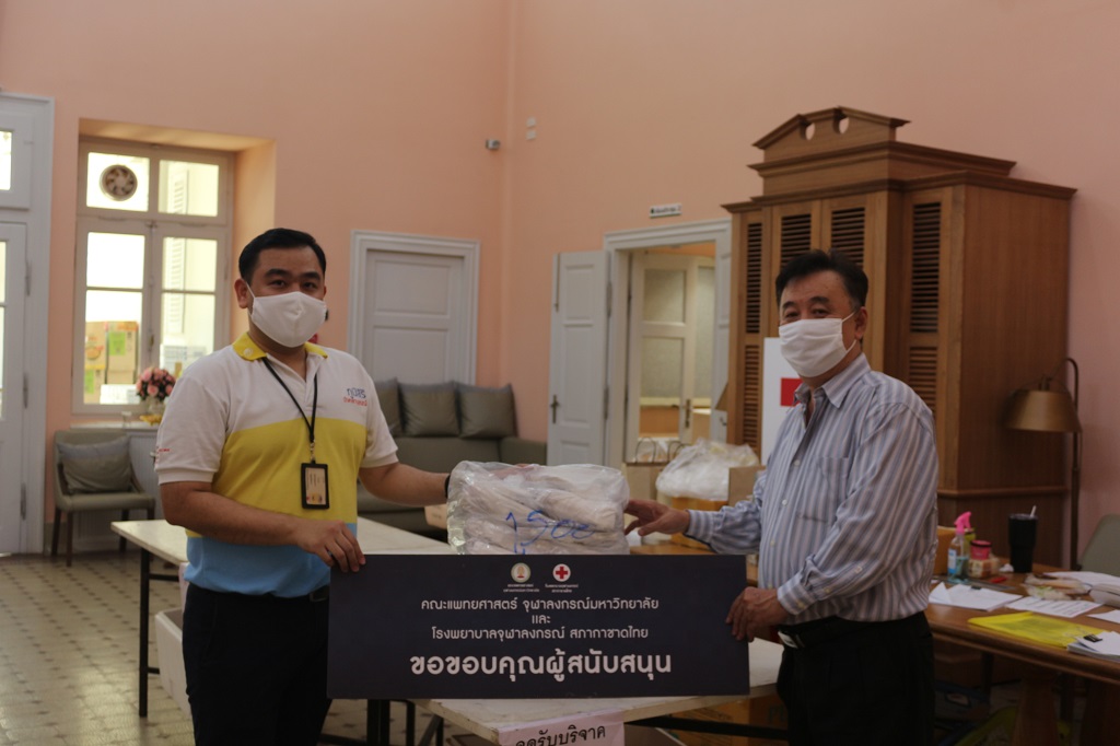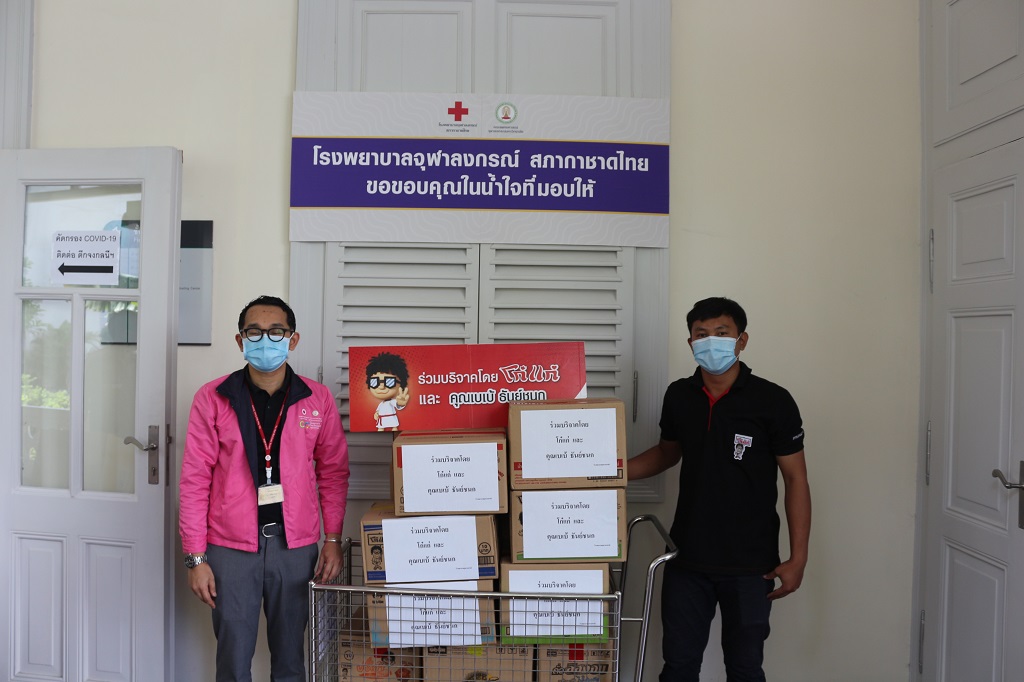 โรงพยาบาลจุฬาลงกรณ์ สภากาชาดไทย ขอขอบพระคุณ ท่านผู้มีจิตศรัทธาที่ประสงค์สนับสนุน นำอาหารปรุงสำเร็จ อาหารแห้ง และสิ่งของต่างๆ มาให้แก่ทีมแพทย์ พยาบาล และบุคลากร ที่ปฏิบัติหน้าที่ในสถานการณ์การแพร่ระบาดของ COVID-19 เพื่อเป็นขวัญและกำลังใจต่อบุคลกากรทางการแพทย์เพื่อปฏิบัติหน้าที่ให้สำเร็จลุล่วงต่อไป โดยมี นางอัญชลี โสตถิพันธุ์ ผู้ช่วยผู้อำนวยการฯ ด้านทรัพยากรบุคคล เป็นผู้รับมอบ เมื่อวันพฤหัสบดีที่ 16 เมษายน 2563 ณ อาคารผ่าตัดเก่า (111) โรงพยาบาลจุฬาลงกรณ์ สภากาชาดไทย