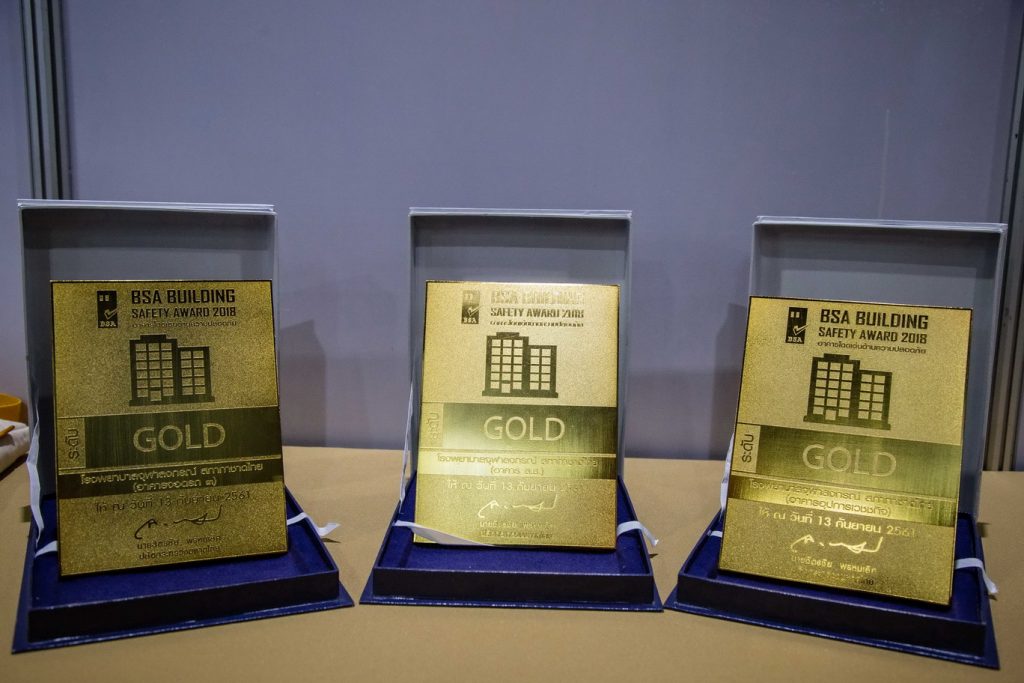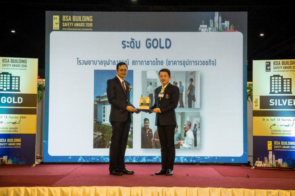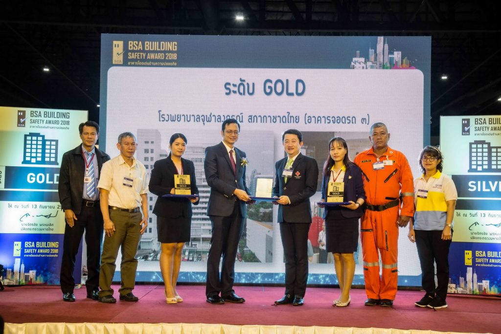 ทั้งนี้ ผลการตัดสินประกวดอาคาร โรงพยาบาลจุฬาลงกรณ์ สภากาชาดไทย ได้รับรางวัล BSA Building Safety Award 2018 อาคารโดดเด่นด้านความปลอดภัย ระดับ Gold จำนวน 3 อาคาร ได้แก่