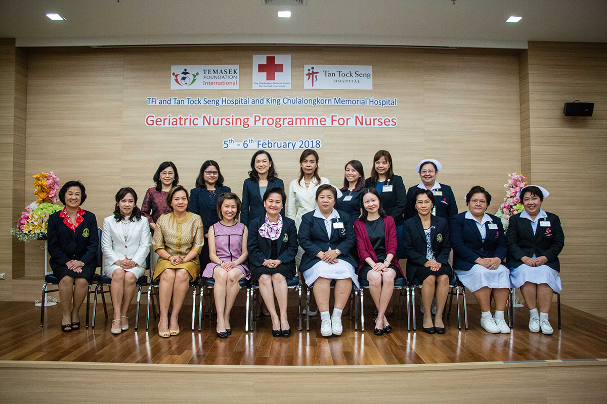ฝ่ายการพยาบาล โรงพยาบาลจุฬาลงกรณ์ สภากาชาดไทย ร่วมกับ Temasek Foundation International and Tan Tock Seng Hospital สาธารณรัฐสิงคโปร์ จัดการสัมมนาเชิงปฏิบัติการ เรื่อง TFI Geriatric Nursing Course for Nurses เพื่อศึกษาเรียนรู้ และแลกเปลี่ยนประสบการณ์ในการดูแล และการพยาบาลผู้สูงอายุ โดยมี นางพรทิพย์ ควรคิด หัวหน้าพยาบาลโรงพยาบาลจุฬาลงกรณ์ เป็นประธานเปิด พร้อมให้การต้อนรับ Ms Goh Jen Kit , Associate Director & Head ,Programme Management Temasek Foundation International และคณะ เมื่อวันที่ 5 กุมภาพันธ์ 2561 ณ ห้องประชุม 1301 ชั้น 13 อาคารภูมิสิริมังคลานุสรณ์