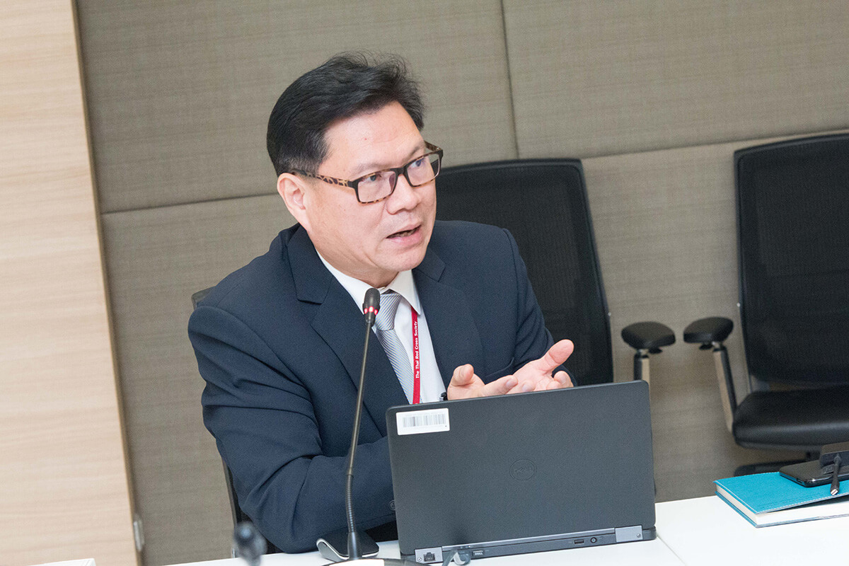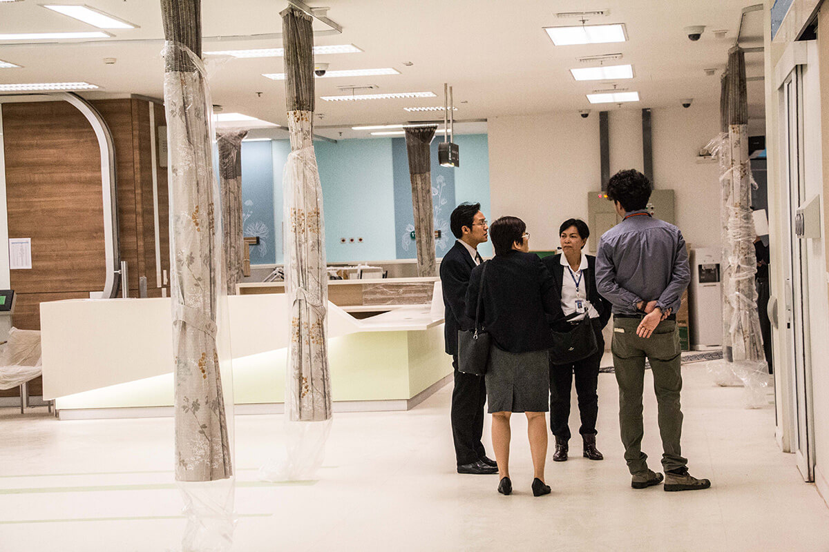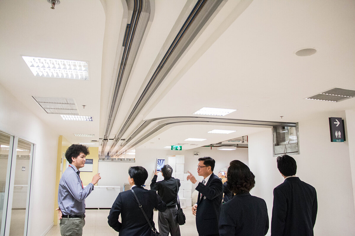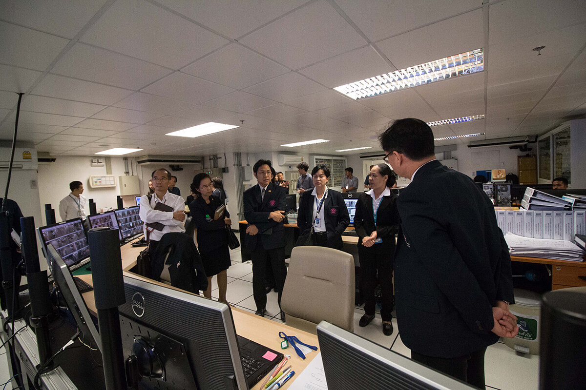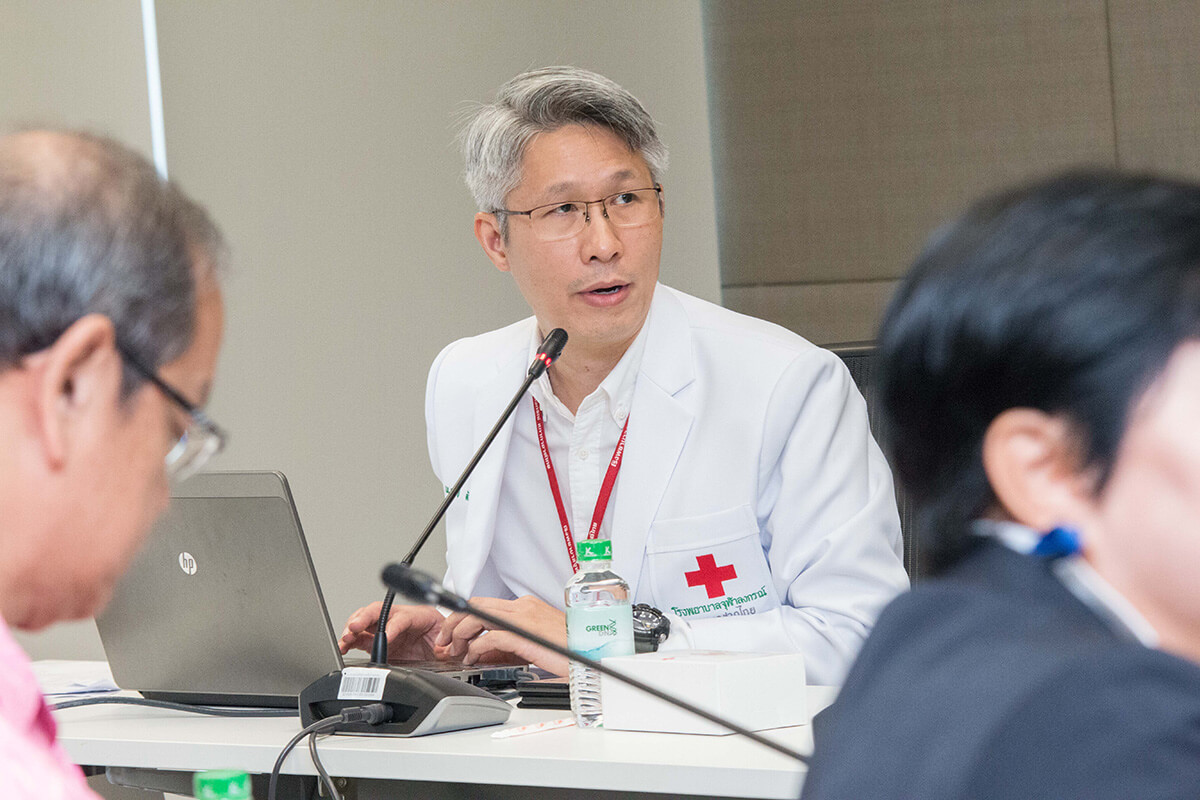 ศ.นพ.รื่นเริง ลีลานุกรม รองผู้อำนวยการ โรงพยาบาลจุฬาลงกรณ์ ฝ่ายบริการ พร้อมด้วย อ.นพ.กวิรัช ตันติวงษ์ ผู้ช่วยผู้อำนวยการ โรงพยาบาลจุฬาลงกรณ์ ด้านความเสี่ยง ให้การต้อนรับ นพ.มานัส โพธาภรณ์ ผู้อำนวยการโรงพยาบาลราชวิถี และคณะศึกษาดูงานจาก โรงพยาบาลราชวิถี กรมการแพทย์ กระทรวงสาธารณสุข ในโอกาสเข้าเยี่ยมชม และ ศึกษาดูงานการบริหารการจัดการอาคารภูมิสิริมังคลานุสรณ์ โรงพยาบาลจุฬาลงกรณ์