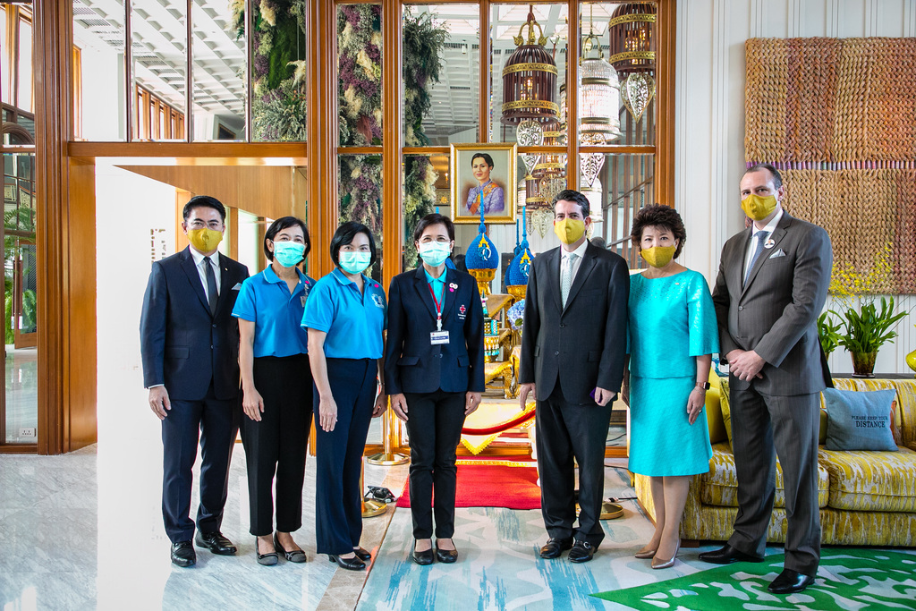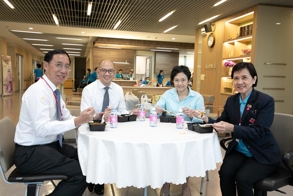 โรงแรมแมนดาริน โอเรียนเต็ล กรุงเทพฯ โดย นายเกร็ก ลิดเดล ผู้จัดการใหญ่ นายแฟรงค์ ดรวง ผู้ช่วยผู้จัดการ นายชาร์ล แอร์ด ผู้อำนวยการฝ่ายอาหารและเครื่องดื่ม นายโดมินิค บูเนียวด์ หัวหน้าพ่อครัวใหญ่ และ นายอิทธิพล วิทจิตสมบูรณ์ ผู้อำนวยการฝ่ายทรัพยากรบุคคล มอบอาหารจำนวน 200 ชุด เพื่อสนับสนุน เจ้าหน้าที่ และผู้รับบริการตรวจสุขภาพประชาชนโดยไม่คิดมูลค่า เนื่องในโอกาสวันคล้ายวันเฉลิมพระชนมพรรษาสมเด็จพระนางเจ้าสิริกิติ์ พระบรมราชินีนาถ พระบรมราชชนนีพันปีหลวง และวันแม่แห่งชาติ โดยมี นางศิริลักษณ์ สิโยพุทธวงศ์ ผู้ช่วยผู้อำนวยการฯ ด้านบริการ รับมอบ เมื่อวันพุธที่ 12 สิงหาคม พ.ศ. 2563 ณ โรงแรมแมนดาริน โอเรียนเต็ล กรุงเทพฯ