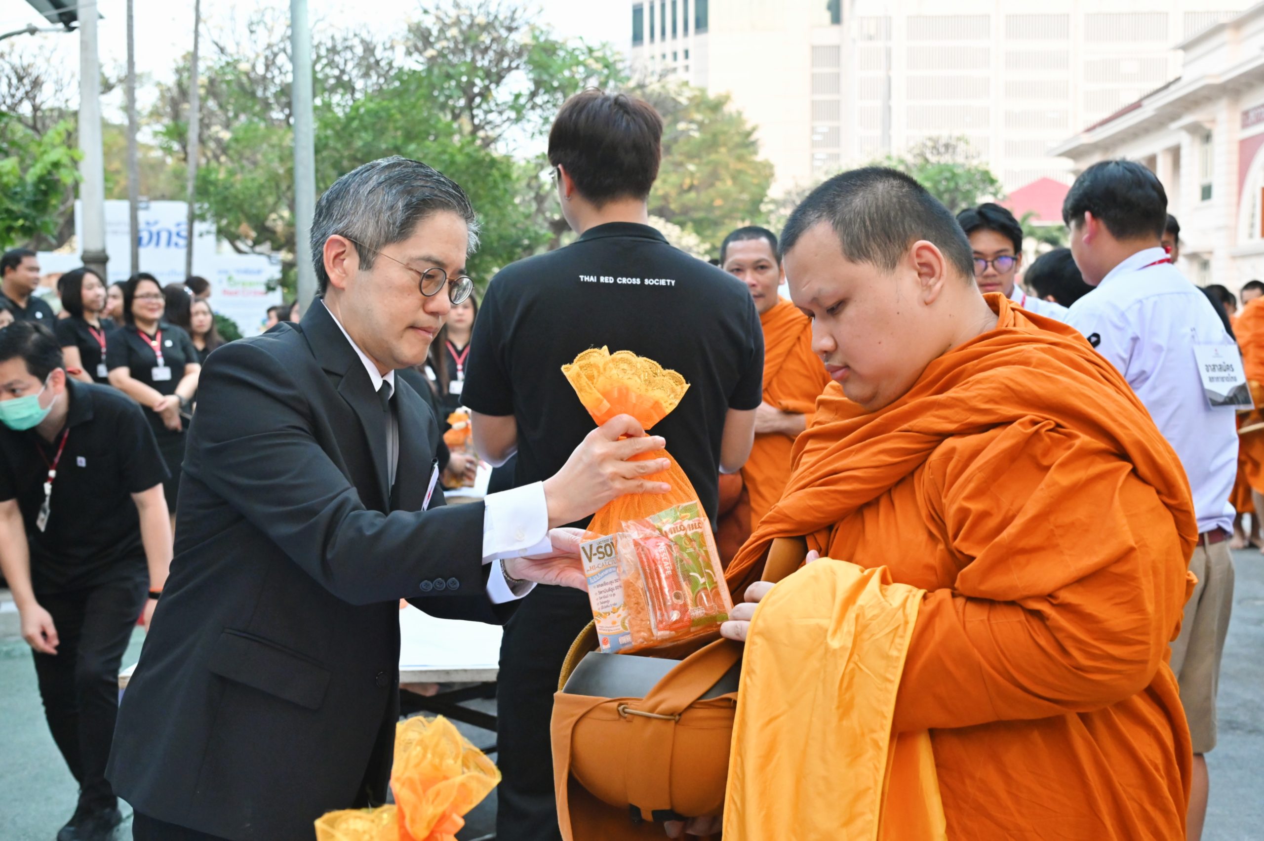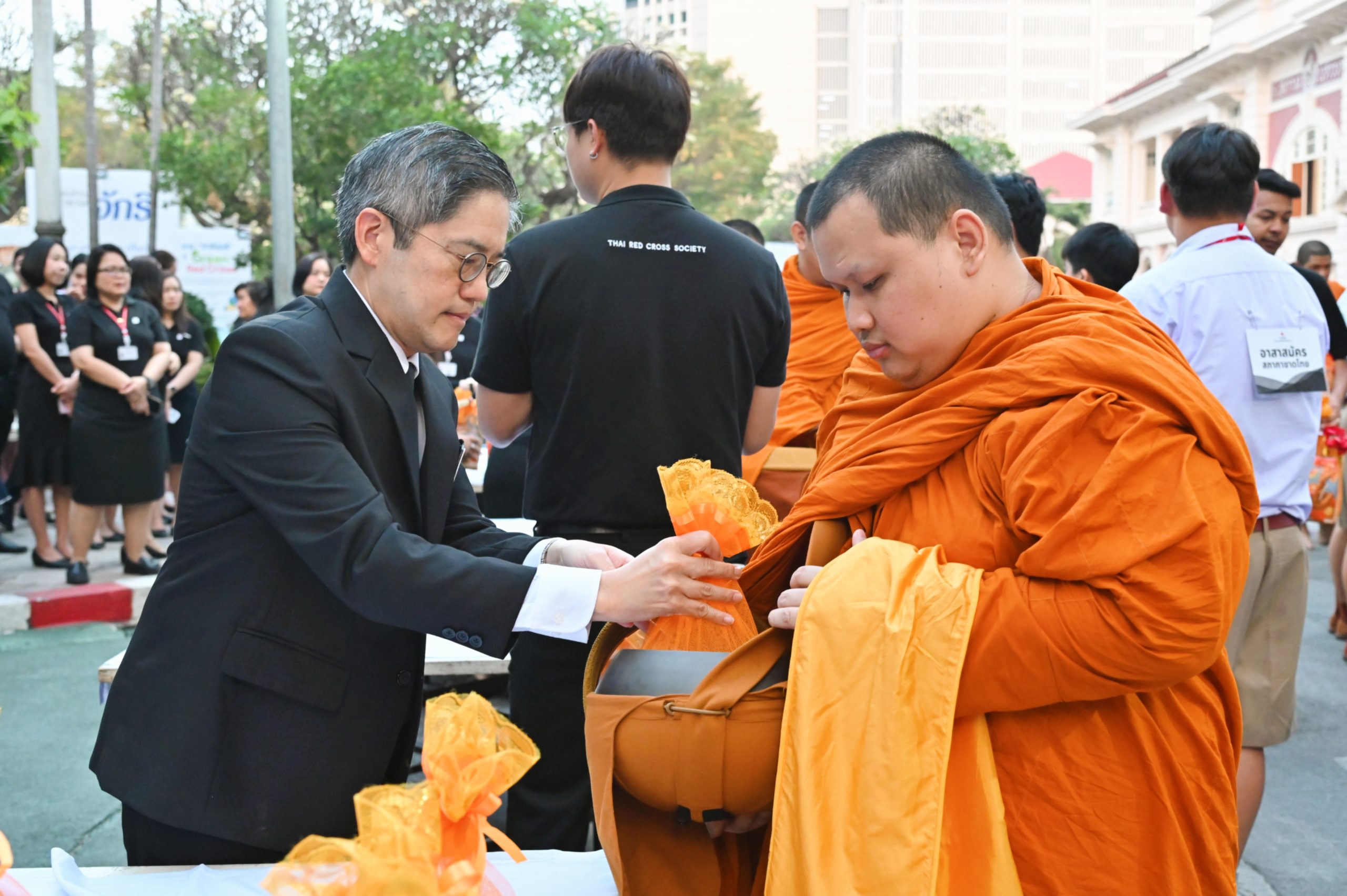 การนี้ รศ.ดร.นพ.จิรุตม์ ศรีรัตนบัลล์ ผู้อำนวยการโรงพยาบาลจุฬาลงกรณ์ สภากาชาดไทย ร่วมทำบุญตักบาตรและถวายภัตตาหารเช้าแด่พระภิกษุสงฆ์ จำนวน ๙๓ รูป ร่วมกับคณะผู้บริหารและบุคลากรสภากาชาดไทย จากนั้นร่วมร้องเพลงสรรเสริญพระบารมี และเพลงขาวแดงแห่งศรัทธา โดยพร้อมเพียงกัน อันเป็นการสำนึกในพระมหากรุณาธิคุณของสมเด็จพระนางเจ้าสิริกิติ์ พระบรมราชินีนาถ พระบรมราชชนนีพันปีหลวง สภานายิกาสภากาชาดไทย