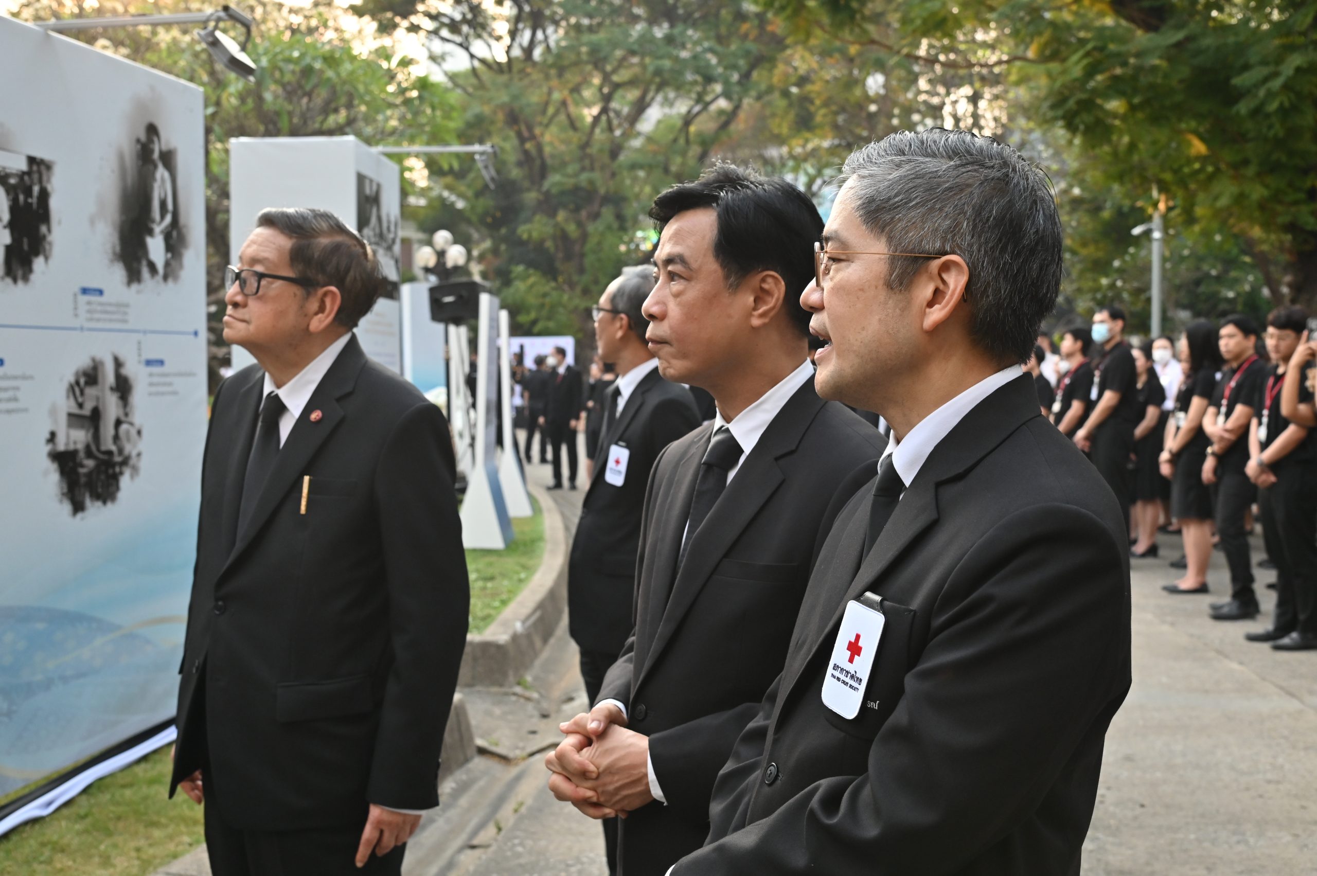 จากนั้นคณะผู้บริหารร่วมชมนิทรรศการ “ใต้ร่มพระบารมี ๖๙ ปี องค์สภานายิกาสภากาชาดไทย” ซึ่งจัดแสดงพระราชกรณียกิจของพระองค์ที่ทรงสร้างเกียรติภูมิแก่สภากาชาดไทยมาตลอดระยะเวลา ๖๙ ปี ทั้งนี้ยังได้เปิดโอกาสให้ประชาชนได้แสดงออกซึ่งความจงรักภักดีและรำลึกถึงพระมหากรุณาธิคุณของพระองค์ท่านในทุกมิติ บริเวณรอบสระน้ำหน้าอาคารสถานเสาวภา สภากาชาดไทย