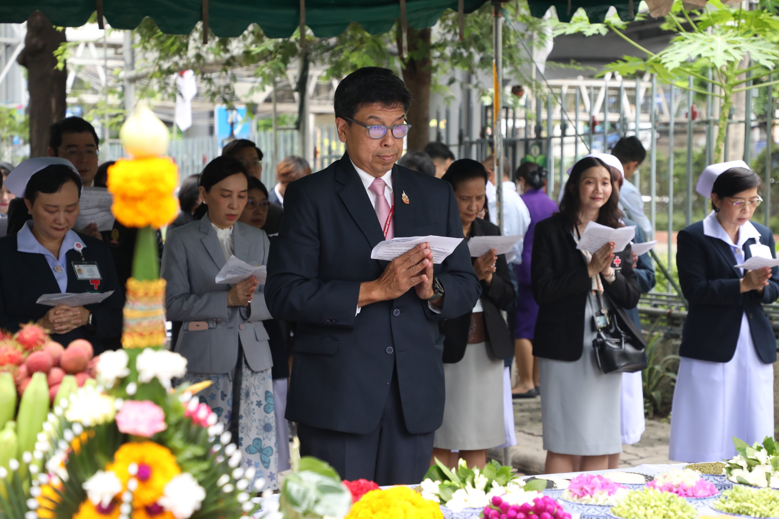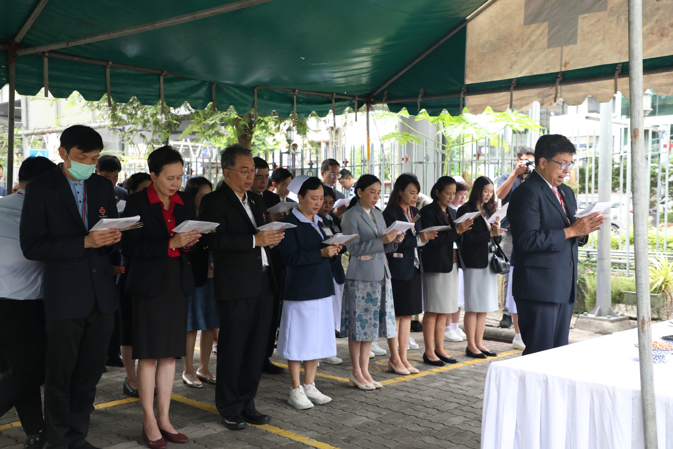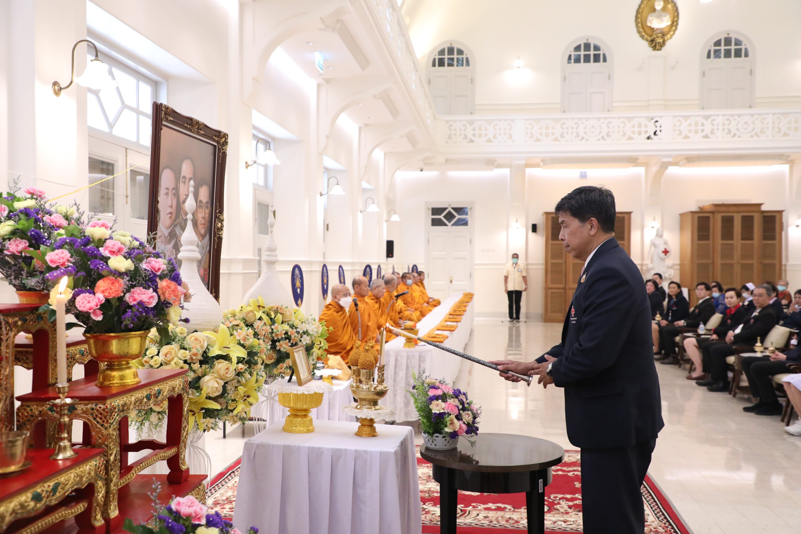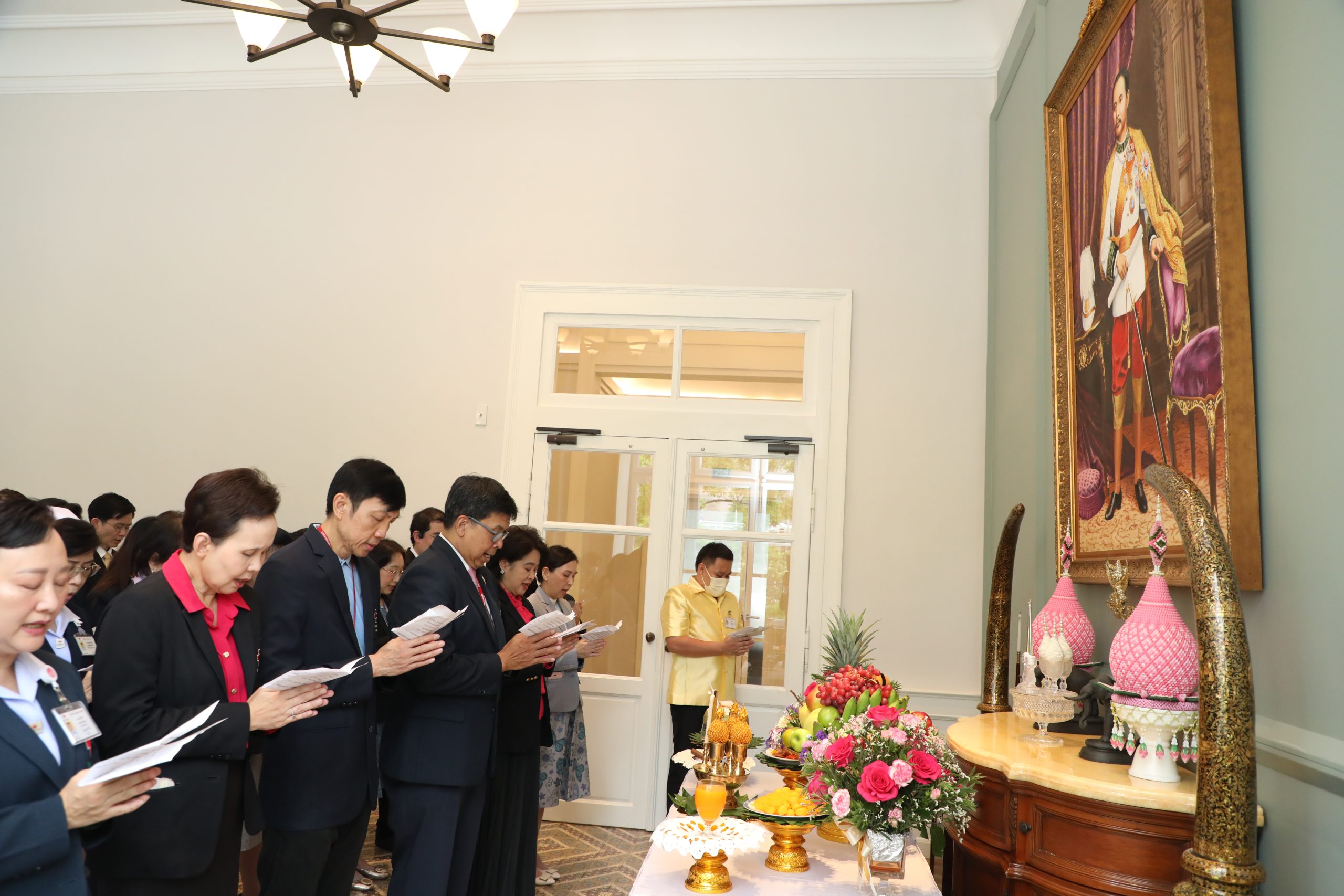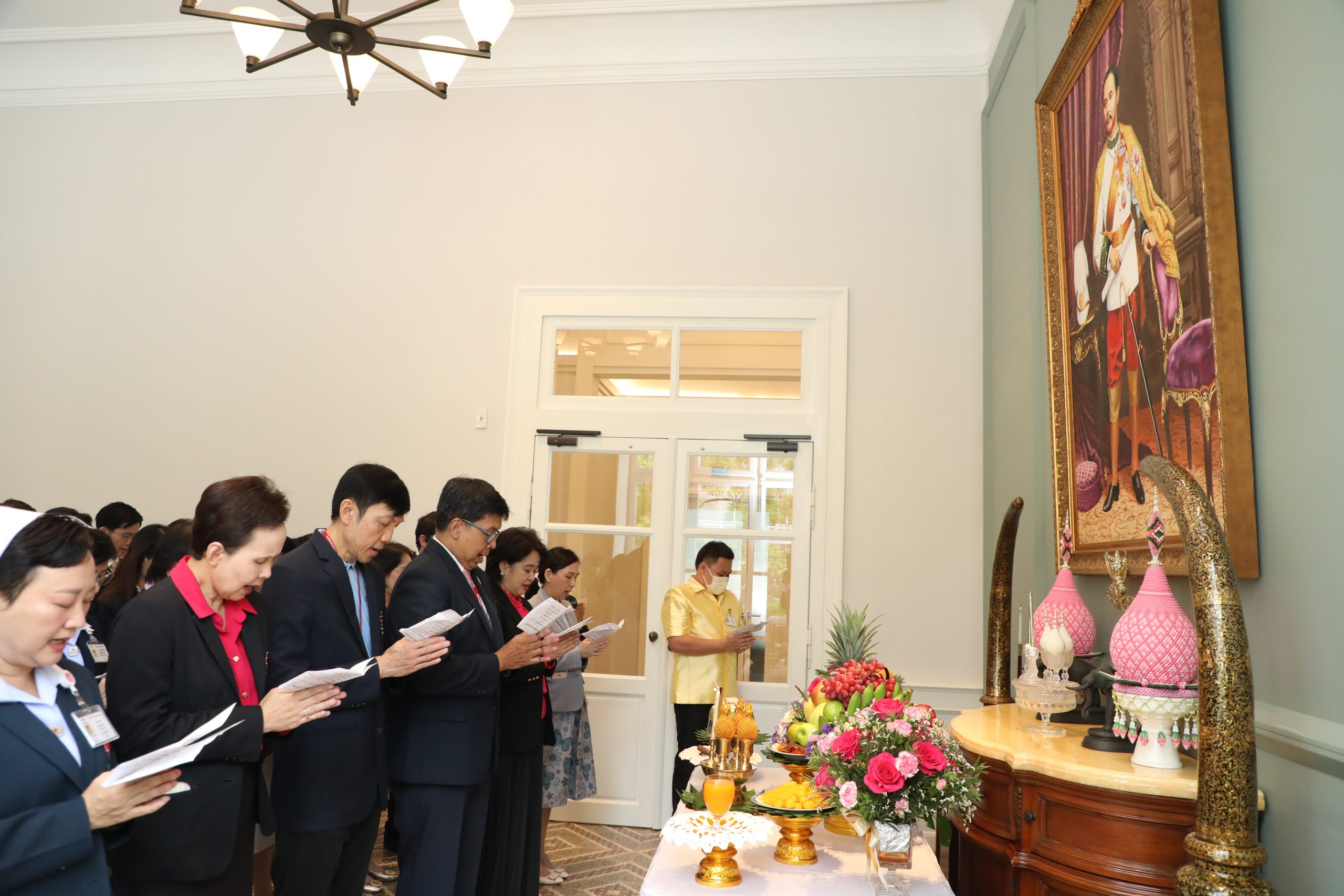จากนั้น คณะผู้บริหาร แพทย์ พยาบาล และบุคลากร ร่วมบวงสรวงศาลพระภูมิของโรงพยาบาล บริเวณตึกอำนวยนรธรรม ถวายสักการะพระบรมสาทิสลักษณ์สมเด็จพระปิยมหาราช ณ ตึกอำนวยการ ถวายราชสักการะพระบรมรูปสมเด็จพระปิยมหาราช ณ ศาลาทินทัต และถวายราชสักการะพระบรมราชานุสาวรีย์พระบาทสมเด็จพระปรเมนทรมหาอานันทมหิดล พระอัฐมรามาธิบดินทร รัชกาลที่ 8 เพื่อความเป็นสิริมงคล