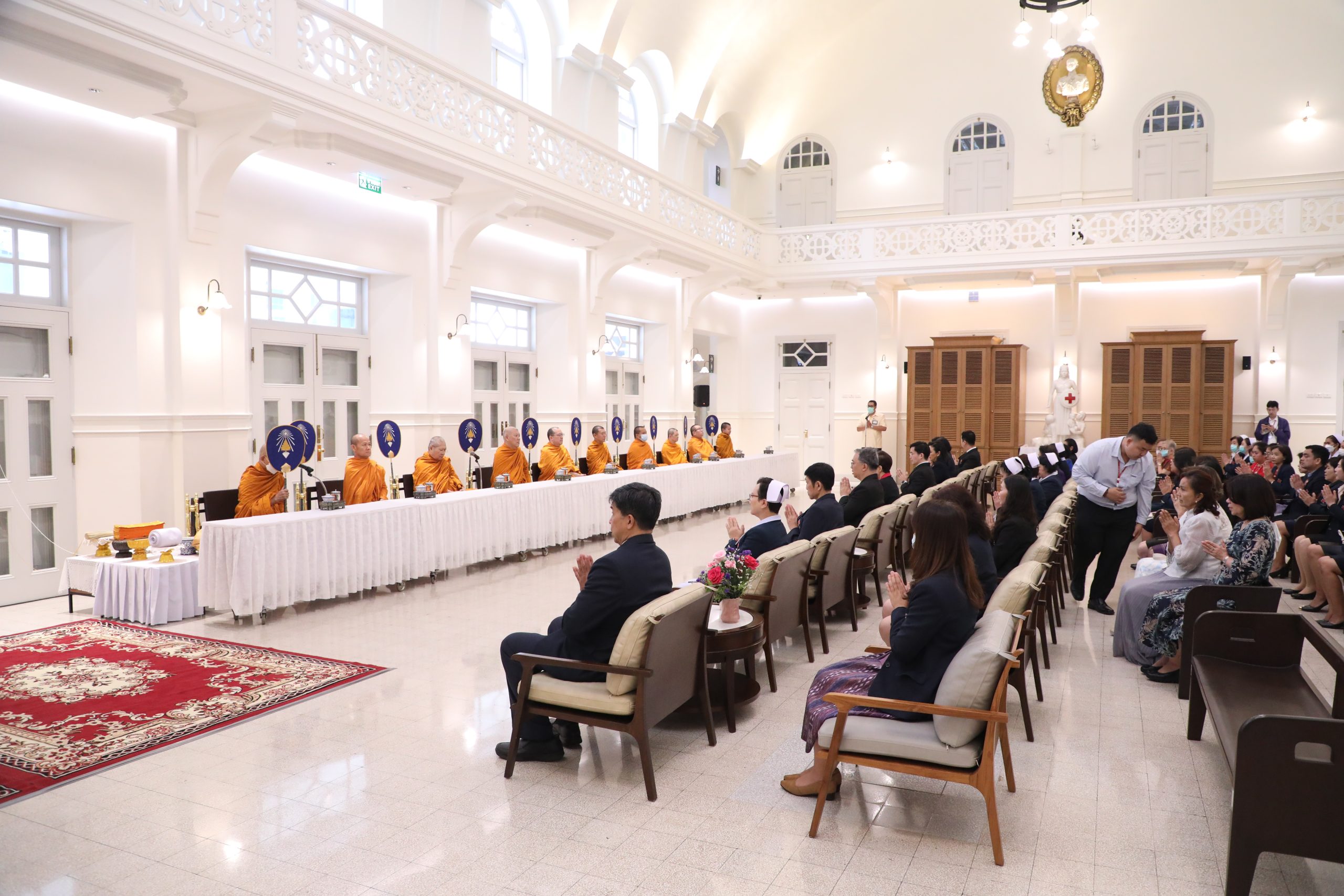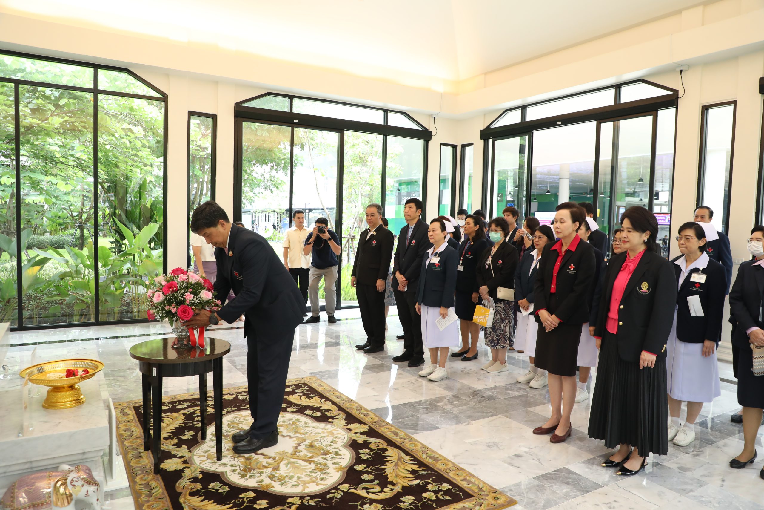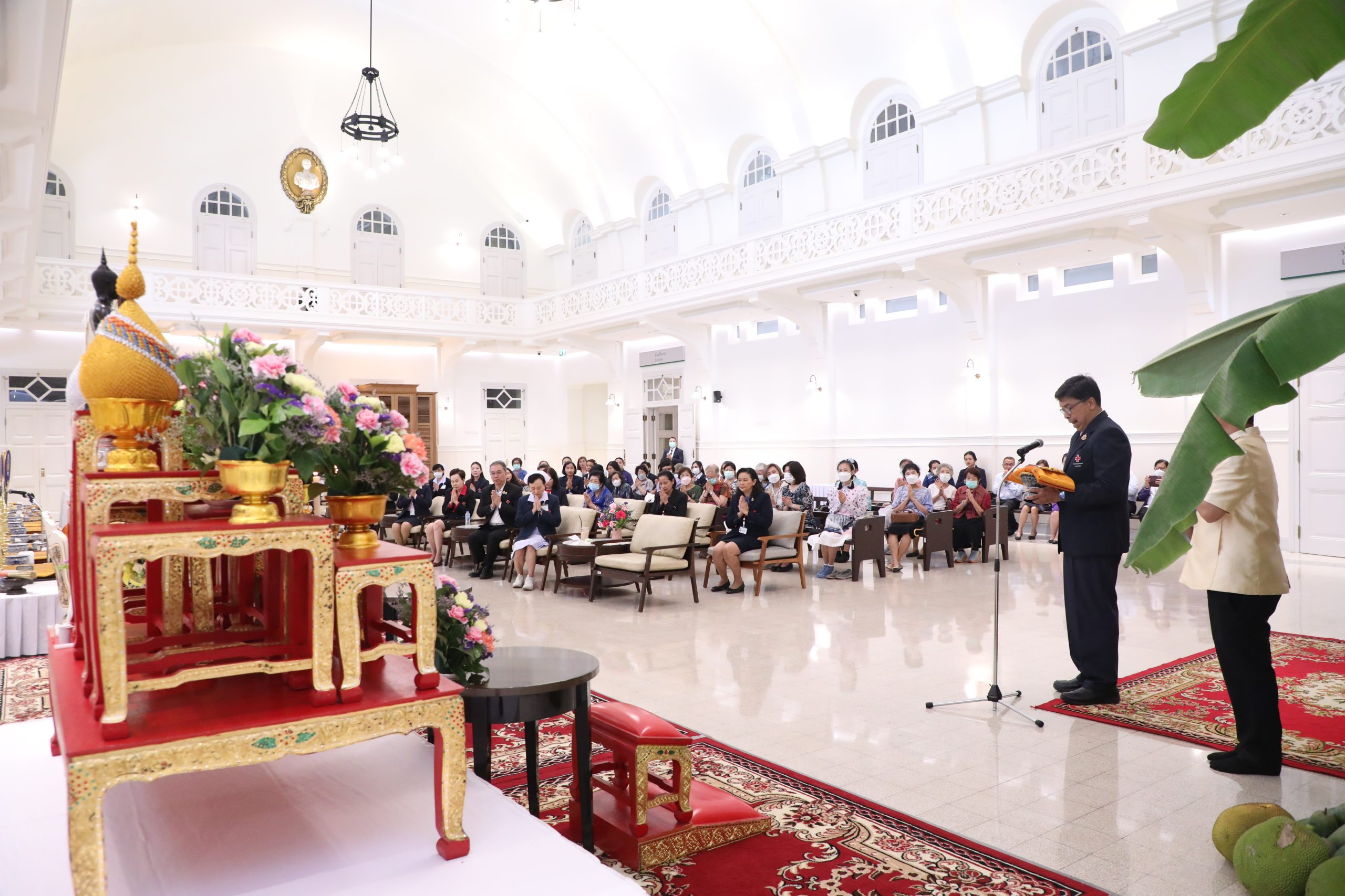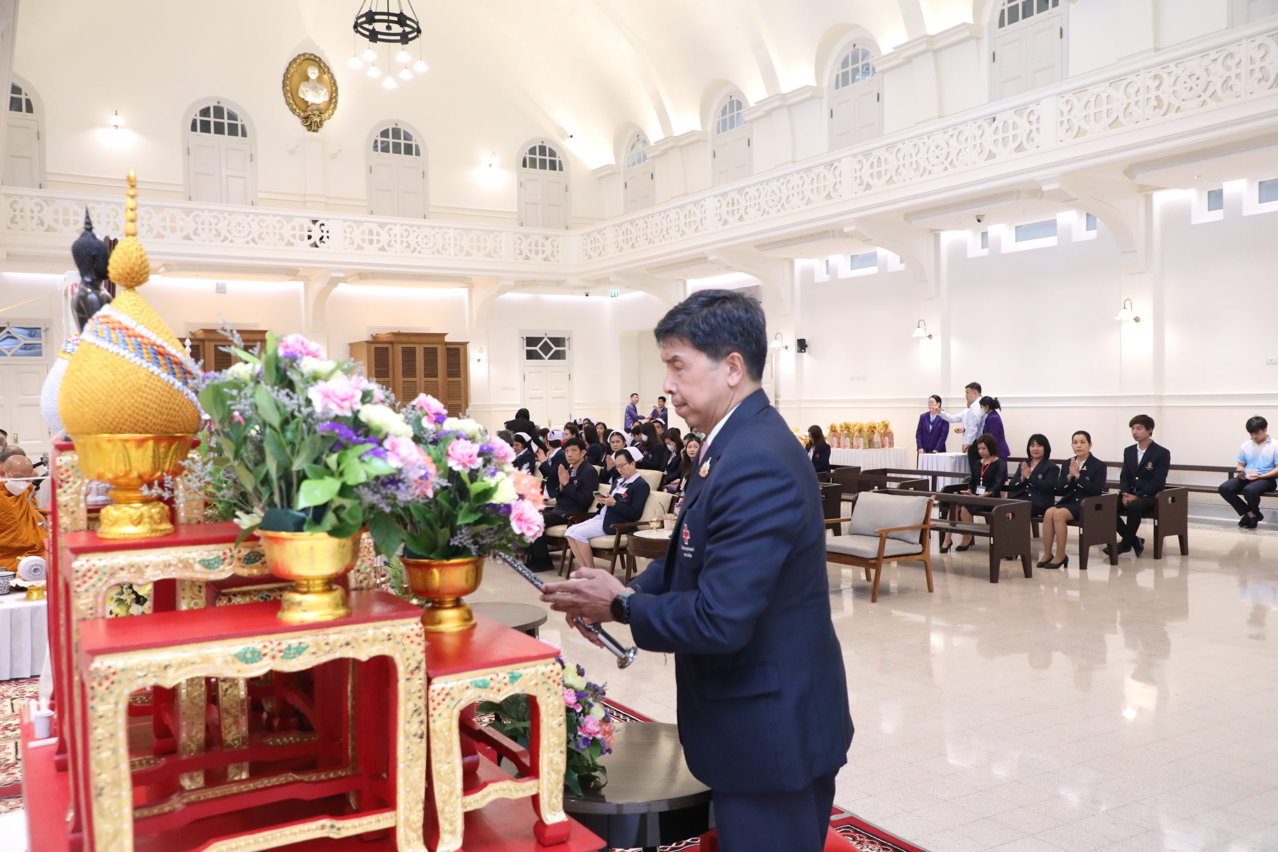 จากนั้น คณะผู้บริหาร แพทย์ พยาบาล และบุคลากร ร่วมบวงสรวงศาลพระภูมิของโรงพยาบาล บริเวณตึกอำนวยนรธรรม ถวายสักการะพระบรมสาทิสลักษณ์สมเด็จพระปิยมหาราช ณ ตึกอำนวยการ ถวายราชสักการะพระบรมรูปสมเด็จพระปิยมหาราช ณ ศาลาทินทัต และถวายราชสักการะพระบรมราชานุสาวรีย์พระบาทสมเด็จพระปรเมนทรมหาอานันทมหิดล พระอัฐมรามาธิบดินทร รัชกาลที่ 8 เพื่อความเป็นสิริมงคล