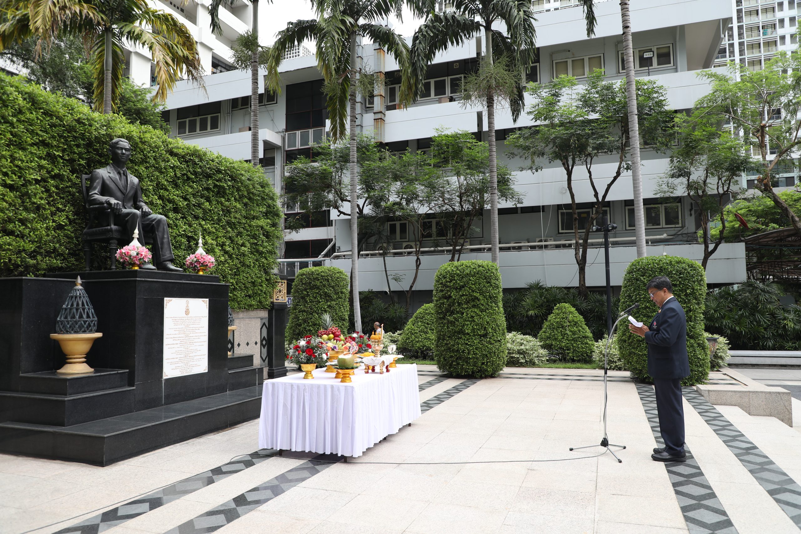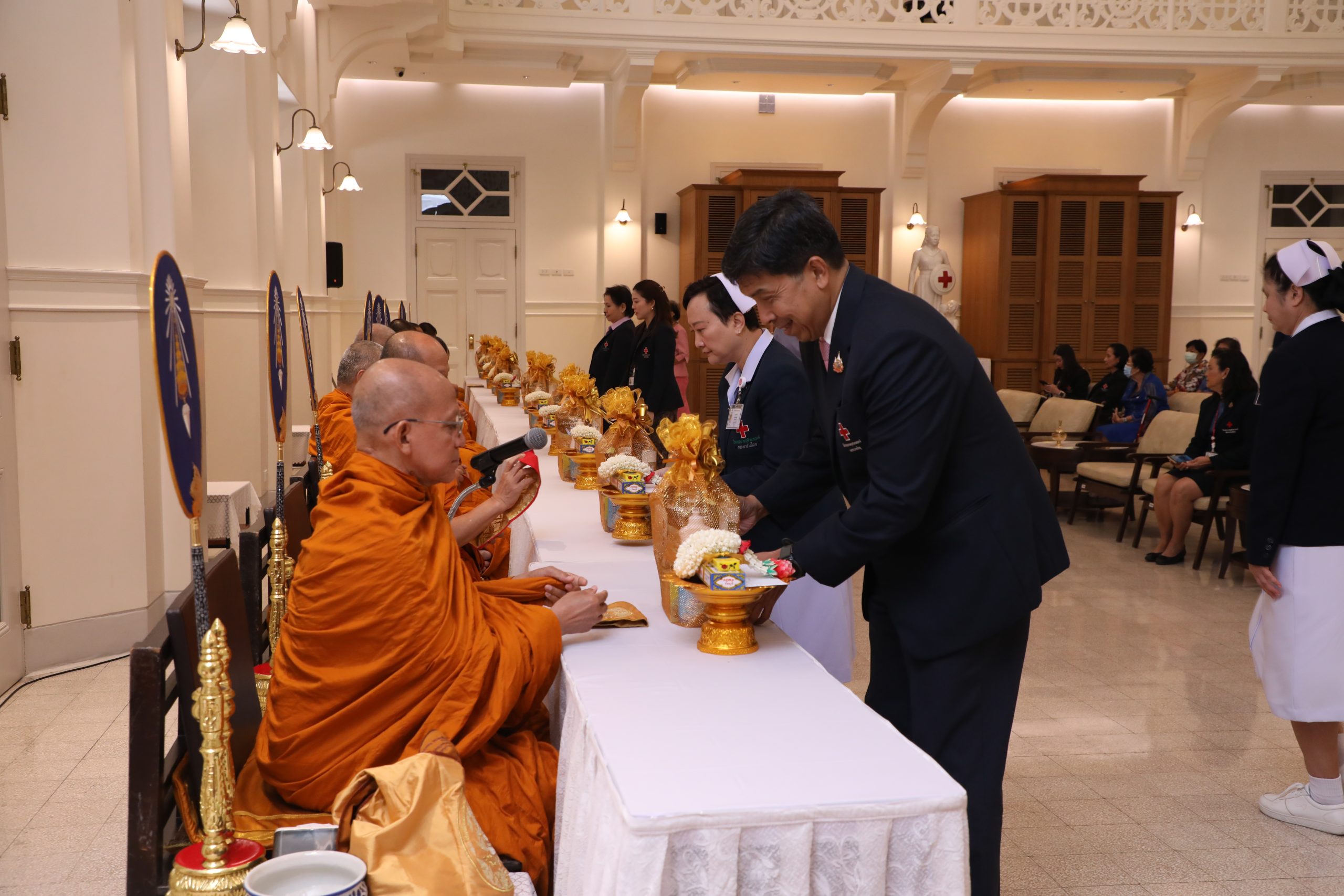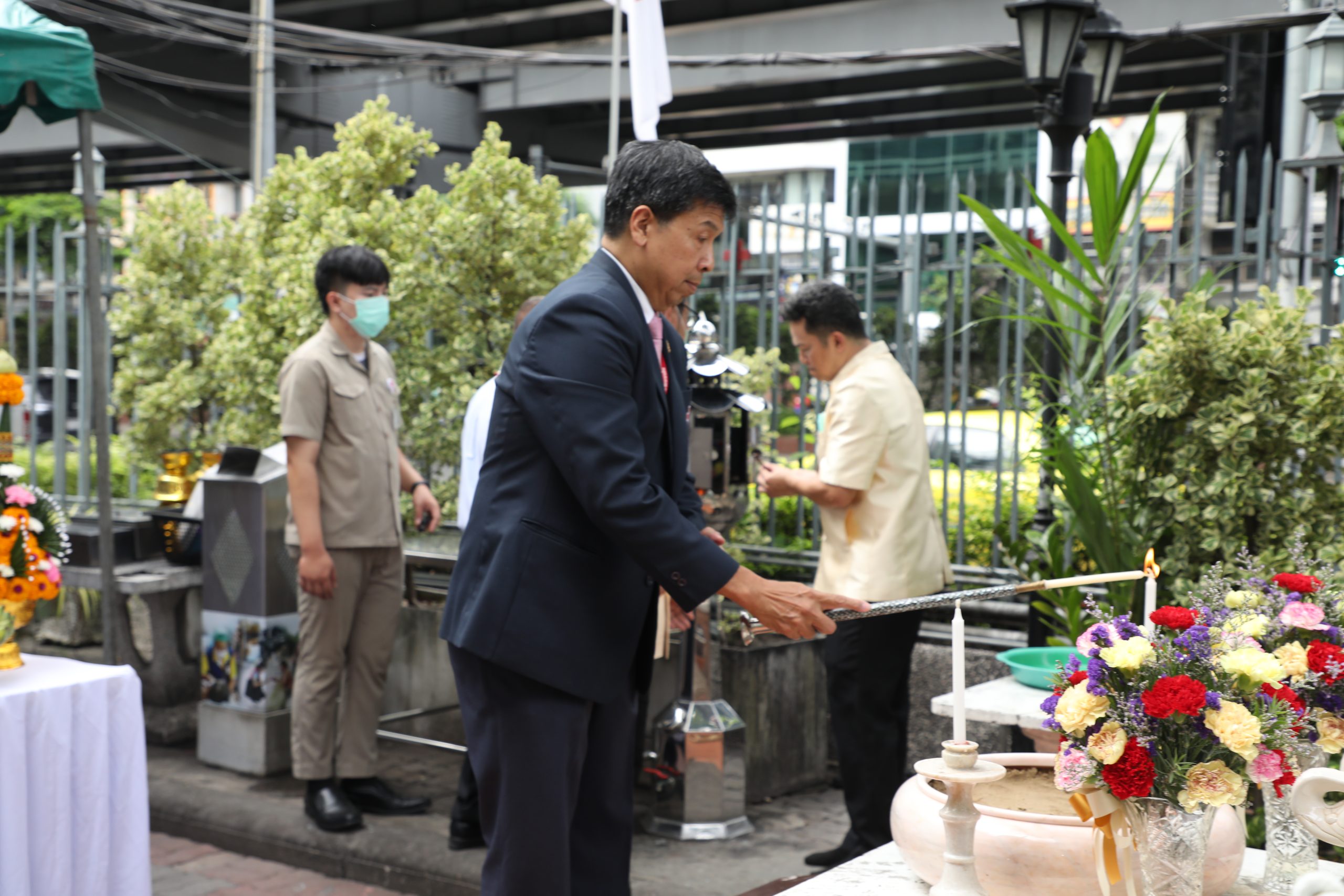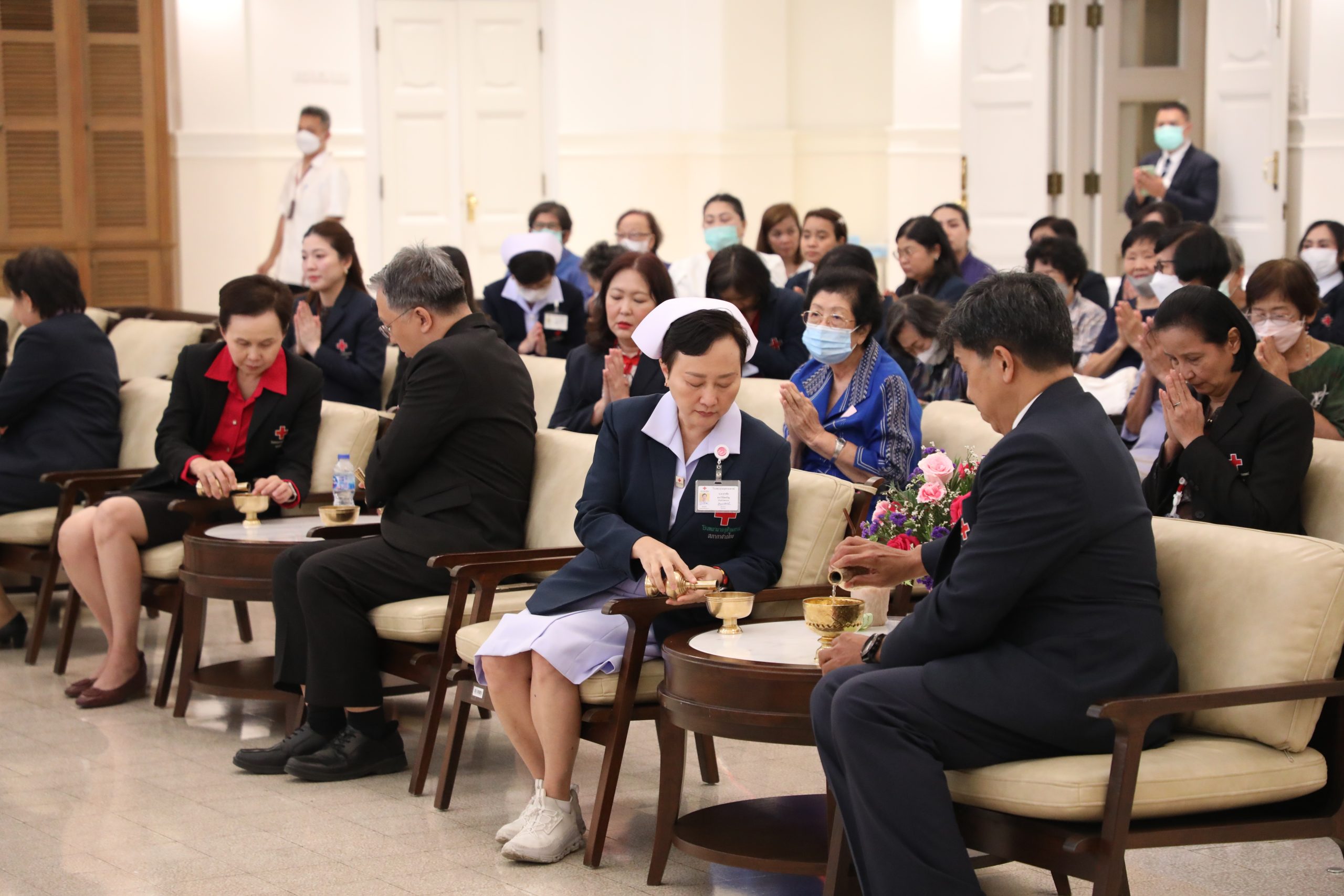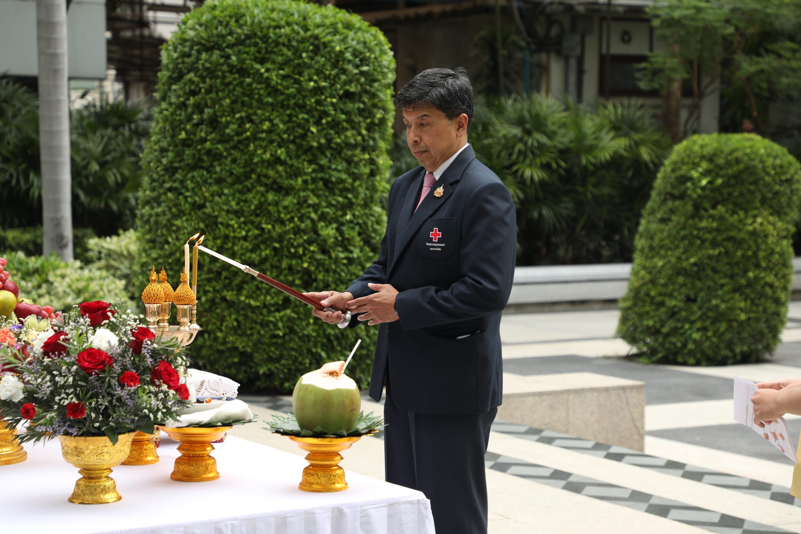 จากนั้น คณะผู้บริหาร แพทย์ พยาบาล และบุคลากร ร่วมบวงสรวงศาลพระภูมิของโรงพยาบาล บริเวณตึกอำนวยนรธรรม ถวายสักการะพระบรมสาทิสลักษณ์สมเด็จพระปิยมหาราช ณ ตึกอำนวยการ ถวายราชสักการะพระบรมรูปสมเด็จพระปิยมหาราช ณ ศาลาทินทัต และถวายราชสักการะพระบรมราชานุสาวรีย์พระบาทสมเด็จพระปรเมนทรมหาอานันทมหิดล พระอัฐมรามาธิบดินทร รัชกาลที่ 8 เพื่อความเป็นสิริมงคล