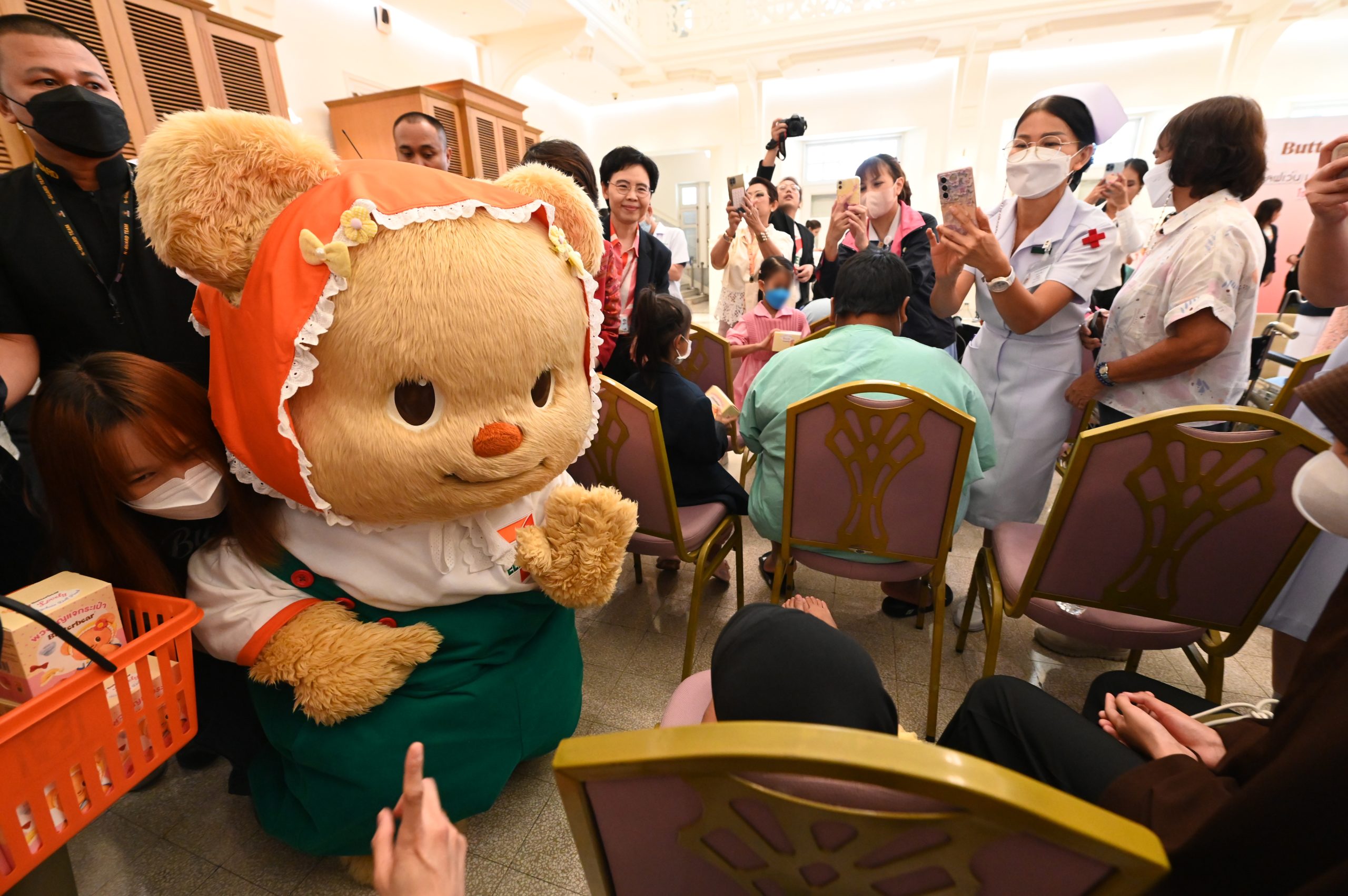 รายได้จากการบริจาคในครั้งนี้ มาจากการแลกซื้อพวงกุญแจกระเป๋าน้องเนย ที่ร่วมกับ Butterbear ภายใต้แคมเปญ “ฮีลใจ และได้ทำบุญ ไปพร้อมกับน้องเนย”เพื่อสนับสนุนโครงการเปลี่ยนลิ้นหัวใจเอออร์ติกตีบโดยไม่ต้องผ่าตัด(TAVI) ของศูนย์โรคหัวใจ โรงพยาบาลจุฬาลงกรณ์ สภากาชาดไทย โดยมี คุณขรรค์ ประจวบเหมาะ ผู้อำนวยการสำนักงานจัดหารายได้ สภากาชาดไทย, คุณจันทร์ประภา วิชิตชลชัย รองผู้อำนวยการสำนักงานจัดหารายได้ สภากาชาดไทย, ศ.นพ.ยิ่งยศ อวิหิงสานนท์ รองผู้อำนวยการ โรงพยาบาลจุฬาลงกรณ์ ฝ่ายการแพทย์และวิจัย, ผศ.(พิเศษ)นพ.สมชาย ปรีชาวัฒน์ หัวหน้าศูนย์โรคหัวใจ,ศาสตราธิคุณ นพ.สุพจน์ ศรีมหาโชตะ, อ.ดร.นพ.วศิน พุทธารี, อ.พญ. ศิริพร อธิสกุล, อ.นพ.วรฤทธิ์ เลิศสุวรรณเสรี พร้อมด้วยทีมผู้บริหาร คณะแพทย์ พยาบาล ร่วมรับมอบเงินจาก คุณยุทธศักดิ์ ภูมิสุรกุล ผู้บริหาร บริษัท ชีพี ออลล์ จำกัด (มหาชน), คุณสุพัตรา จินเลิศ รองกรรมการผู้จัดการ รองสายงานการตลาด, คุณสุชาติ วัฒนา ผู้ช่วยกรรมการผู้จัดการ, คุณมาริสา ศานดีวิวัฒน์ ผู้ช่วยกรรมการผู้จัดการ และ น้องเนย