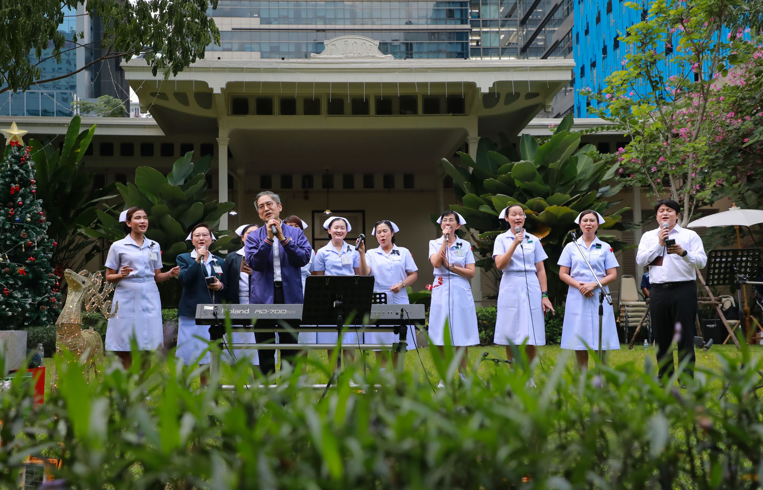 คณะผู้บริหาร แพทย์ พยาบาล บุคลากร และนิสิตแพทย์ ร่วมรำลึกถึงบทเพลงพระราชนิพนธ์ที่ทรงคุณค่าและยังคงตราตรึงอยู่ในดวงใจ ผ่านการขับร้องบทเพลง “แสงเดือน” และ “พรปีใหม่” รวมถึงบทเพลงสดุดีองค์สภานายิกาสภากาชาดไทย การแสดงดนตรีในสวน ครั้งที่ 2