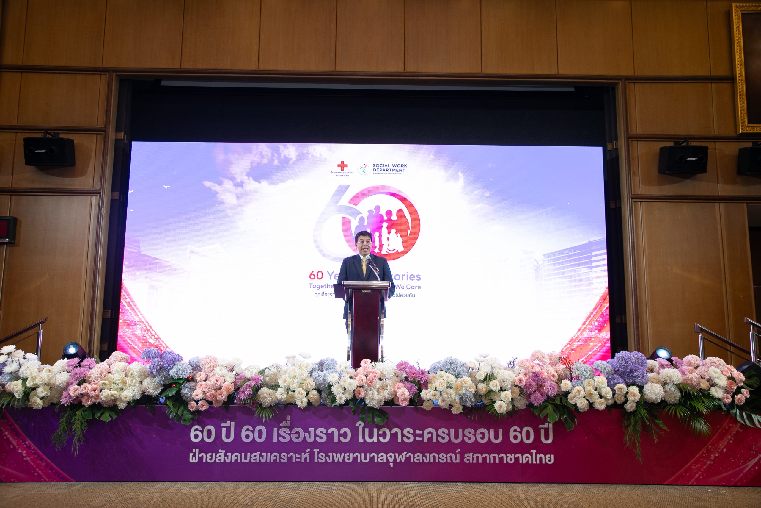 เมื่อวันที่ 15 สิงหาคม 2568 ฝ่ายสังคมสงเคราะห์ โรงพยาบาลจุฬาลงกรณ์ สภากาชาดไทย จัดกิจกรรมเสวนา “60ปี 60 เรื่องราว เนื่องวาระครบรอบ 60 ปี ฝ่ายสังคมสงเคราะห์ โรงพยาบาลจุฬาลงกรณ์ สภากาชาดไทย” โดยมี รศ.นพ.ฉันชาย สิทธิพันธุ์ ผู้อำนวยการโรงพยาบาลจุฬาลงกรณ์ สภากาชาดไทย เป็นประธานเปิดงาน และมีปาฐกถาพิเศษในหัวข้อ 60 ปี สังคมสงเคราะห์ จุฬาฯ ผ่านมุมมองของผู้บริหาร” เพื่อเปิดพื้นที่ในการนำเสนอผลงาน และแลกเปลี่ยนความคิดเห็นร่วมกับองค์กรเครือข่ายทางสังคมสงเคราะห์นำไปสู่การพัฒนาร่วมกันต่อไป กิจกรรมครั้งนี้จัดขึ้นที่ ห้องประชุมสดศรี วงศ์ถ้วยทอง อาคาร ภปร