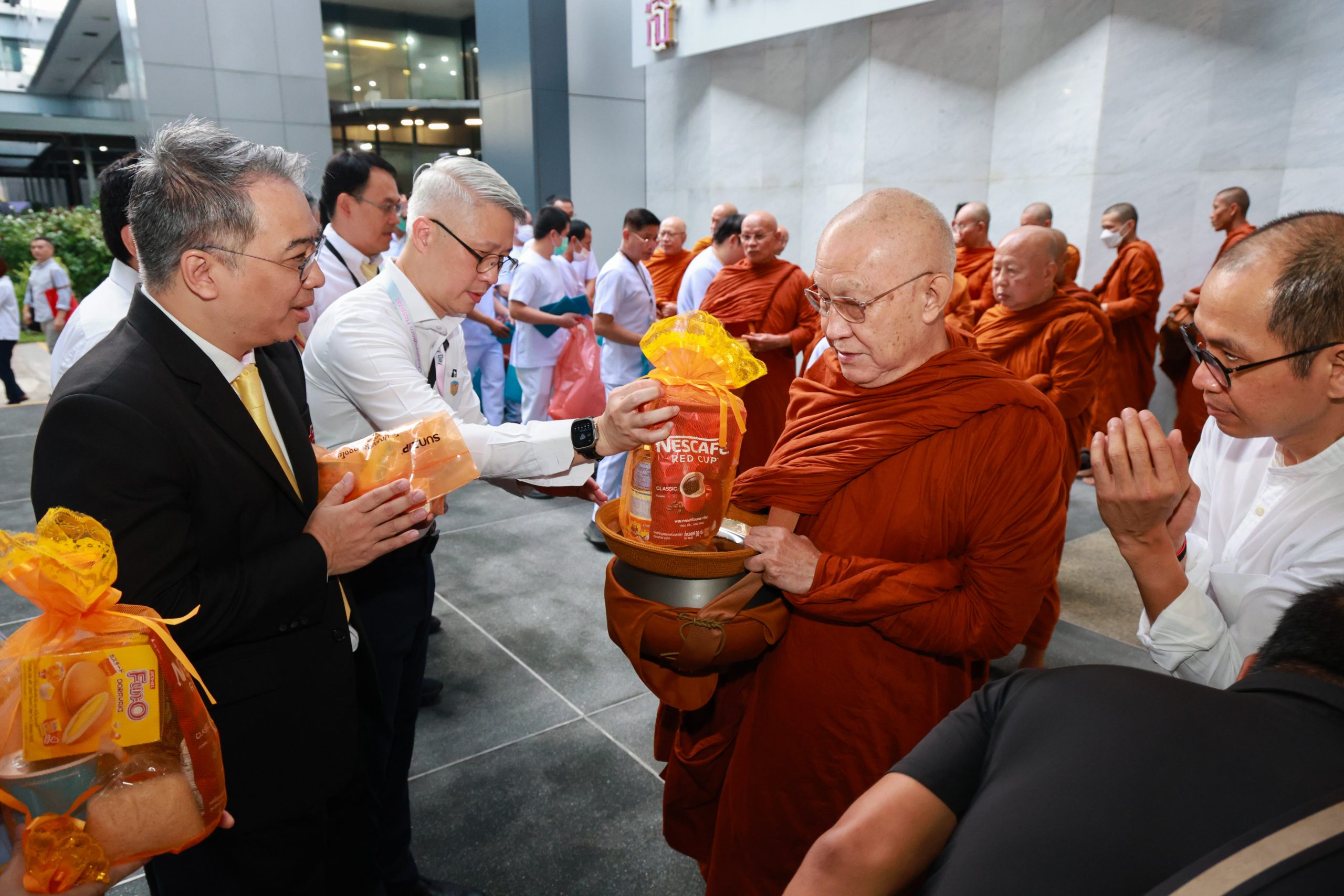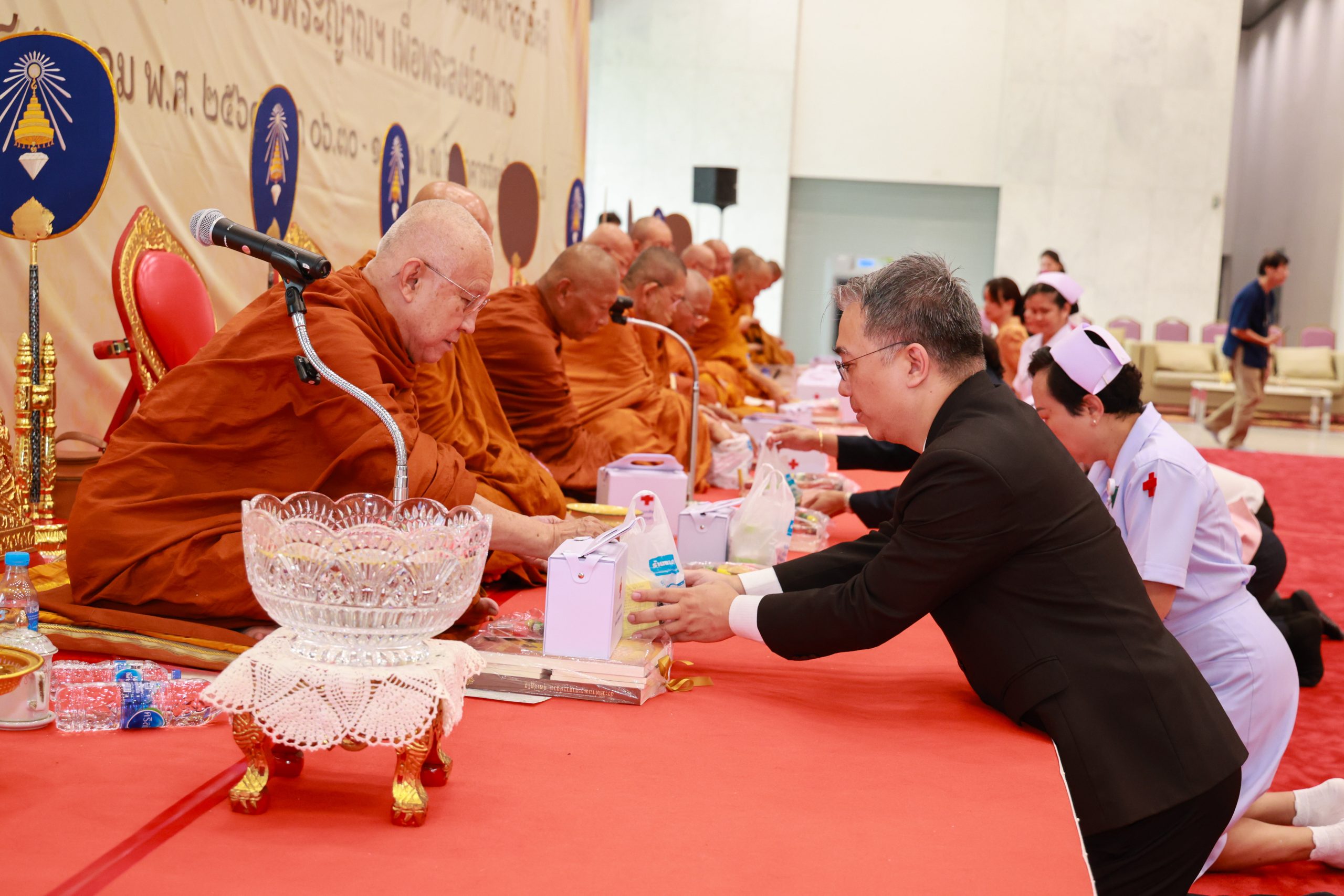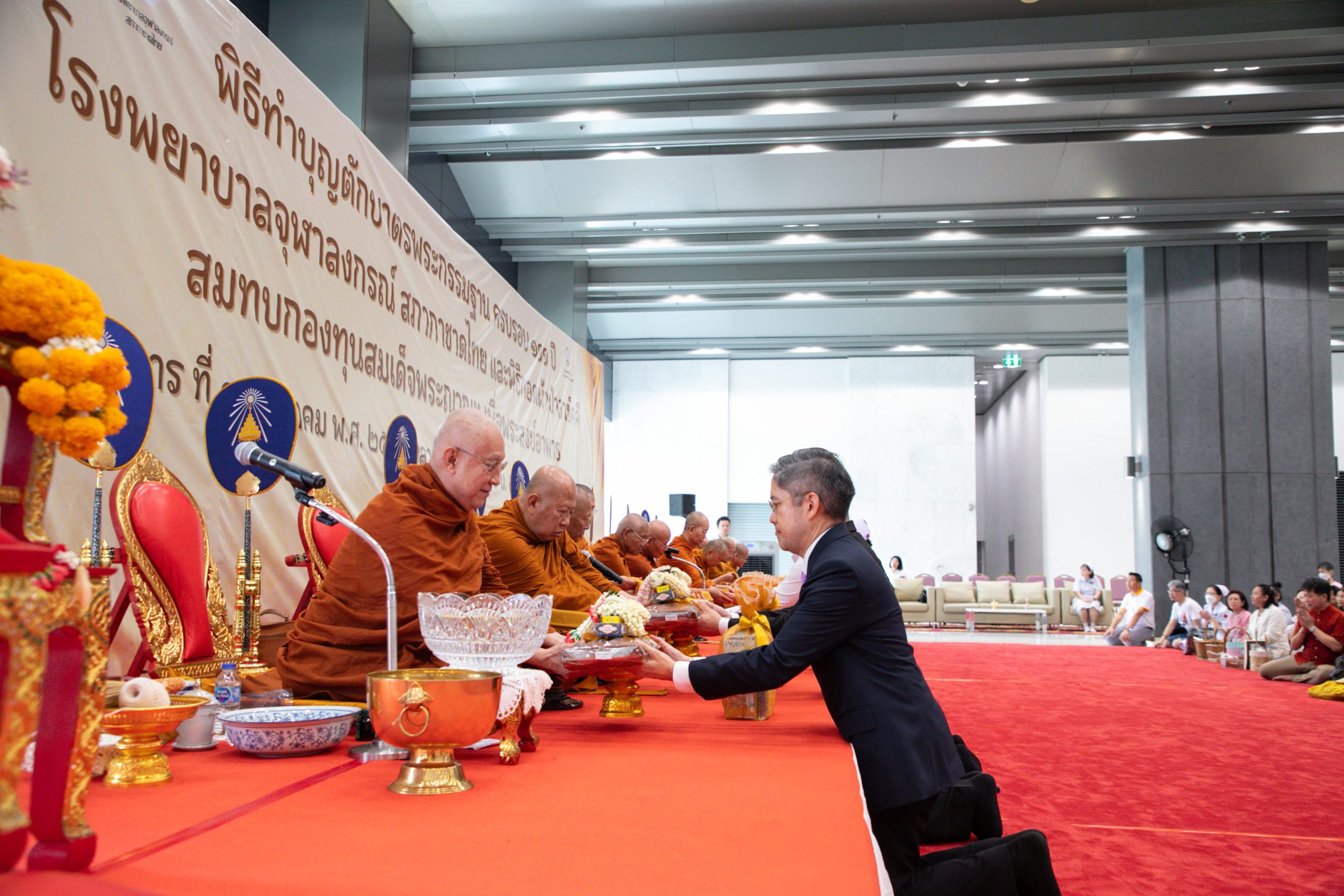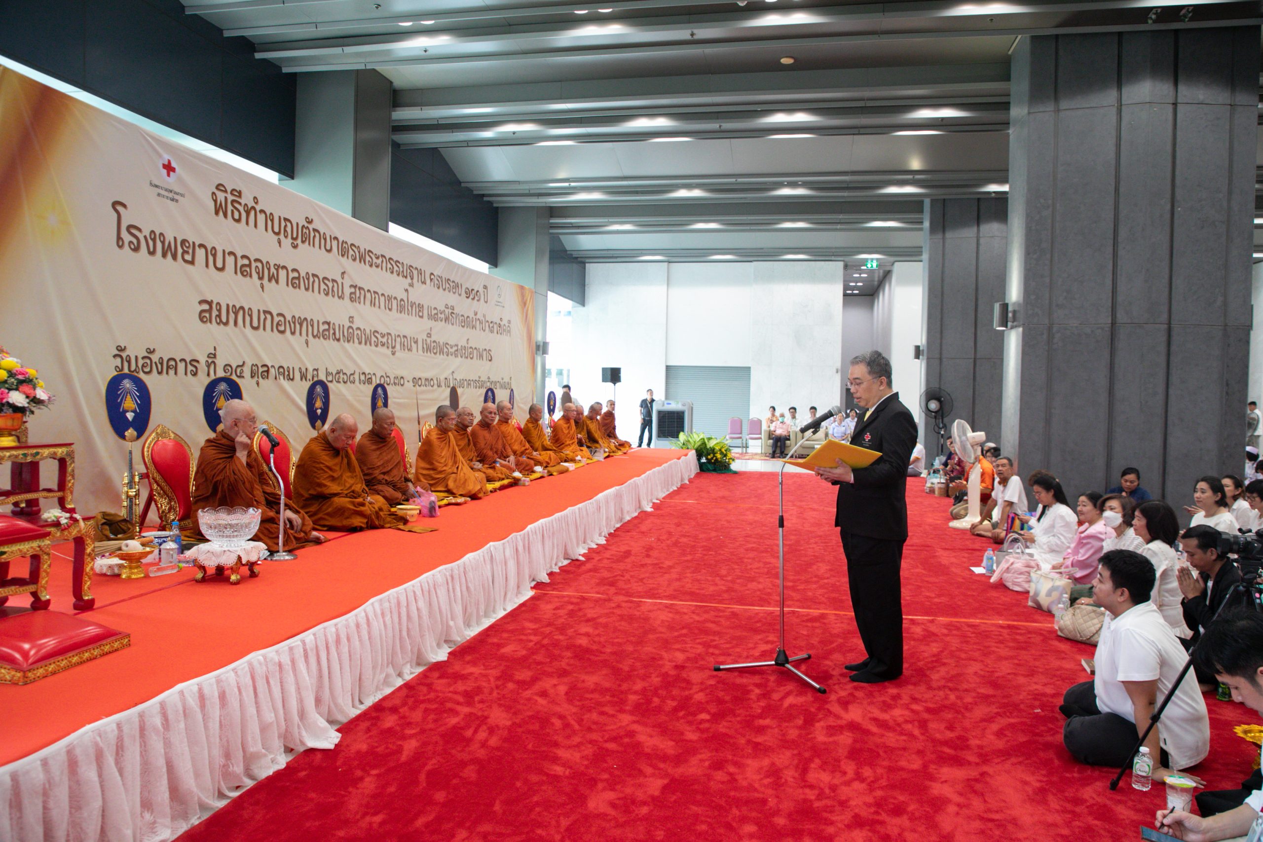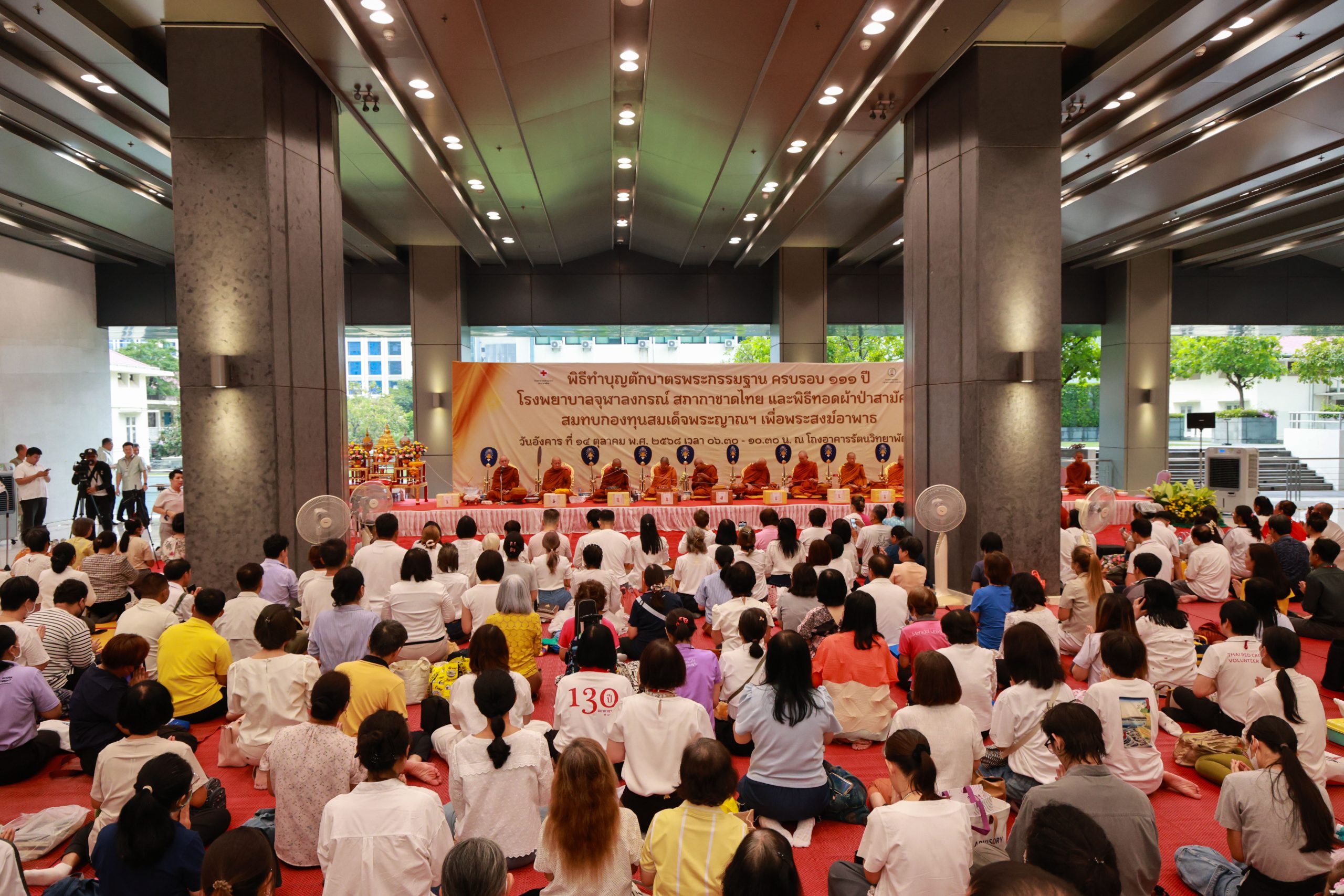 เมื่อวันที่ วันที่ 14 ตุลาคม 2568 โรงพยาบาลจุฬาลงกรณ์ สภากาชาดไทย และคณะแพทยศาสตร์ จุฬาลงกรณ์มหาวิทยาลัย จัดพิธีทำบุญตักบาตรพระกรรมฐาน ครบรอบ 111 ปี โรงพยาบาลจุฬาลงกรณ์ สภากาชาดไทย และพิธีทอดผ้าป่าสามัคคี สมทบกองทุนสมเด็จพระญาณฯ เพื่อพระสงฆ์อาพาธ โดยมี รศ.ดร.นพ.จิรุตม์ ศรีรัตนบัลล์ ผู้อำนวยการโรงพยาบาลจุฬาลงกรณ์ สภากาชาดไทย และคณบดี คณะแพทยศาสตร์ จุฬาลงกรณ์มหาวิทยาลัย เป็นประธานในพิธีทำบุญตักบาตรพระกรรมฐาน และ รศ.นพ.รัฐพลี ภาคอรรถ รองผู้อำนวยการฯ ฝ่ายสนับสนุนบริการ เป็นประธานในพิธีทอดผ้าป่าสามัคคี พร้อมด้วย คณะผู้บริหาร แพทย์ พยาบาล บุคลากร ตลอดจนผู้มีจิตศรัทธา ร่วมสมทบกองทุนสมเด็จพระญาณฯ ดูแลรักษาพยาบาลพระภิกษุสามเณรอาพาธ และผู้ป่วยสามัญของโรงพยาบาล พร้อมทั้งจัดหาเครื่องมือทางการแพทย์ โดยมี พระราชวชิรธรรมาจารย์ (หลวงพ่อสุธรรม สุธัมโม) วัดป่าบ้านตาด จ.อุดรธานี เป็นประธานสงฆ์พิจารณาผ้าป่าฯ ในครั้งนี้ ณ บริเวณโถงอาคารรัตนวิทยาพัฒน์