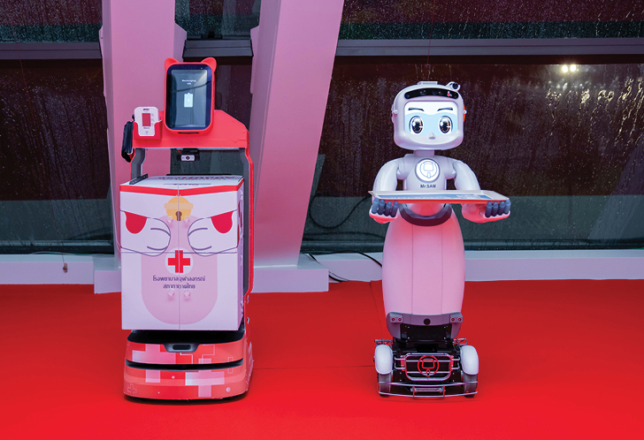 - AI ตรวจจับติ่งเนื้อลำไส้ใหญ่ โดยการใช้นวัตกรรม DeepGI ซึ่งเป็นระบบปัญญาประดิษฐ์อ่านภาพวิดีโอส่องกล้อง ทำให้สามารถตรวจพบได้แม่นยำกว่า 90% หรือ น้องแฮปปี้ หุ่นยนต์อัจฉริยะที่ช่วยรักษามะเร็งต่อมไทรอยด์ด้วยสารรังสีไอโอดีน สามารถให้สารรังสีไอโอดีนแก่ผู้ป่วยได้อย่างแม่นยำ และมีประสิทธิภาพ สำรวจและตรวจวัดการเปรอะเปื้อนเรื่องรังสี พร้อมประมวลผลภาพด้วย AI