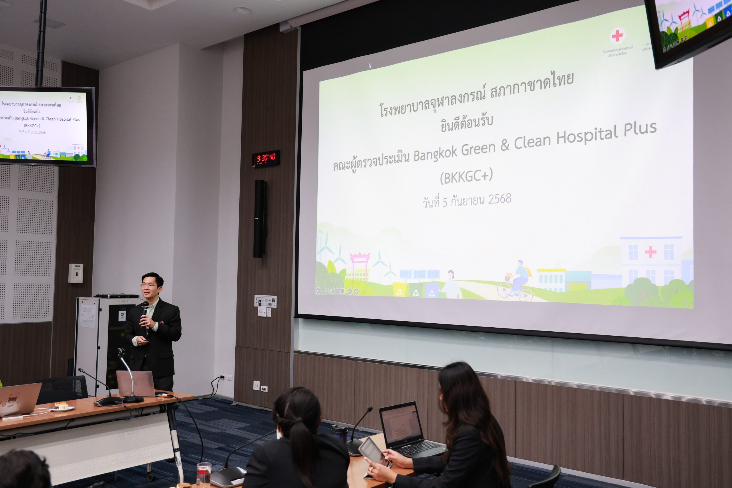 เมื่อวันที่ 5 กันยายน 2568 คณะผู้บริหาร แพทย์ พยาบาล เจ้าหน้าที่ คณะอนุกรรมการพิทักษ์สิ่งแวดล้อมและสร้างเสริมสุขภาพ คณะกรรมการสิ่งแวดล้อมและความปลอดภัย โรงพยาบาลจุฬาลงกรณ์ สภากาชาดไทย นำโดย ศ.ดร.เสริชย์ โชติพานิช รองผู้อำนวยการ โรงพยาบาลจุฬาลงกรณ์ ฝ่ายกายภาพ ให้การต้อนรับ คณะผู้ตรวจประเมิน Bangkok GREEN & CLEAN Hospital Plus (BKKCC+)