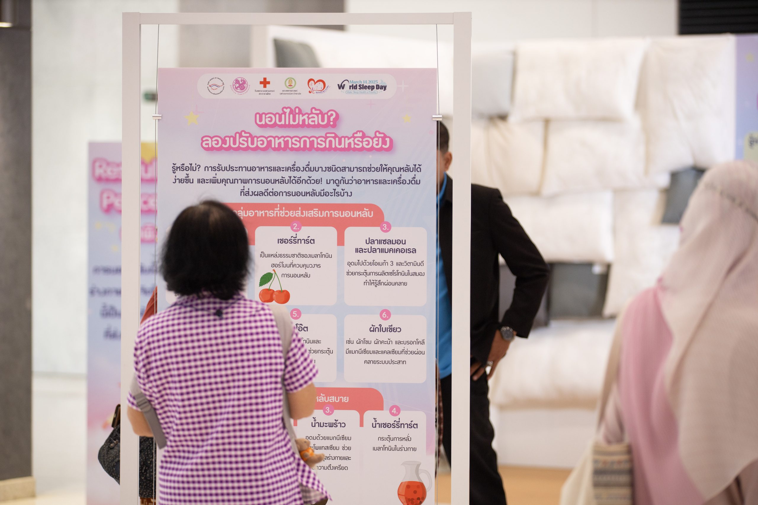 สำหรับกิจกรรมวันนอนหลับโลกในปีนี้ ศูนย์นิทราเวชฯ เปิดให้ประชาชนได้ร่วมทำกิจกรรมตั้งแต่วันนี้ถึงวันที่ 8 มีนาคม 2568 ณ โถงกิจกรรม อาคารรัตนวิทยาพัฒน์ พบกิจกรรมที่น่าสนใจหลากหลายรูปแบบ อาทิ นิทรรศการให้ความรู้เกี่ยวกับการนอน การจัดแสดงภาพวาดสีอะคริลิค ฝีมือของนิสิตแพทย์ชั้นปีที่ 5 และผลงานศิลปะของนักเรียนมัธยมปลาย การให้คำปรึกษากับผู้มีปัญหาเรื่องของการนอน เป็นต้น