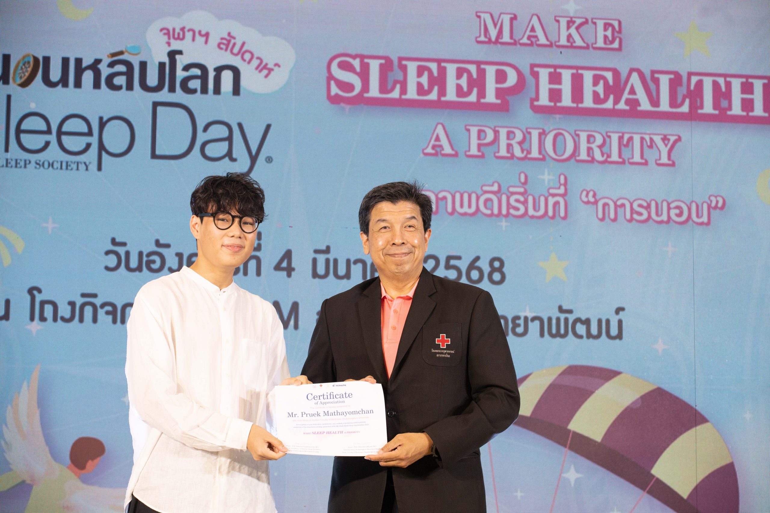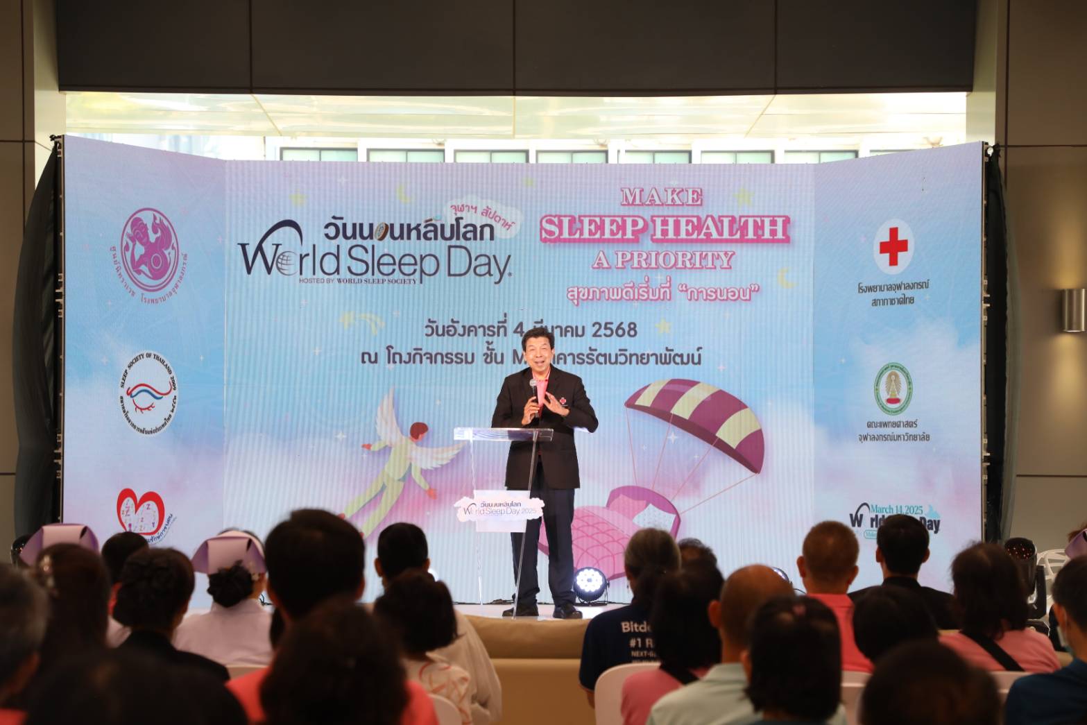 วันที่ 4 มีนาคม 2568 ศูนย์นิทราเวช โรงพยาบาลจุฬาลงกรณ์ สภากาชาดไทย และคณะแพทยศาสตร์ จุฬาลงกรณ์มหาวิทยาลัย จัดงานแถลงข่าว “จุฬาฯ สัปดาห์วันนอนหลับโลก ครั้งที่ 8” Chula World Sleep Day 2025 ภายใต้แนวคิด “MAKE SLEEP HEALTH A PRIORITY” เพื่อเป็นการสร้างความรู้ความเข้าใจให้กับประชาชนเกี่ยวกับการใส่ใจการดูแลสุขภาพการนอนหลับ