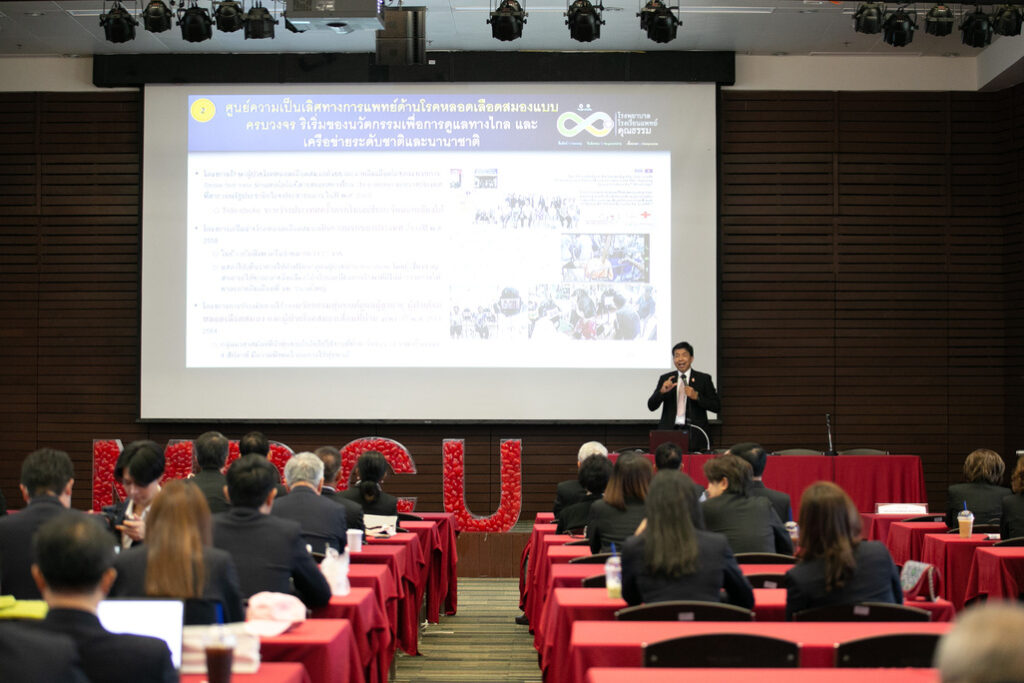 หลังจากนั้นเข้ารับฟังการบรรยายสรุปในหัวข้อ ศูนย์นวัตกรรมทางการแพทย์และการประกอบการ CMICe, การรักษามะเร็งด้วยภูมิคุ้มกันบำบัด Advanced Immunotherapy for Cancer Treatment, สรุปหัวข้อ “Impactful Platforms for Society: School of Global Health and Vaccine Research Center” และหัวข้อ “New learning paradigm : MedUMore & CUMEDi” และศึกษาดูงานเยี่ยมชมพื้นที่ นวัตกรรมทางการรักษาพยาบาล ณ ห้องส่องกล้อง และ CAR-T cell, Cognitive Fitness Center ศูนย์ฝึกสมอง, ศูนย์โปรตอนสมเด็จพระเทพรัตนราชสุดาฯ, มูลนิธิสงเคราะห์เด็กของสภากาชาดไทย และเยี่ยมชมอาคาร Extended OPD