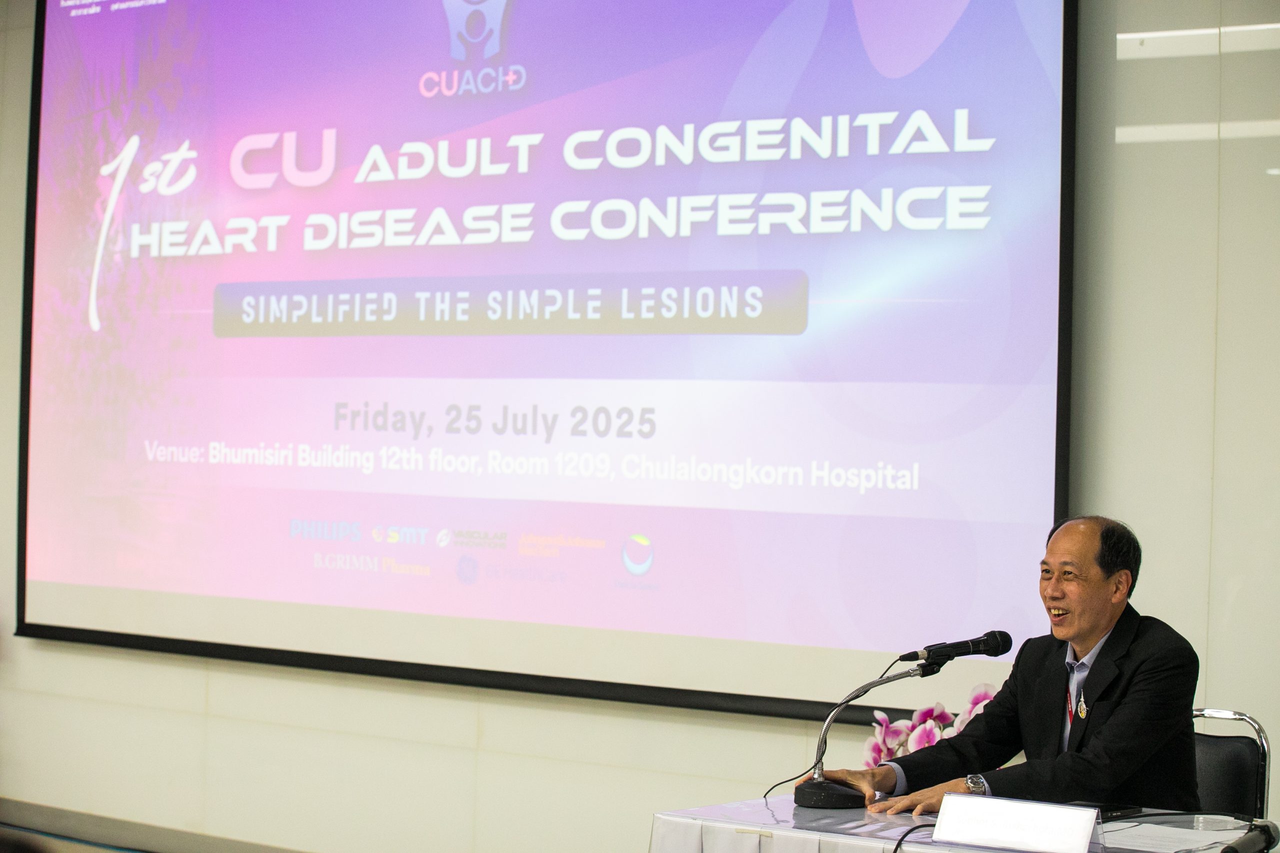 เมื่อวันที่ 25 กรกฎาคม 2568 ศูนย์โรคหัวใจ โรงพยาบาลจุฬาลงกรณ์ สภากาชาดไทย จัดประชุมวิชาการ โรคหัวใจพิการแต่กำเนิดในผู้ใหญ่ ครั้งที่ 1 CU adult congenital heart disease conference โดยมี รศ.(พิเศษ)นพ.สมชาย ปรีชาวัฒน์ หัวหน้าศูนย์โรคหัวใจ โรงพยาบาลจุฬาลงกรณ์ สภากาชาดไทย เป็นประธานเปิดการประชุม พร้อมด้วยอาจารย์แพทย์จากหลายสาขา ทั้งอายุรกรรมหัวใจ กุมารเวชกรรมหัวใจ รวมไปถึงศัลยกรรมทรวงอก เป็นต้น เพื่อร่วมแลกเปลี่ยนเรียนรู้เทคนิคการผ่าตัด การวินิจฉัย แนวทางการรักษาโรคทางด้านหัวใจที่ซับซ้อน เป็นต้น ณ ห้องประชุม 1209 อาคารภูมิสิริมังคลานุสรณ์