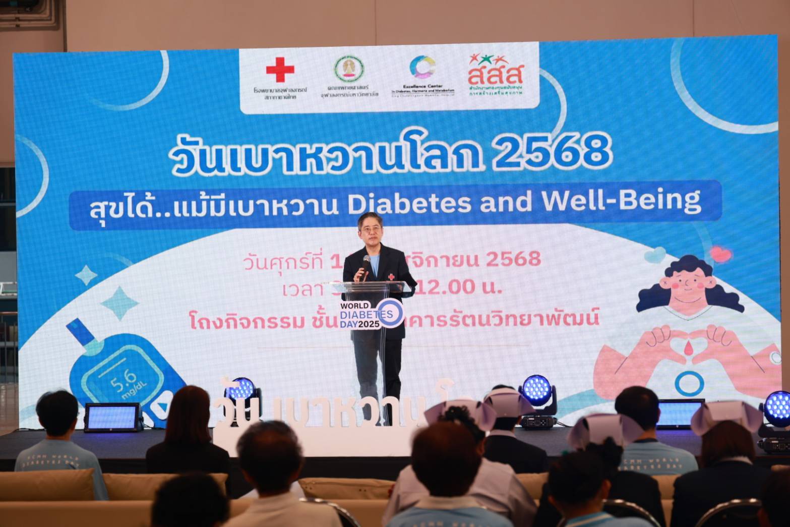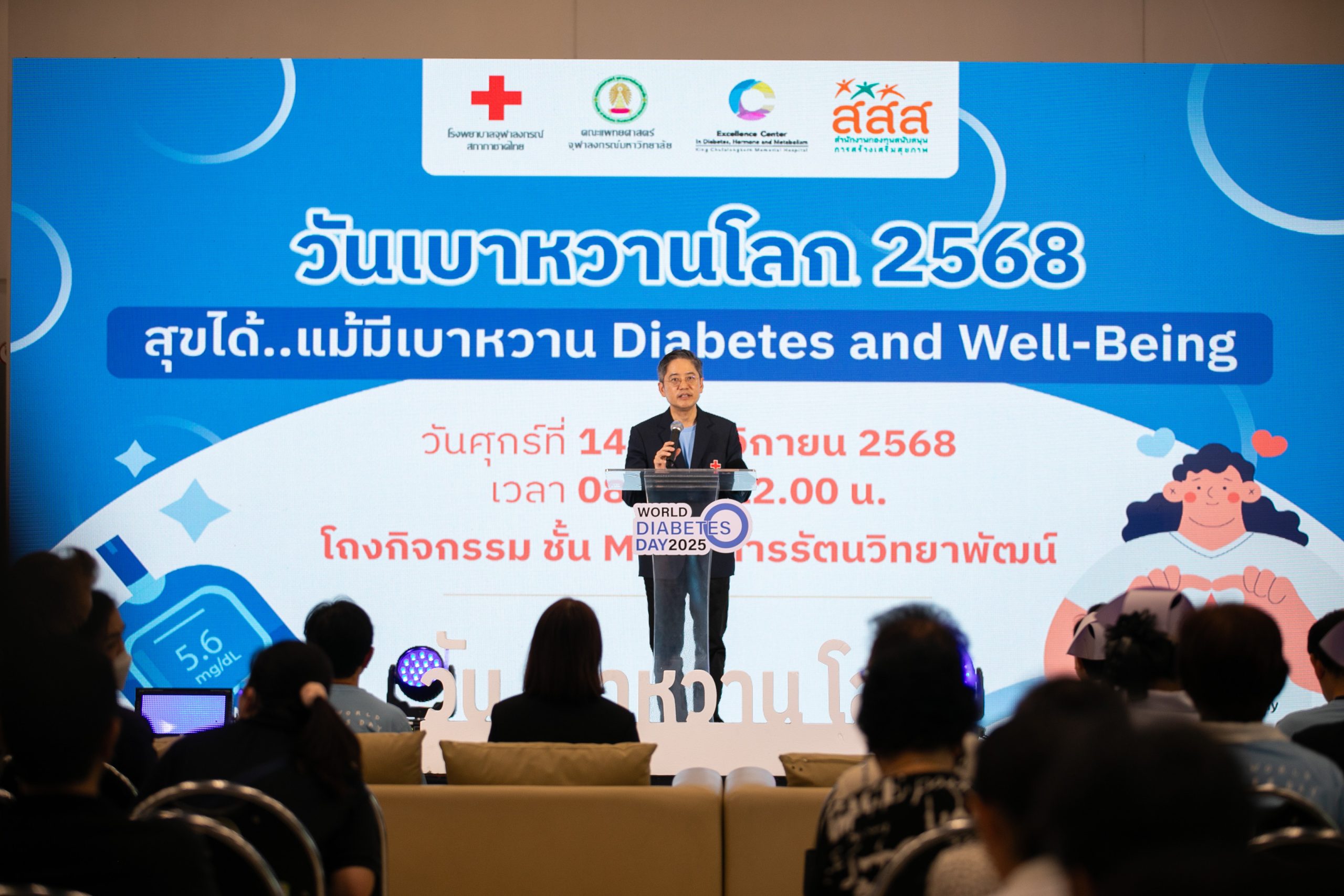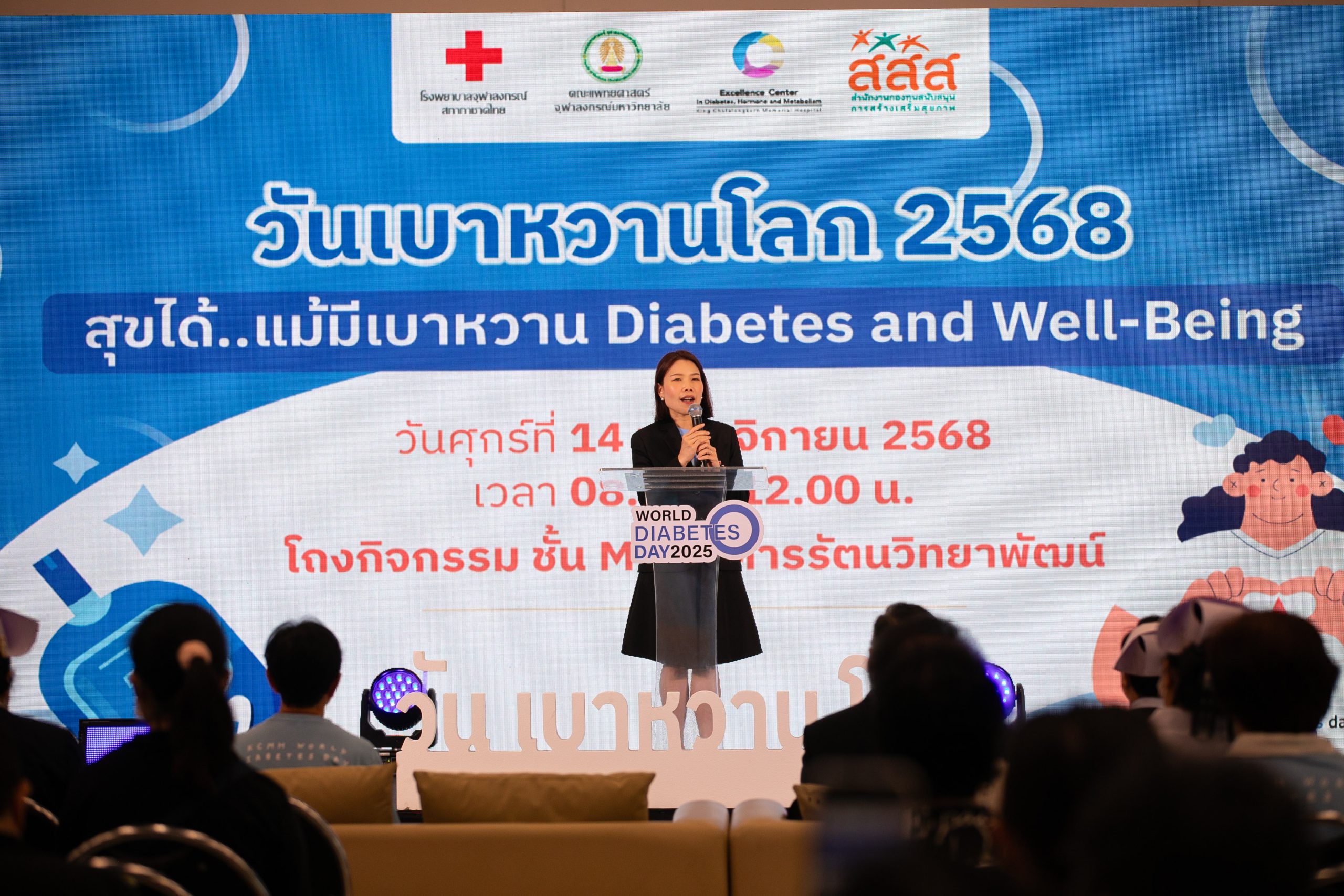 เมื่อวันที่ 14 พฤศจิกายน 2568 ศูนย์ความเป็นเลิศทางการแพทย์ด้านเบาหวาน ฮอร์โมน และเมตะบอลิสม โรงพยาบาลจุฬาลงกรณ์ สภากาชาดไทย ร่วมกับ สำนักงานกองทุนสนับสนุนการสร้างเสริมสุขภาพ (สสส.) และภาคีเครือข่าย จัดงานวันเบาหวานโลก 2568 เพื่อให้ความรู้เกี่ยวกับโรคเบาหวานแบบครบวงจร แลกเปลี่ยนเรียนรู้การใช้เทคโนโลยีในผู้ป่วยเบาหวาน ภายใต้หัวข้อ สุขได้..แม้มีเบาหวาน Diabetes and Well-Being