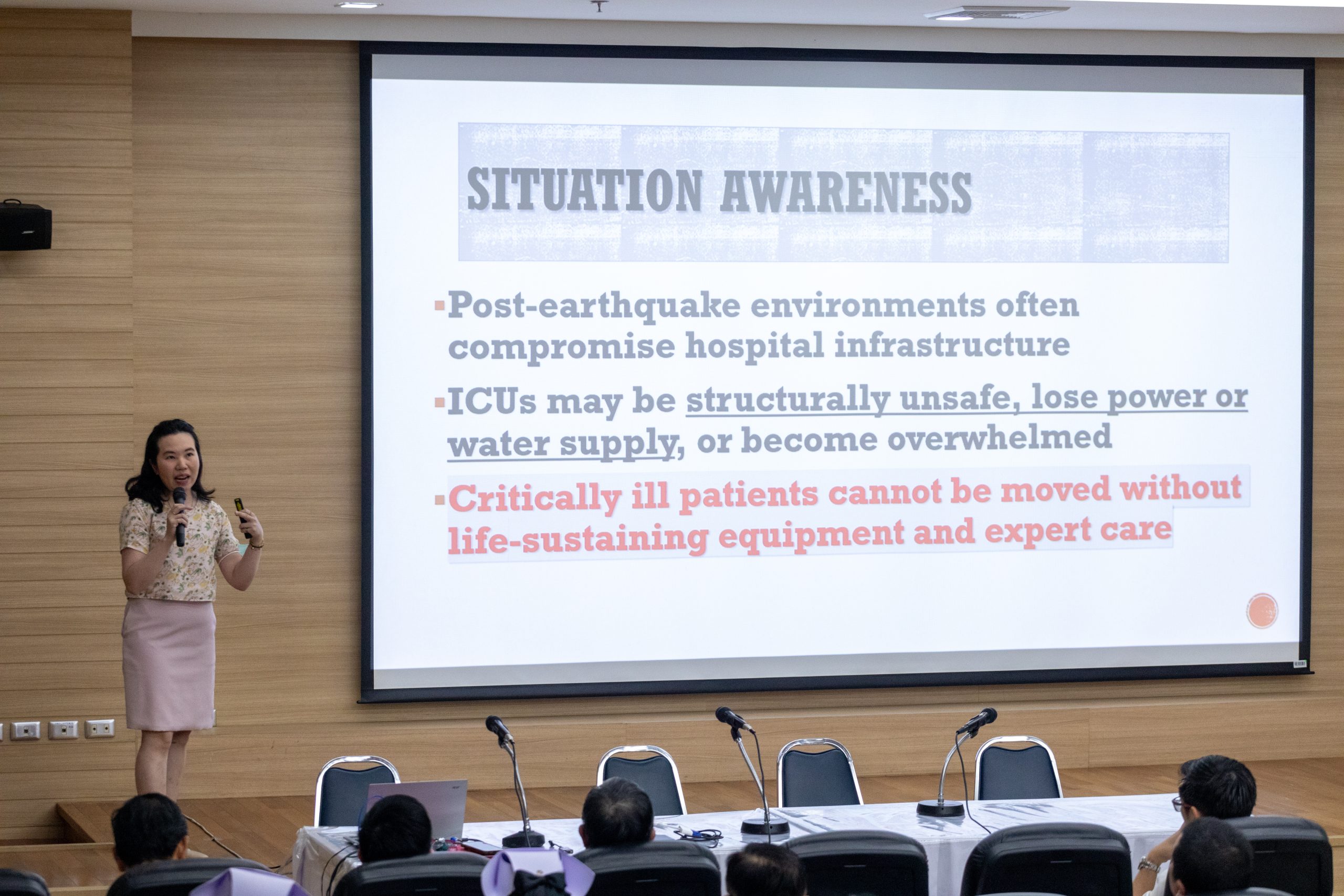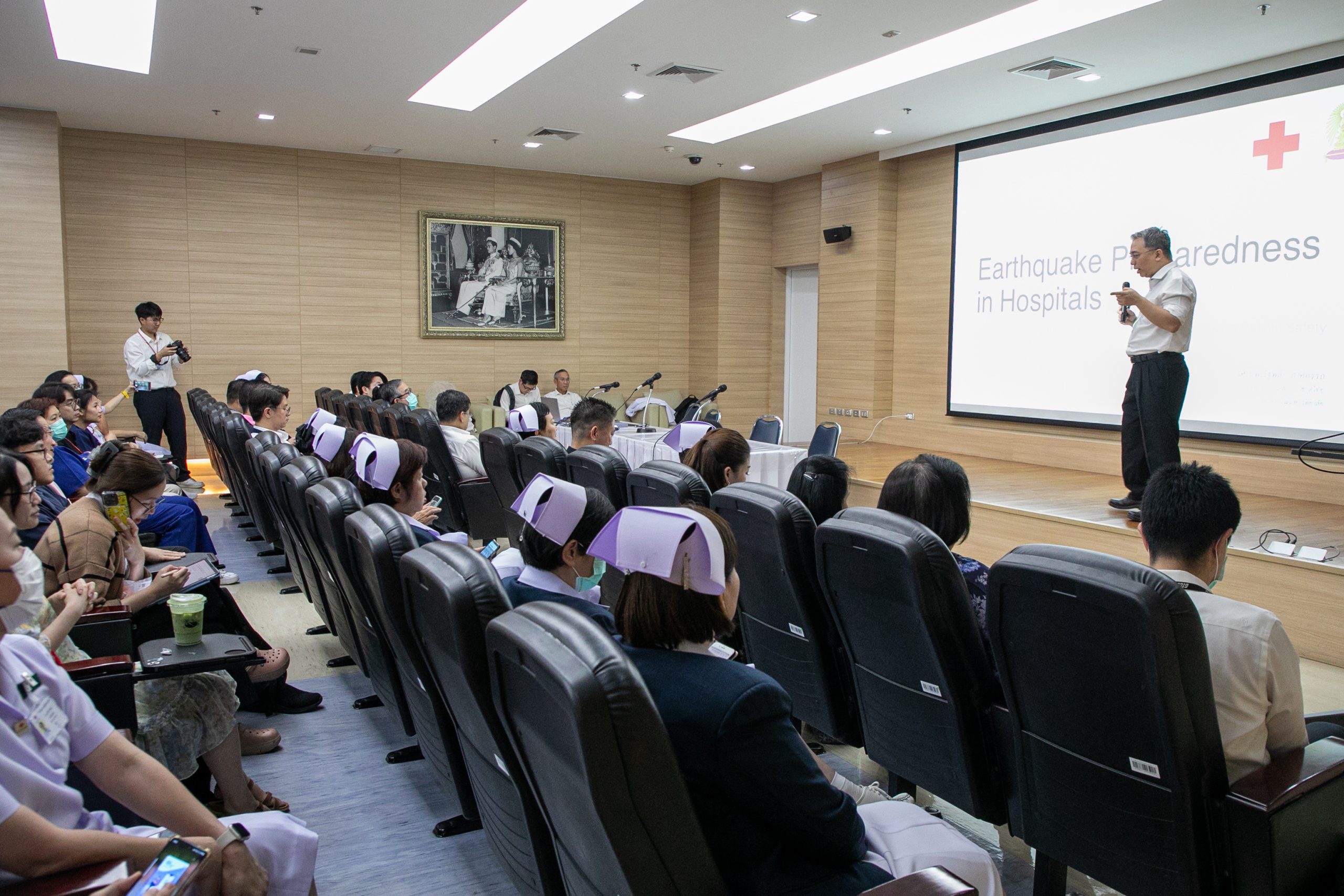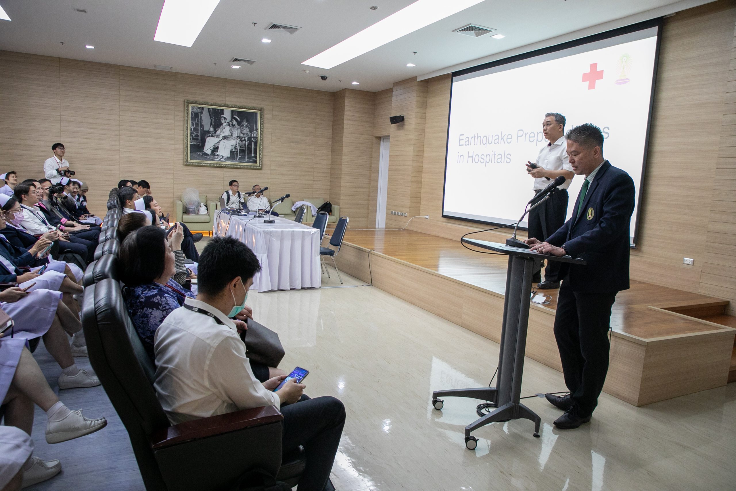 เมื่อวันที่ 1 เมษายน 2568 ณ ห้องประชุม 1301 อาคารภูมิสิริมังคลานุสรณ์ คณะผู้บริหาร แพทย์ พยาบาล บุคลากร โรงพยาบาลจุฬาลงกรณ์ สภากาชาดไทย และ คณะแพทยศาสตร์ จุฬาลงกรณ์มหาวิทยาลัย ร่วมเสวนา “Earthquake Preparedness in Hospitals” จากกรณีเหตุการณ์แผ่นดินไหว เพื่อเน้นย้ำความปลอดภัยในโครงสร้างทุกอาคารของโรงพยาบาลจุฬาลงกรณ์ ได้รับการออกแบบให้แข็งแรงสูงสุดตามที่มาตรฐานกำหนด มีความปลอดภัย ระบบสาธารณูปโภคและเครื่องมือทางการแพทย์ใช้งานได้ปกติ การเสวนาในครั้งนี้ ทุกหน่วยงานร่วมทบทวนวางแผนเพื่อรับมือ หากเกิดเหตุการณ์ที่เป็นผลจากแผ่นดินไหวตามมา เพื่อมุ่งเน้นความปลอดภัยสูงสุดของผู้ป่วยและบุคลากร ด้วยความซื่อสัตย์ รับผิดชอบ เอื้ออาทร
