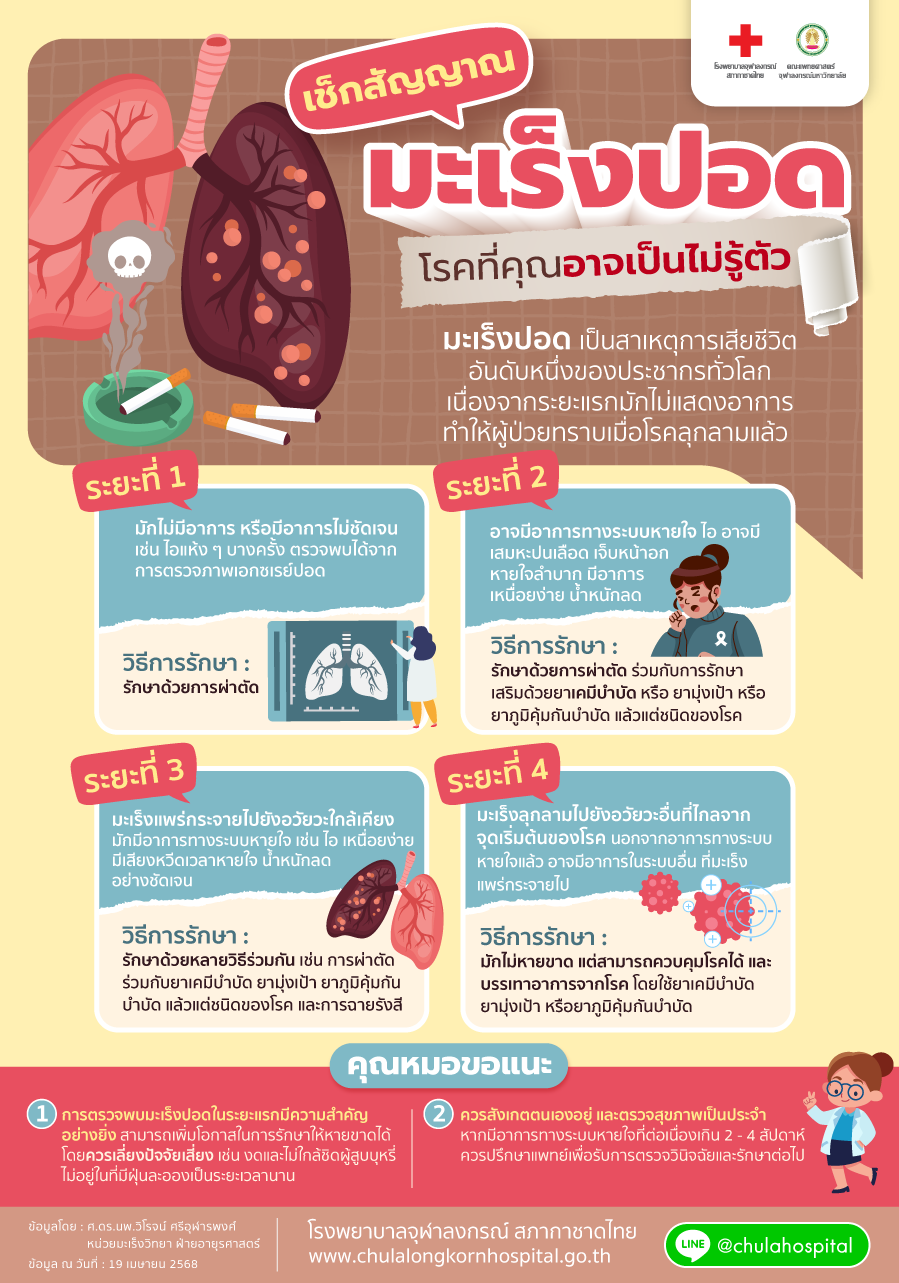 หรือดาวน์โหลดเพื่อนำไปเผยแพร่ต่อไป line@chulahospital เป็นอีกหนึ่งช่องทางให้ทุกคนได้เข้าถึงสาระความรู้และข้อมูลข่าวสารที่โรงพยาบาลจุฬาลงกรณ์ สภากาชาดไทย ตั้งใจนำเสนอเพื่อให้ทุกท่านได้ติดตามเพื่อดูแลสุขภาพกายและใจของตนเอง และคนรอบข้างได้อย่างใกล้ชิด สำหรับใครที่ยังไม่ได้เป็นเพื่อนกับเรา สามารถเพิ่มเพื่อนทางไลน์ได้โดยพิมพ์ @chulahospital หรือสามารถติดตามข้อมูลได้ที่นี่