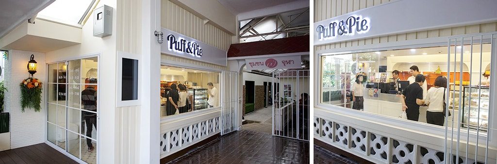 The Snack Shop by Puff & Pie is located at the walkway connected to the building behind Chumpotphong Boriphat Building, Chulalongkorn community.