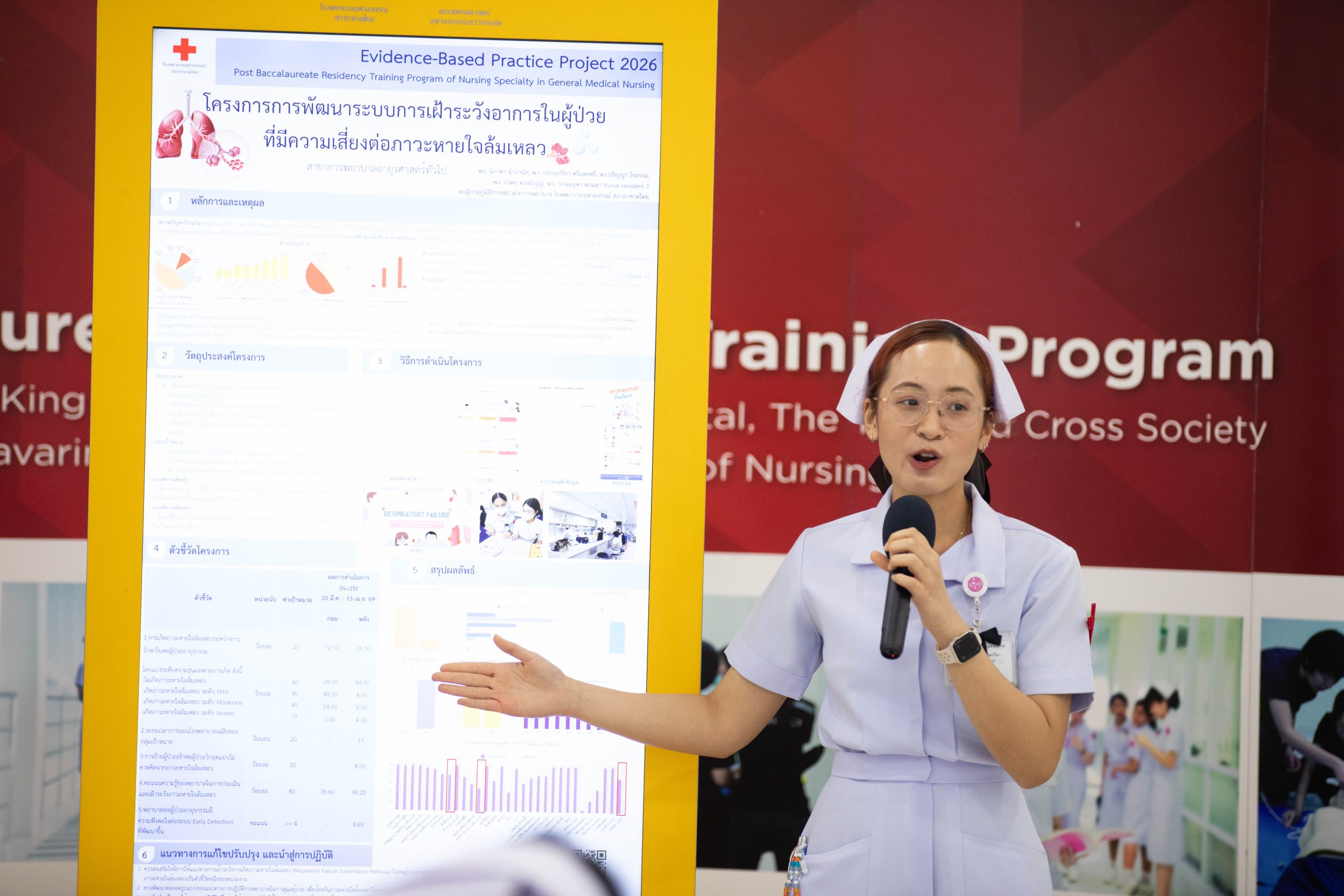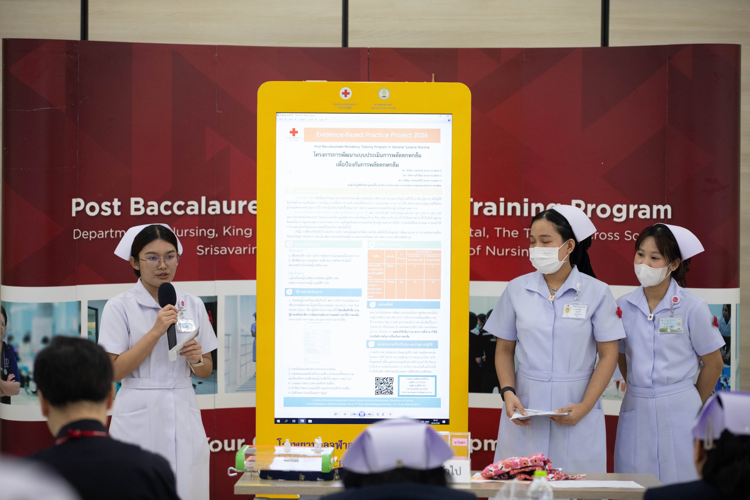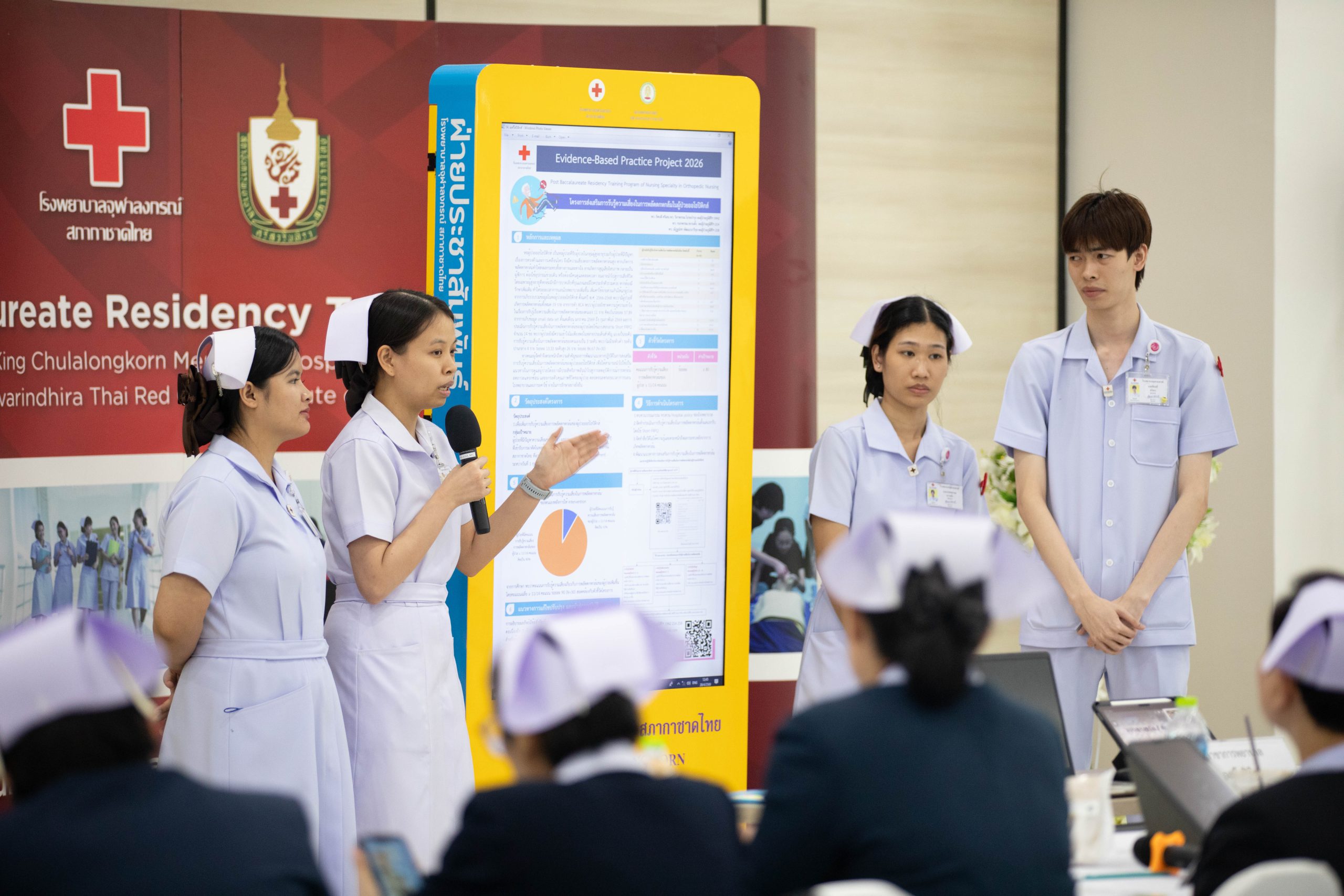 เมื่อวันที่ 20 เมษายน 2569 ฝ่ายการพยาบาล โรงพยาบาลจุฬาลงกรณ์ สภากาชาดไทย ได้จัดเวทีนำเสนอผลงาน “Evidence-Based Practice Project Presentation ประจำปี 2569” เปิดโอกาสให้พยาบาลได้นำเสนอผลงานในรูปแบบ E-Poster รวม 18 ผลงาน จากหลักสูตร Post Baccalaureate Residency Training ที่มุ่งเน้นการใช้เทคโนโลยีสารสนเทศและการพัฒนาผลลัพธ์ทางการพยาบาลอย่างเป็นระบบ