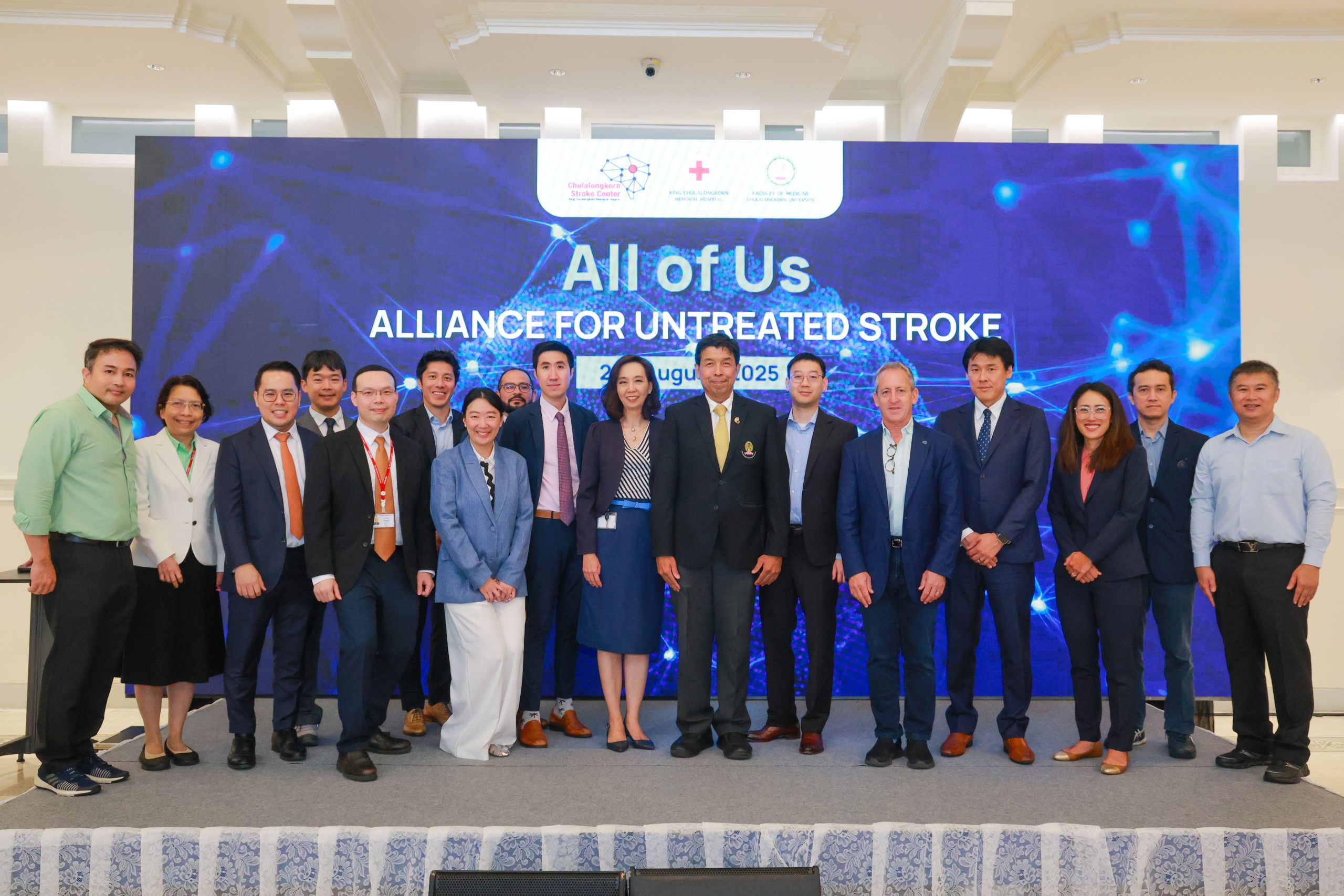 เมื่อวันที่ 20 สิงหาคม 2568 ศูนย์ความเป็นเลิศทางการแพทย์ด้านโรคหลอดเลือดสมองแบบครบวงจร โรงพยาบาลจุฬาลงกรณ์ สภากาชาดไทย ร่วมกับ คณะแพทยศาสตร์ จุฬาลงกรณ์มหาวิทยาลัย จัดงาน “Global Collaboration to Improve Stroke Care in Thailand and Beyond 2025” โดยมี รศ.นพ.ฉันชาย สิทธิพันธุ์ ผู้อำนวยการโรงพยาบาลจุฬาลงกรณ์ สภากาชาดไทย เป็นประธานเปิดงาน และกล่าวต้อนรับคณะวิทยากรผู้เชี่ยวชาญจากเครือข่าวทั่วโลก เพื่อมาให้ความรู้เชิงลึกเกี่ยวกับข้อมูลโรคหลอดเลือดสมอง รวมถึงความก้าวหน้าในเทคนิคการรักษาพร้อมทั้งลงมือปฏิบัติจริง ณ โถงตึกจักรพงษ์ โรงพยาบาลจุฬาลงกรณ์ สภากาชาดไทย