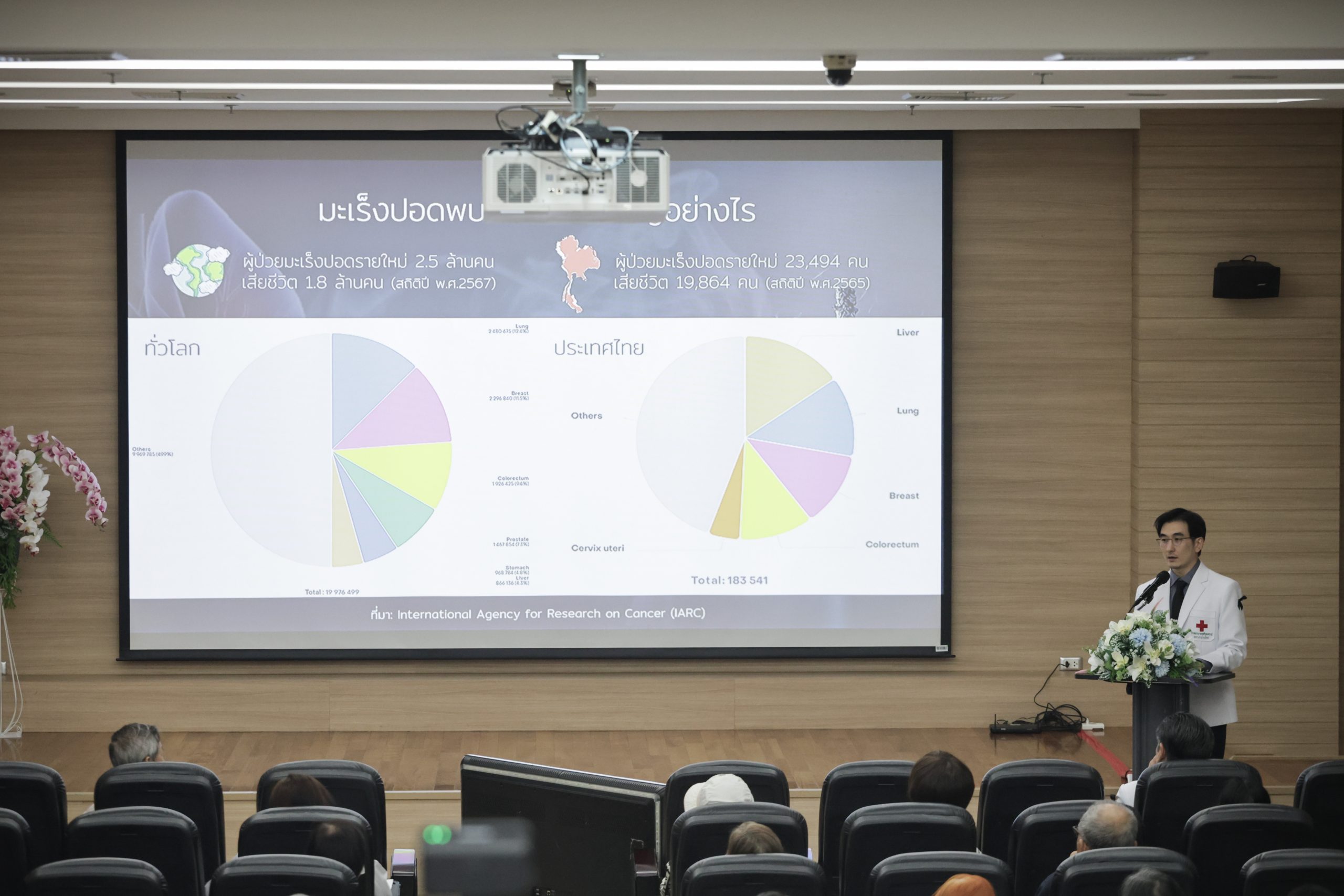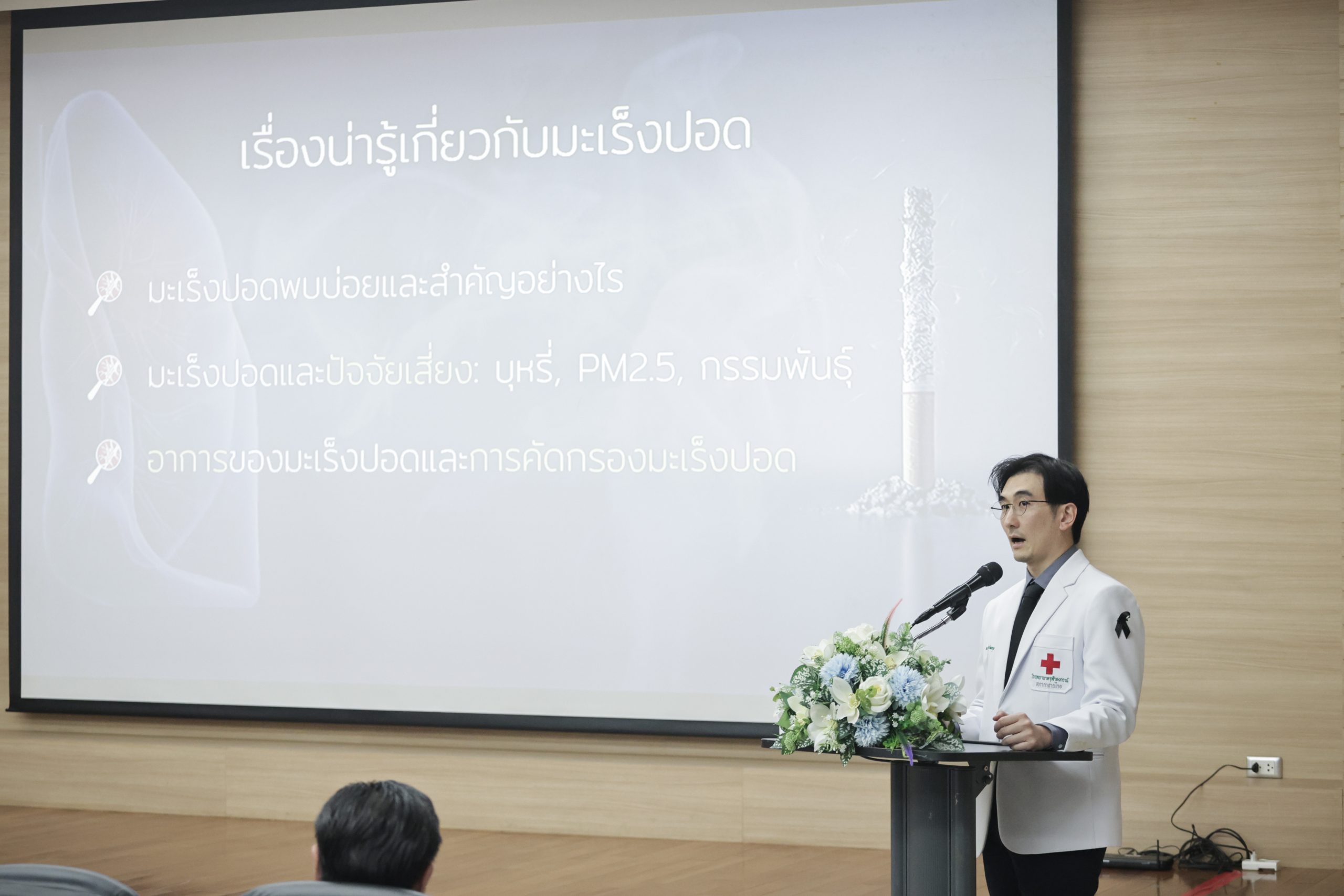 เมื่อวันที่ 21 พฤศจิกายน 2568 ศูนย์ความเป็นเลิศทางการแพทย์โรคมะเร็งครบวงจร โรงพยาบาลจุฬาลงกรณ์ สภากาชาดไทย และคณะแพทยศาสตร์ จุฬาลงกรณ์มหาวิทยาลัย จัดกิจกรรมเสวนาให้ความรู้ประชาชน “ก้าวทันมะเร็งปอด” ครั้งที่ 6 เพื่อให้ประชาชนได้รู้จักโรคมะเร็งปอด ลักษณะของอาการ สาเหตุ การตรวจวินิจฉัย และวิธีการรักษา จากทีมแพทย์ผู้เชี่ยวชาญ ซึ่งกิจกรรมดังกล่าวมี รศ.(พิเศษ)นพ.พิสุทธิ์ กตเวทิน รองหัวหน้าภาควิชาฯ ฝ่ายบริหาร เป็นประธานเปิดกิจกรรม ณ อาคารภูมิสิริมังคลานุสรณ์ ที่ผ่านมา