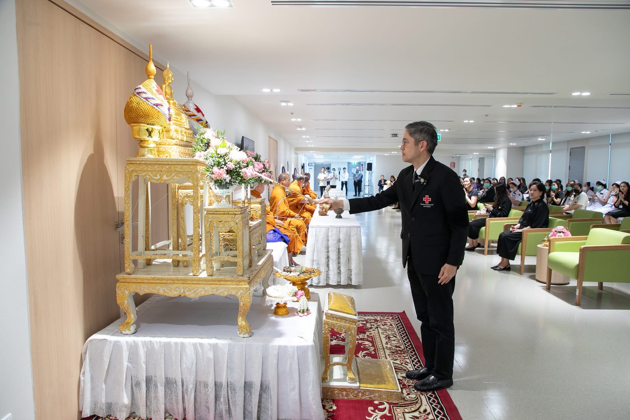 โดยมี รศ.ดร.นพ.จิรุตม์ ศรีรัตนบัลล์ ผู้อำนวยการโรงพยาบาลจุฬาลงกรณ์ สภากาชาดไทย และคณบดี คณะแพทยศาสตร์ จุฬาลงกรณ์มหาวิทยาลัย เป็นประธานจุดธูปเทียน จากนั้นร่วมถวายชุดภัตตาหารปิ่นโตพร้อมเครื่องไทยธรรม พระสงฆ์จำนวน 9 รูป