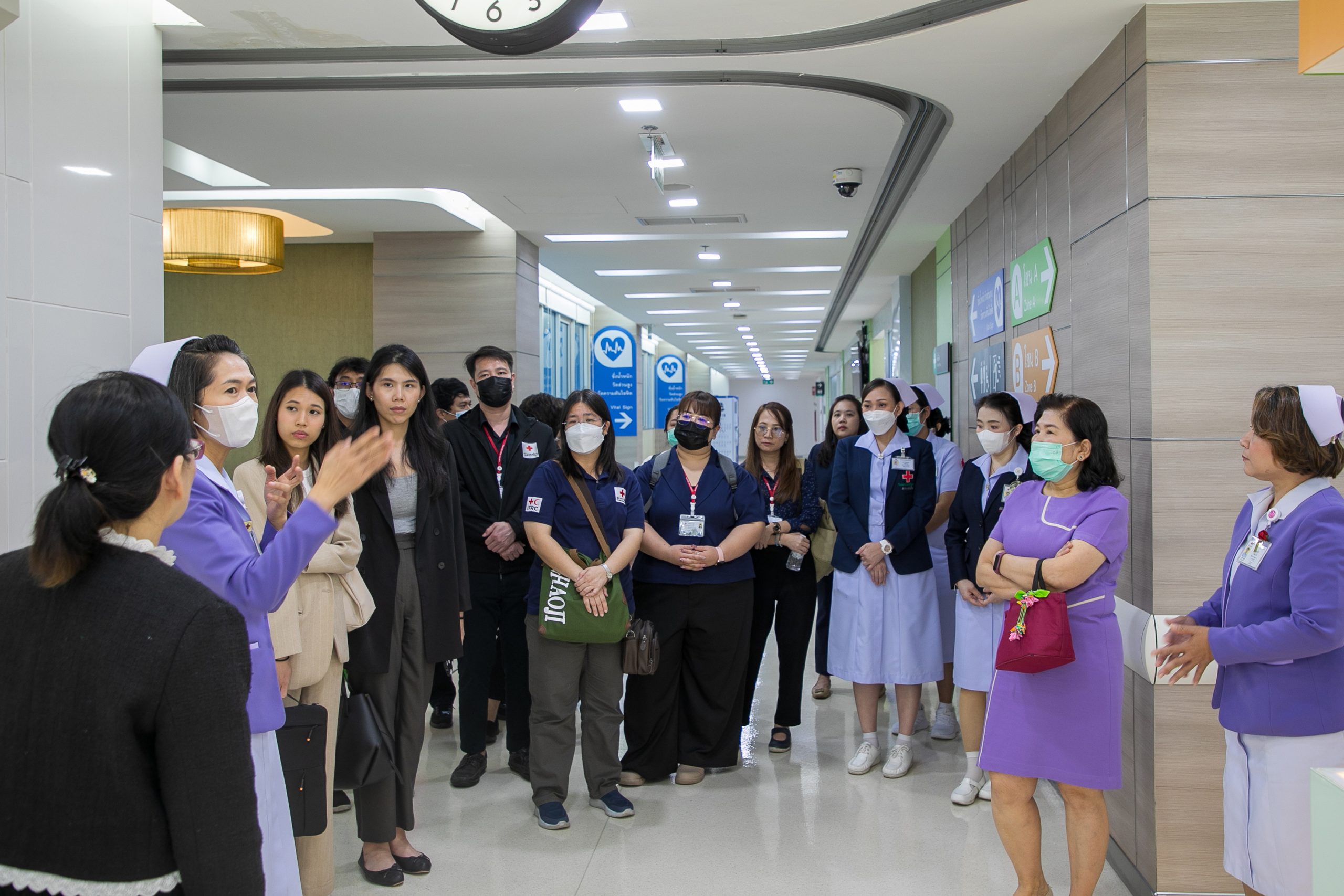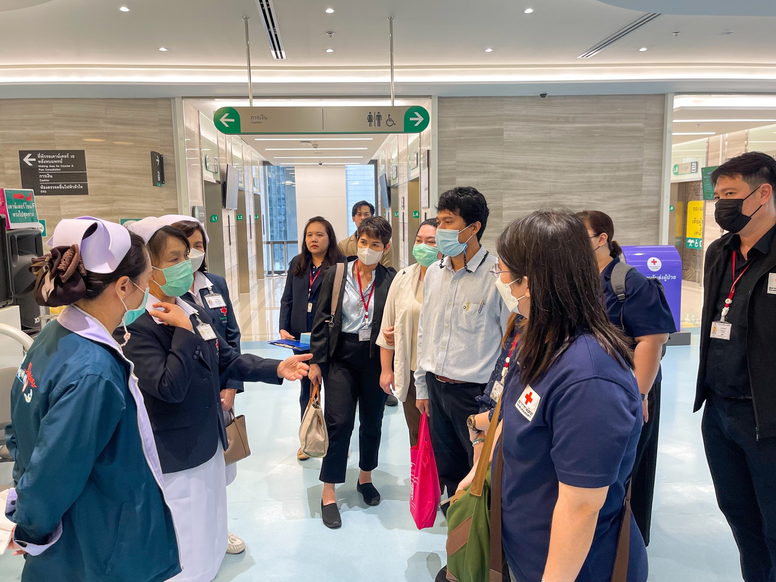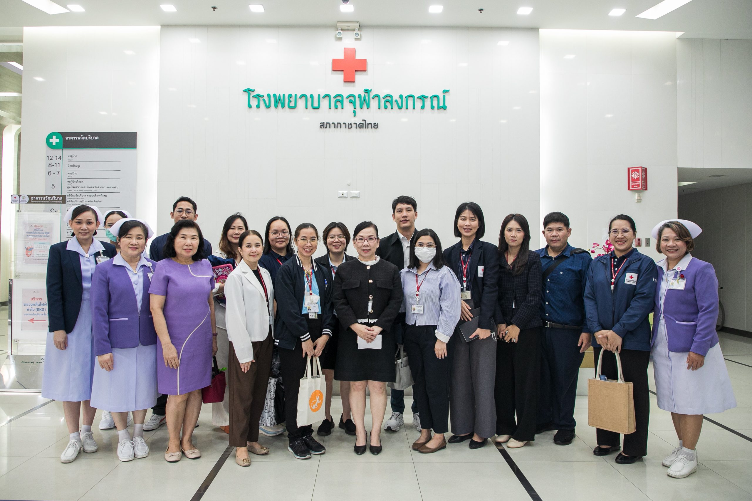 เมื่อวันที่ 16 พฤษภาคม 2568 สำนักงานบริหารทรัพยากรบุคคล สภากาชาดไทย ร่วมกับ บริษัท แพร็กมา แอนด์ วิลล์ กรุ๊ป นำโดยคุณขนิษฐา หงสประภาส ผู้อำนวยการสำนักงานบริหารทรัพยากรบุคคลพร้อมด้วยคณะศึกษาดูงานในโครงการ Next Generation Leadership เข้าเยี่ยมชมดูงานโรงพยาบาลจุฬาลงกรณ์ ณ ลานจักรพงษ์ อาคารจักรีทศมรามาธิบดินทร์ และคลินิกนวัตบริบาล ระบบบริการพิเศษ และคลินิกพิเศษนอกเวลาราชการ โดยมี อ.นพ.ชนัทธ์ กำธรรัตน์ ผู้ช่วยผู้อำนวยการฯ ด้านยุทธศาสตร์ พร้อมด้วยทีมแพทย์ พยาบาล เจ้าหน้าที่ ให้การต้อนรับ และพาเยี่ยมชมจุดให้บริการต่างๆ ภายในโรงพยาบาล เพื่อให้เห็นถึงการพัฒนาและการให้ความสำคัญด้านการบริการสาธารณสุขระดับประเทศ เพื่อให้ได้มุมมองที่หลากหลายและนำไปต่อยอดแนวคิดใหม่ในการพัฒนา Project Assignment ที่เป็นประโยชน์ต่อสภากาชาดไทยและสังคมต่อไป
