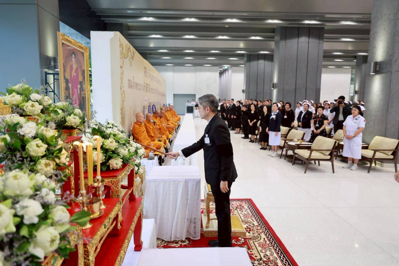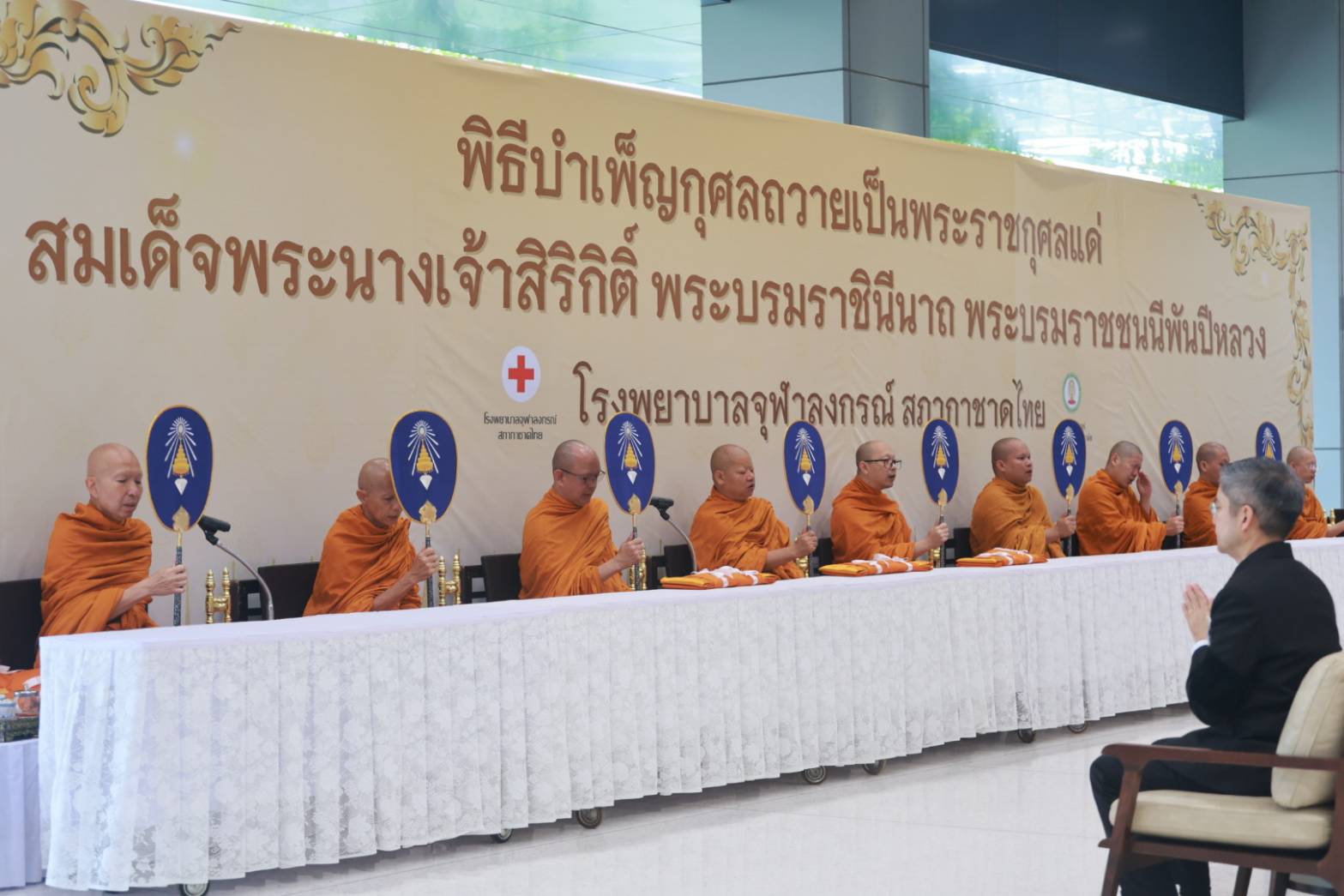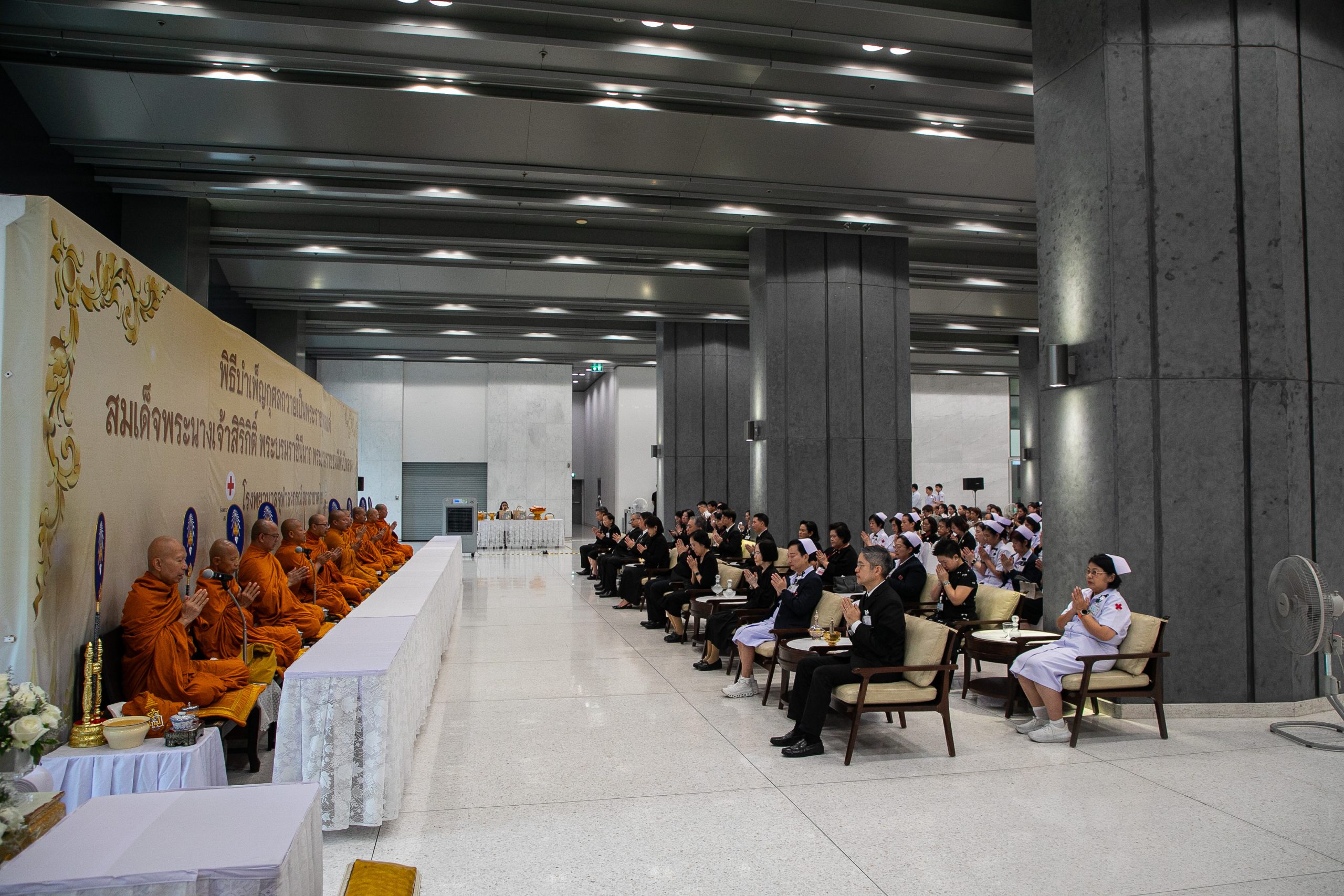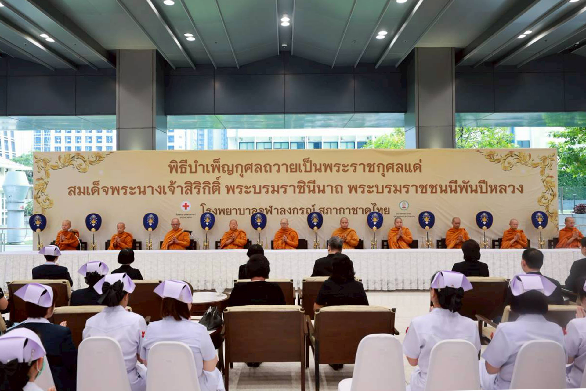 จากนั้น รศ.ดร.นพ.จิรุตม์ ศรีรัตนบัลล์ ผู้อำนวยการโรงพยาบาลจุฬาลงกรณ์ สภากาชาดไทย เป็นประธานในพิธีจุดธูปเทียนบูชาพระรัตนตรัย และถวายสักการะพระฉายาลักษณ์สมเด็จพระนางเจ้าสิริกิติ์ พระบรมราชินีนาถ พระบรมราชชนนีพันปีหลวง คณะผู้บริหาร แพทย์ พยาบาล บุคลากร นิสิตแพทย์ นักศึกษาพยาบาล ร่วมพิธีสดับปกรณ์ ถวายสังฆทานแด่พระสงฆ์โดยพร้อมเพรียงกัน บรรยากาศเป็นไปด้วยความสงบ น้อมสำนึกในพระมหากรุณาธิคุณเป็นล้นพ้นอันหาที่สุดมิได้