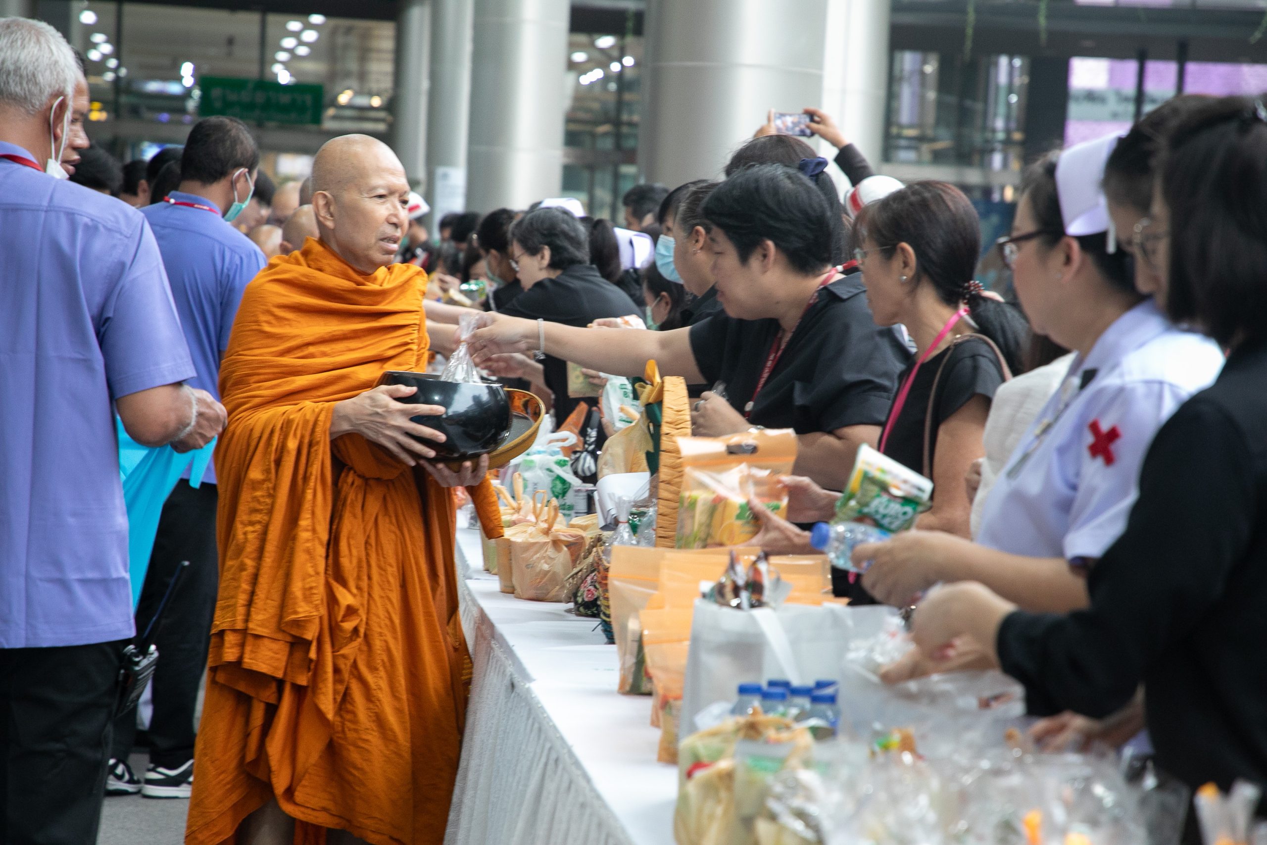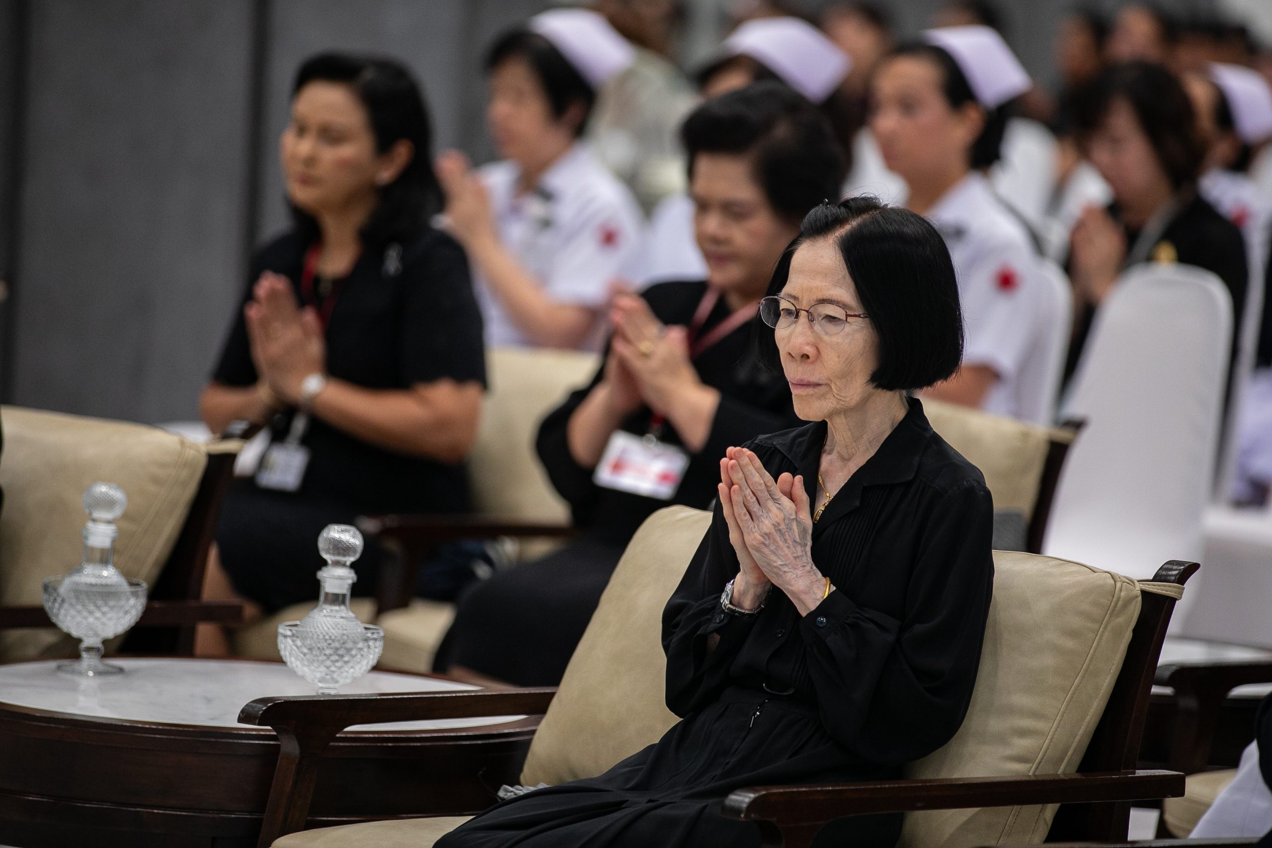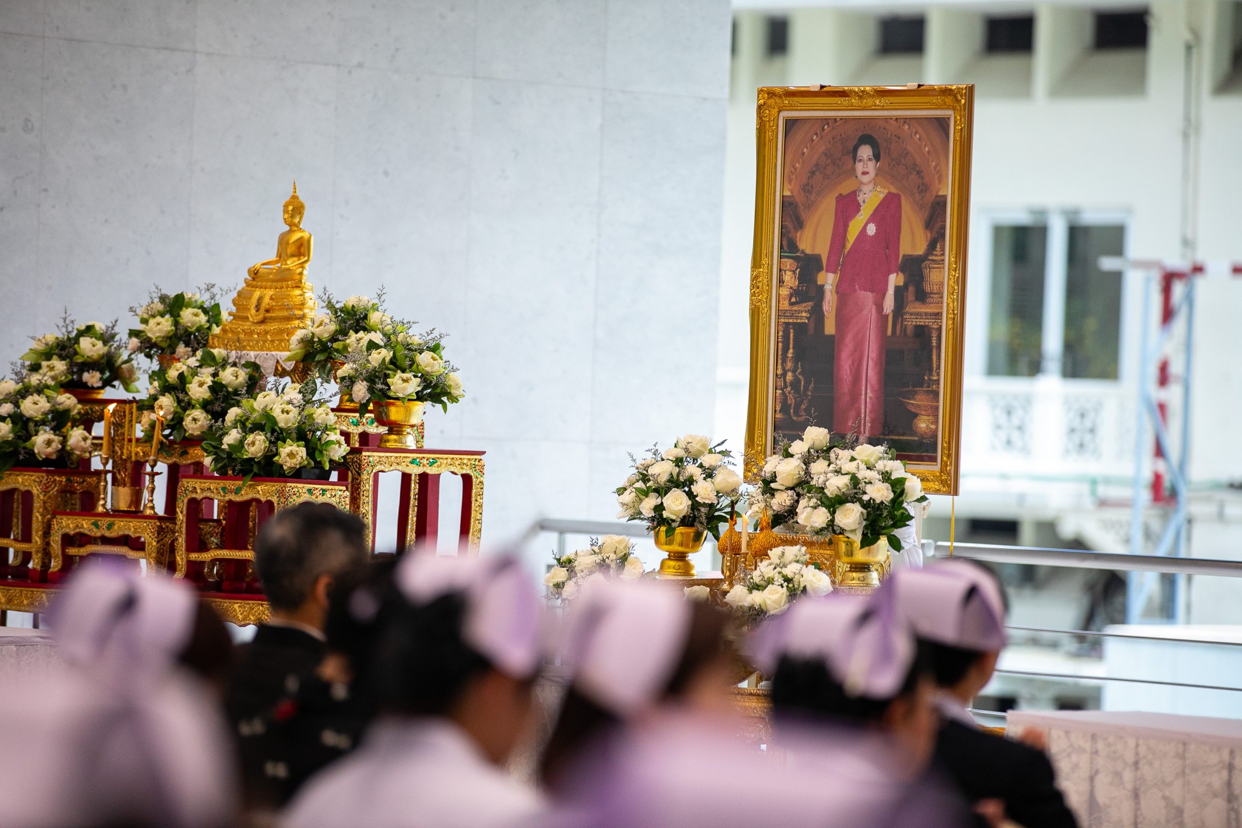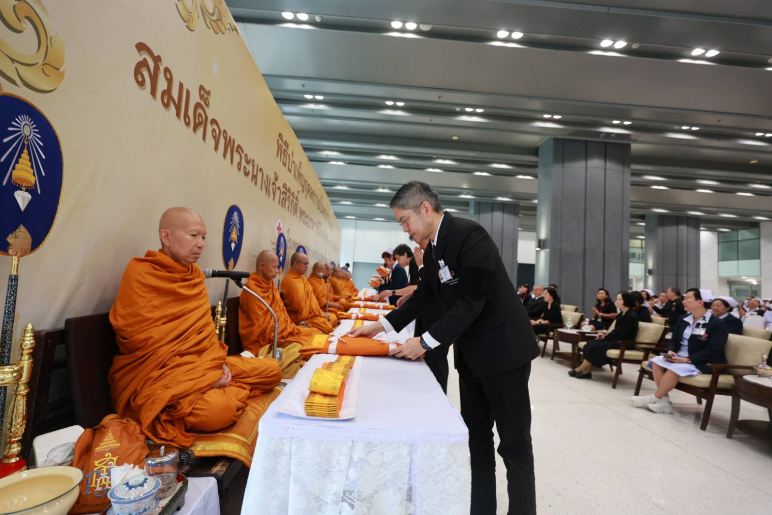 จากนั้น รศ.ดร.นพ.จิรุตม์ ศรีรัตนบัลล์ ผู้อำนวยการโรงพยาบาลจุฬาลงกรณ์ สภากาชาดไทย เป็นประธานในพิธีจุดธูปเทียนบูชาพระรัตนตรัย และถวายสักการะพระฉายาลักษณ์สมเด็จพระนางเจ้าสิริกิติ์ พระบรมราชินีนาถ พระบรมราชชนนีพันปีหลวง คณะผู้บริหาร แพทย์ พยาบาล บุคลากร นิสิตแพทย์ นักศึกษาพยาบาล ร่วมพิธีสดับปกรณ์ ถวายสังฆทานแด่พระสงฆ์โดยพร้อมเพรียงกัน บรรยากาศเป็นไปด้วยความสงบ น้อมสำนึกในพระมหากรุณาธิคุณเป็นล้นพ้นอันหาที่สุดมิได้