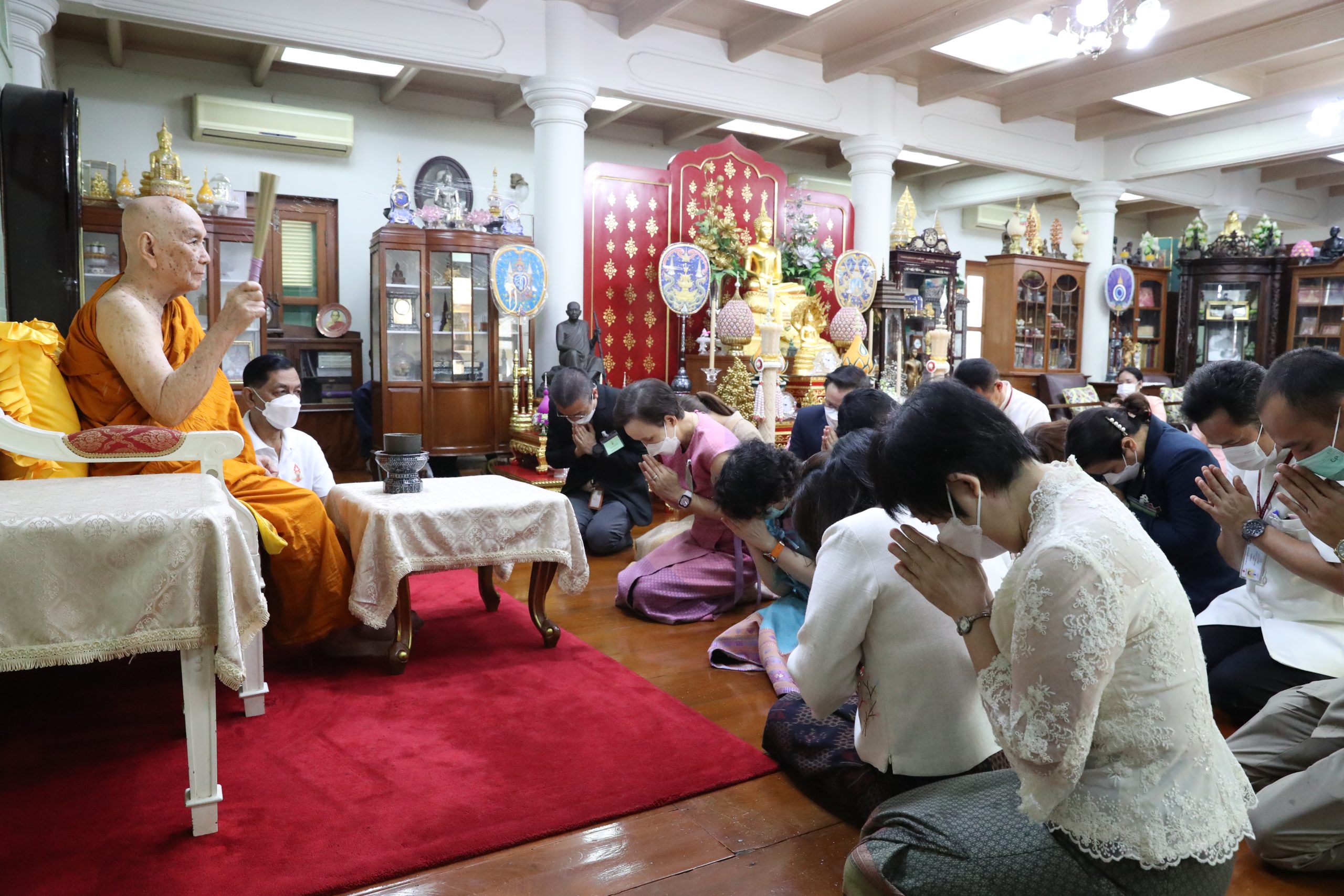 เมื่อวันอังคารที่ 14 มกราคม 2568 ผศ.พญ.ยุวรีย์ พิชิตโชค รองผู้อำนวยการ โรงพยาบาลจุฬาลงกรณ์ ฝ่ายยุทธศาสตร์องค์กรและทรัพยากรบุคคล นำคณะผู้บริหาร พยาบาล เจ้าหน้าที่ เข้าเฝ้าถวายเครื่องสักการะสมเด็จพระอริยวงศาคตญาณ สมเด็จพระสังฆราช สกลมหาสังฆปริณายก เพื่อถวายสักการะและรับประทานพรเนื่องในวันปีใหม่ 2568 เพื่อความเป็นสิริมงคล ณ ตำหนักอรุณ วัดราชบพิธสถิตมหาสีมาราม ราชวรวิหาร เขตพระนคร กรุงเทพมหานคร