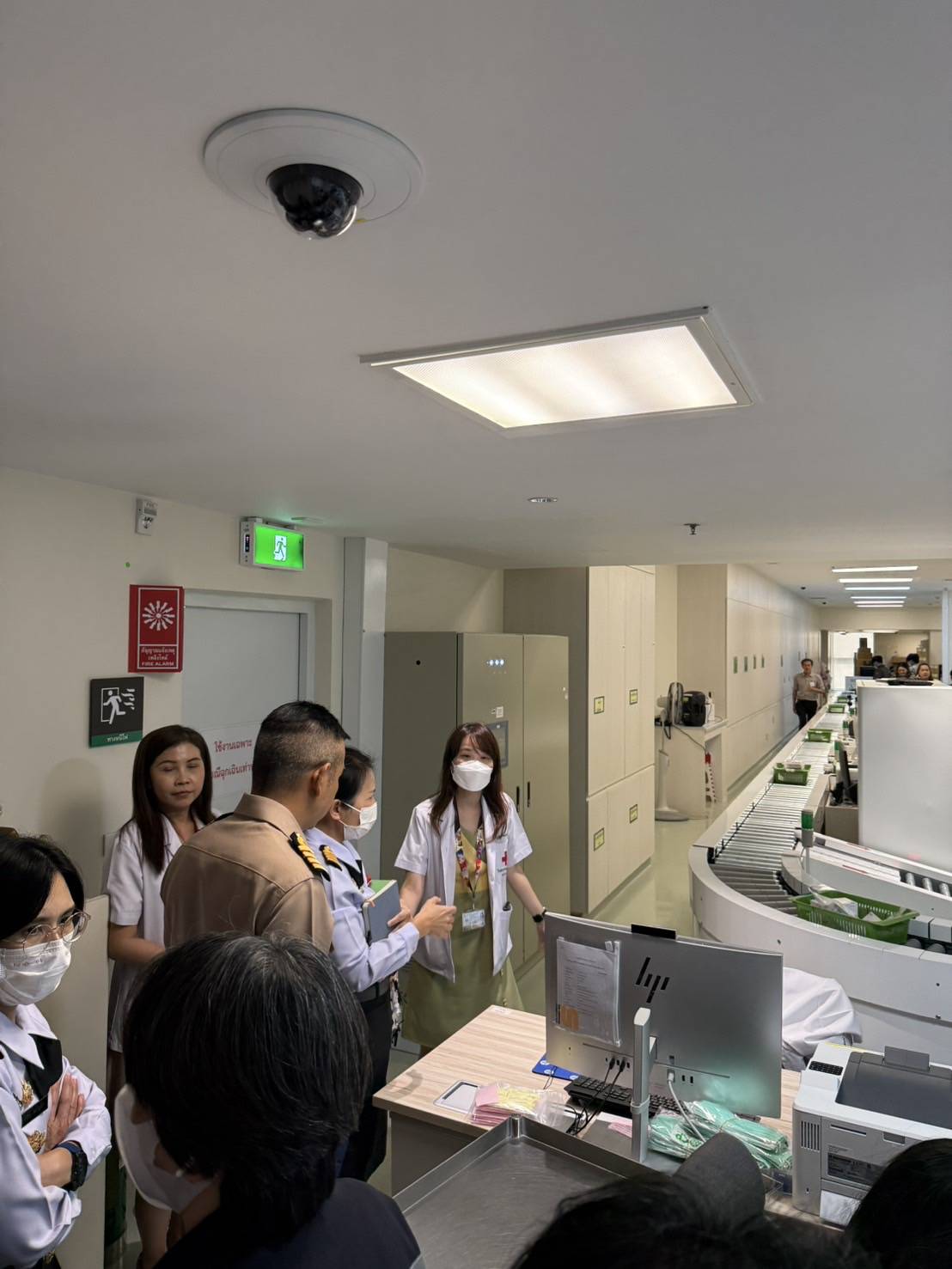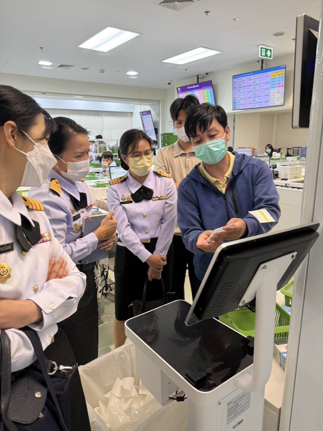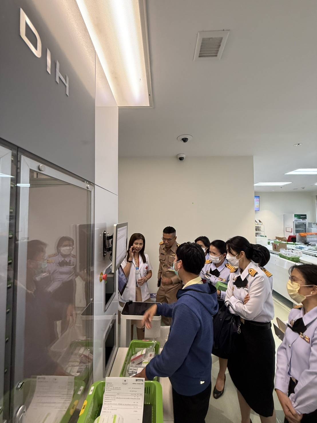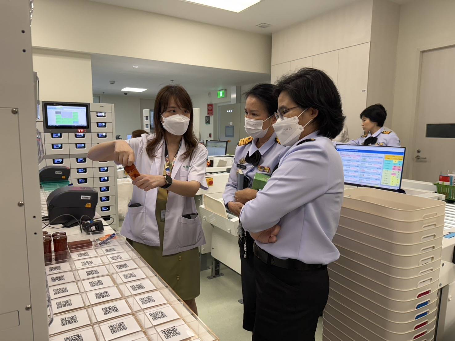 เมื่อวันที่ 20 และ 23 มิถุนายน 2568 โรงพยาบาลสมเด็จพระบรมราชเทวี ณ ศรีราชา และ โรงพยาบาลสมเด็จพระปิ่นเกล้า กรมแพทย์ทหารเรือ ศึกษาดูงานระบบจัดยาอัตโนมัติ (Pharmacy Dispensing Robot) ของห้องจ่ายยาผู้ป่วยนอก อาคารจักรีทศมรามาธิบดินทร์ ชั้น 2 โรงพยาบาลจุฬาลงกรณ์ สภากาชาดไทย โดยมี ภญ.วรรณี อิทธิวัฒนกุล ผู้ช่วยผู้อำนวยการฯ ด้านยา อาหารและเวชภัณฑ์ ภญ.พวงเพ็ญ ฤทธีวีรกูล หัวหน้ากลุ่มงานเภสัชกรรมพร้อมด้วยทีมเภสัชกร ให้การต้อนรับ และพาเยี่ยมชมการให้บริการของห้องจ่ายยาผู้ป่วยนอก เพื่อแลกเปลี่ยนประสบการณ์เรียนรู้ร่วมกัน ในการพัฒนาระบบบริการจ่ายยาผู้ป่วยนอก ให้มีความรวดเร็ว ปลอดภัย และทันสมัยมากยิ่งขึ้น สอดคล้องกับทิศทางการนำเทคโนโลยีมาช่วยในการพัฒนาคุณภาพระบบยาของโรงพยาบาลอย่างต่อเนื่องต่อไป