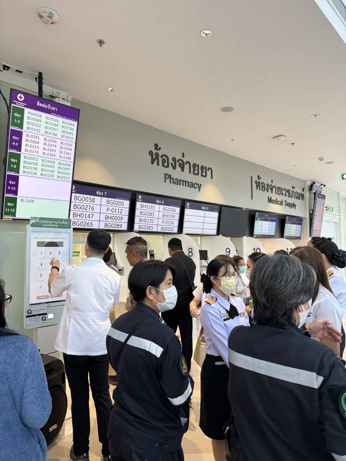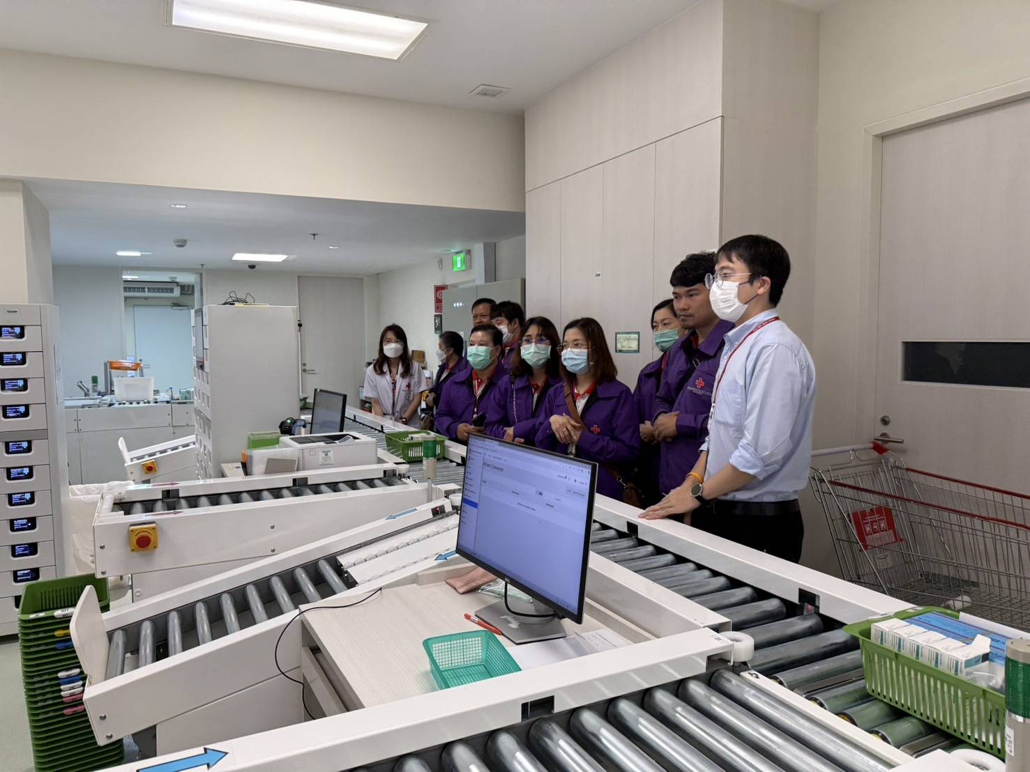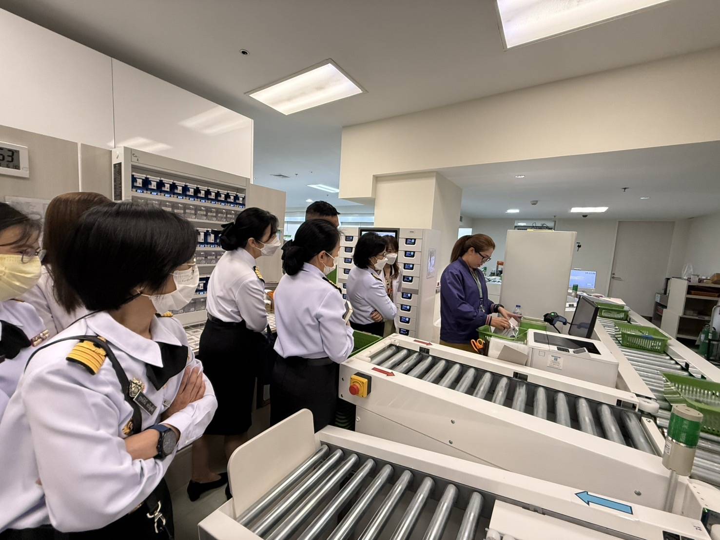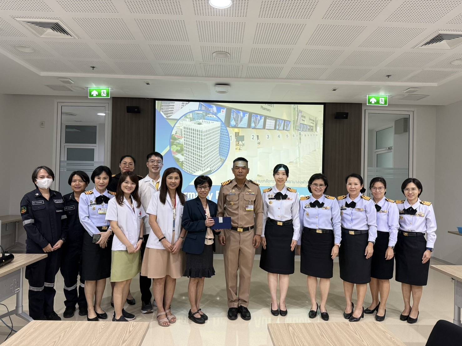 เมื่อวันที่ 20 และ 23 มิถุนายน 2568 โรงพยาบาลสมเด็จพระบรมราชเทวี ณ ศรีราชา และ โรงพยาบาลสมเด็จพระปิ่นเกล้า กรมแพทย์ทหารเรือ ศึกษาดูงานระบบจัดยาอัตโนมัติ (Pharmacy Dispensing Robot) ของห้องจ่ายยาผู้ป่วยนอก อาคารจักรีทศมรามาธิบดินทร์ ชั้น 2 โรงพยาบาลจุฬาลงกรณ์ สภากาชาดไทย โดยมี ภญ.วรรณี อิทธิวัฒนกุล ผู้ช่วยผู้อำนวยการฯ ด้านยา อาหารและเวชภัณฑ์ ภญ.พวงเพ็ญ ฤทธีวีรกูล หัวหน้ากลุ่มงานเภสัชกรรมพร้อมด้วยทีมเภสัชกร ให้การต้อนรับ และพาเยี่ยมชมการให้บริการของห้องจ่ายยาผู้ป่วยนอก เพื่อแลกเปลี่ยนประสบการณ์เรียนรู้ร่วมกัน ในการพัฒนาระบบบริการจ่ายยาผู้ป่วยนอก ให้มีความรวดเร็ว ปลอดภัย และทันสมัยมากยิ่งขึ้น สอดคล้องกับทิศทางการนำเทคโนโลยีมาช่วยในการพัฒนาคุณภาพระบบยาของโรงพยาบาลอย่างต่อเนื่องต่อไป