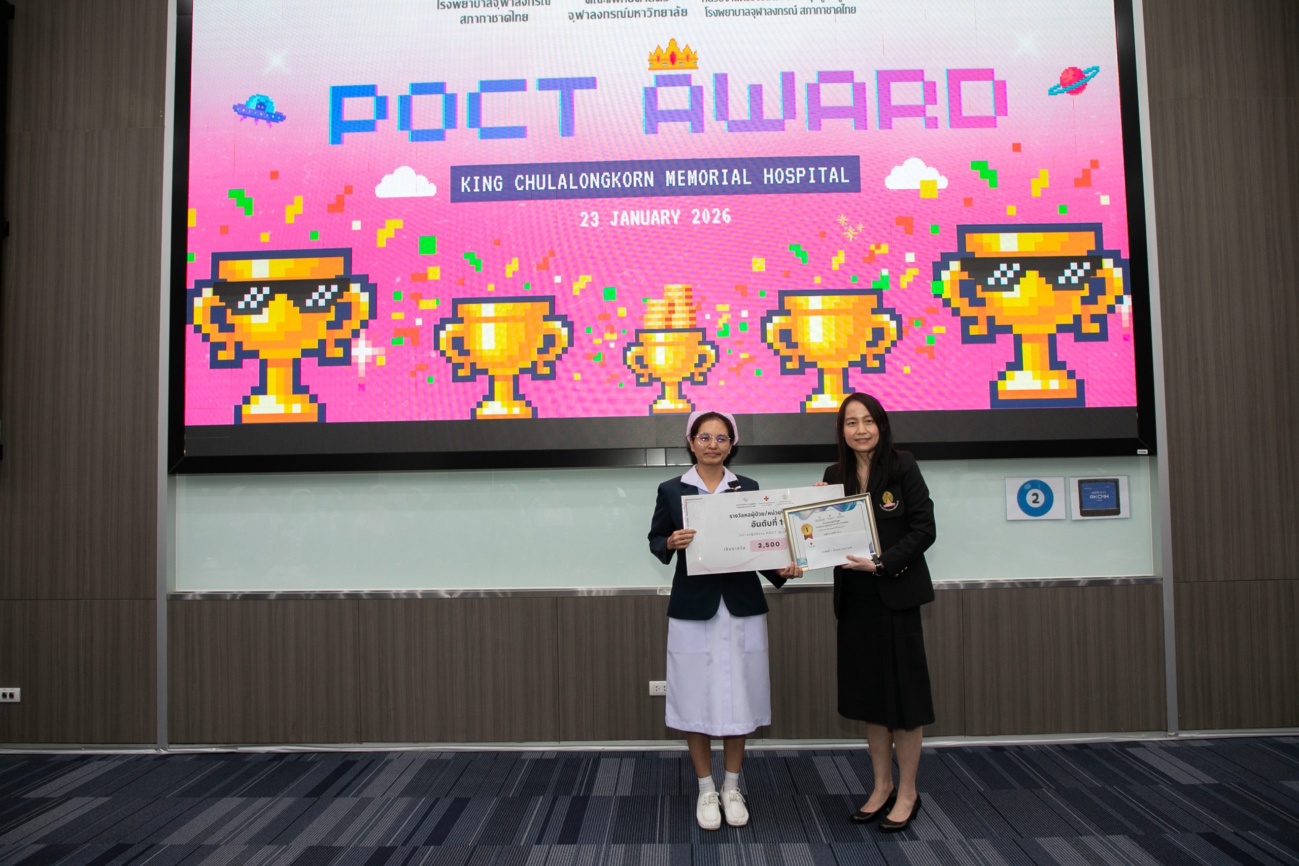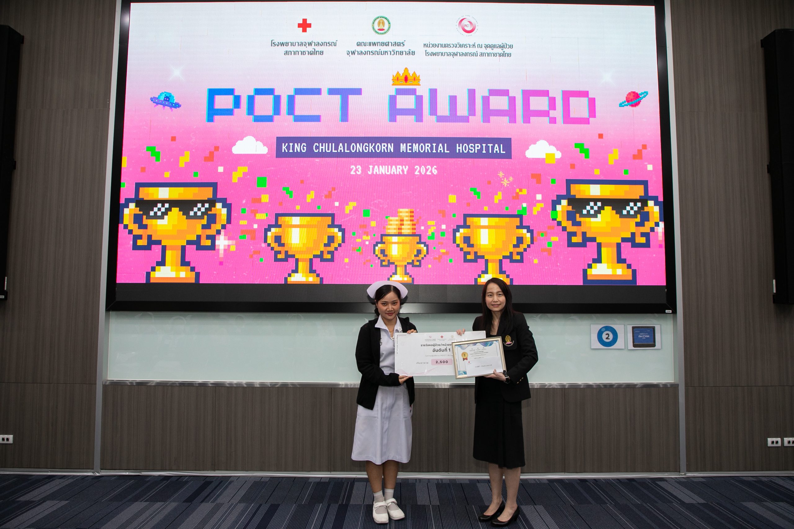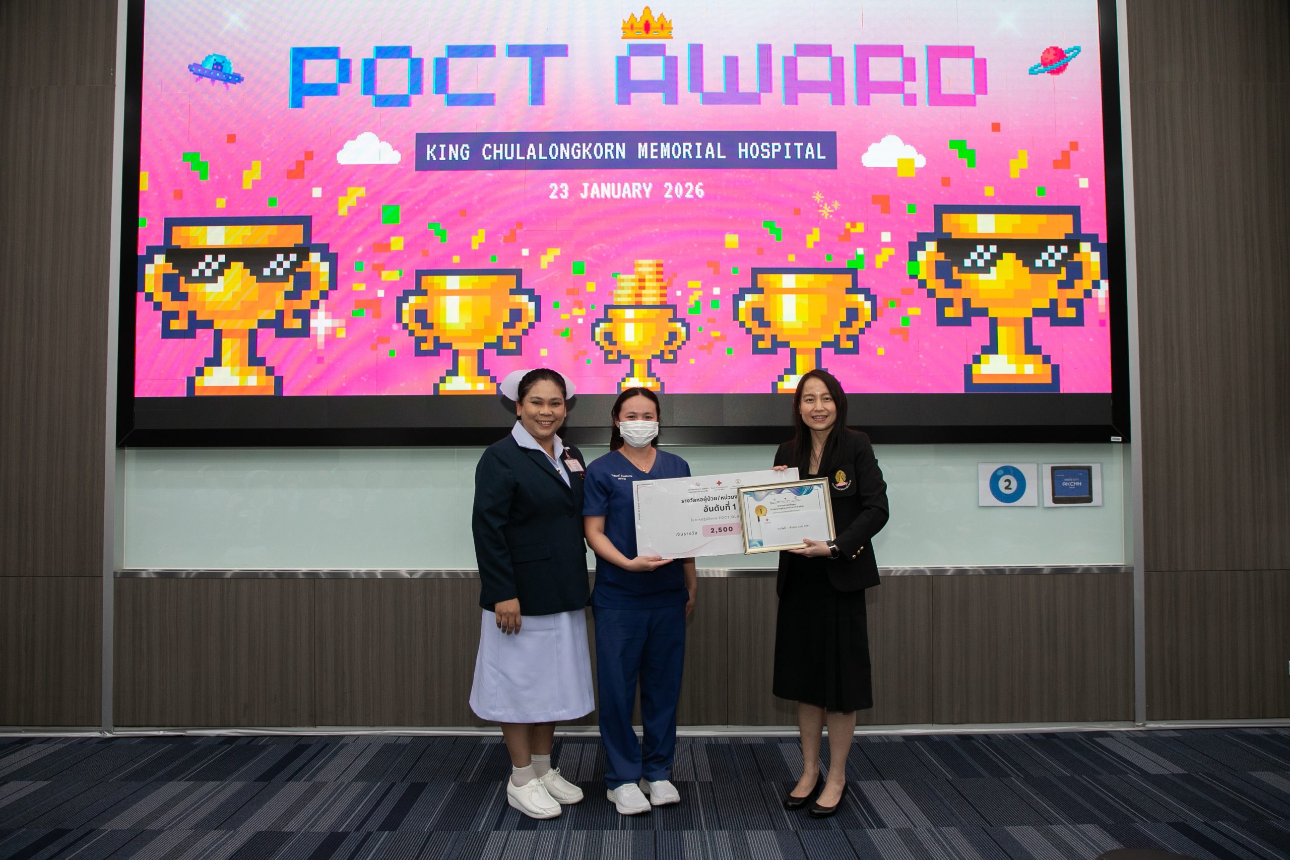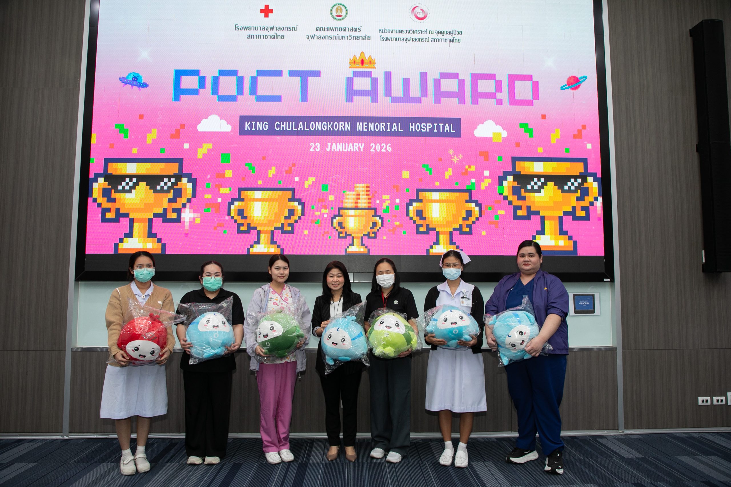 เมื่อวันที่ 22 มกราคม 2569 ฝ่ายเวชศาสตร์ชันสูตร โรงพยาบาลจุฬาลงกรณ์ สภากาชาดไทย จัดโครงการ POCT Day เพื่ออบรมและเตรียมความพร้อมในการขอรับรองมาตรฐาน ISO 15189:2022 และ ISO 15190:2020 โดยมี รศ.พญ.พรรณดี วัฒนบุญยงเจริญ หัวหน้าฝ่ายเวชศาสตร์ชันสูตร เป็นประธานมอบรางวัลแก่หอผู้ป่วยที่มีผลการตรวจประเมินคุณภาพภายในด้านการปฏิบัติงาน POCT ดีเด่น