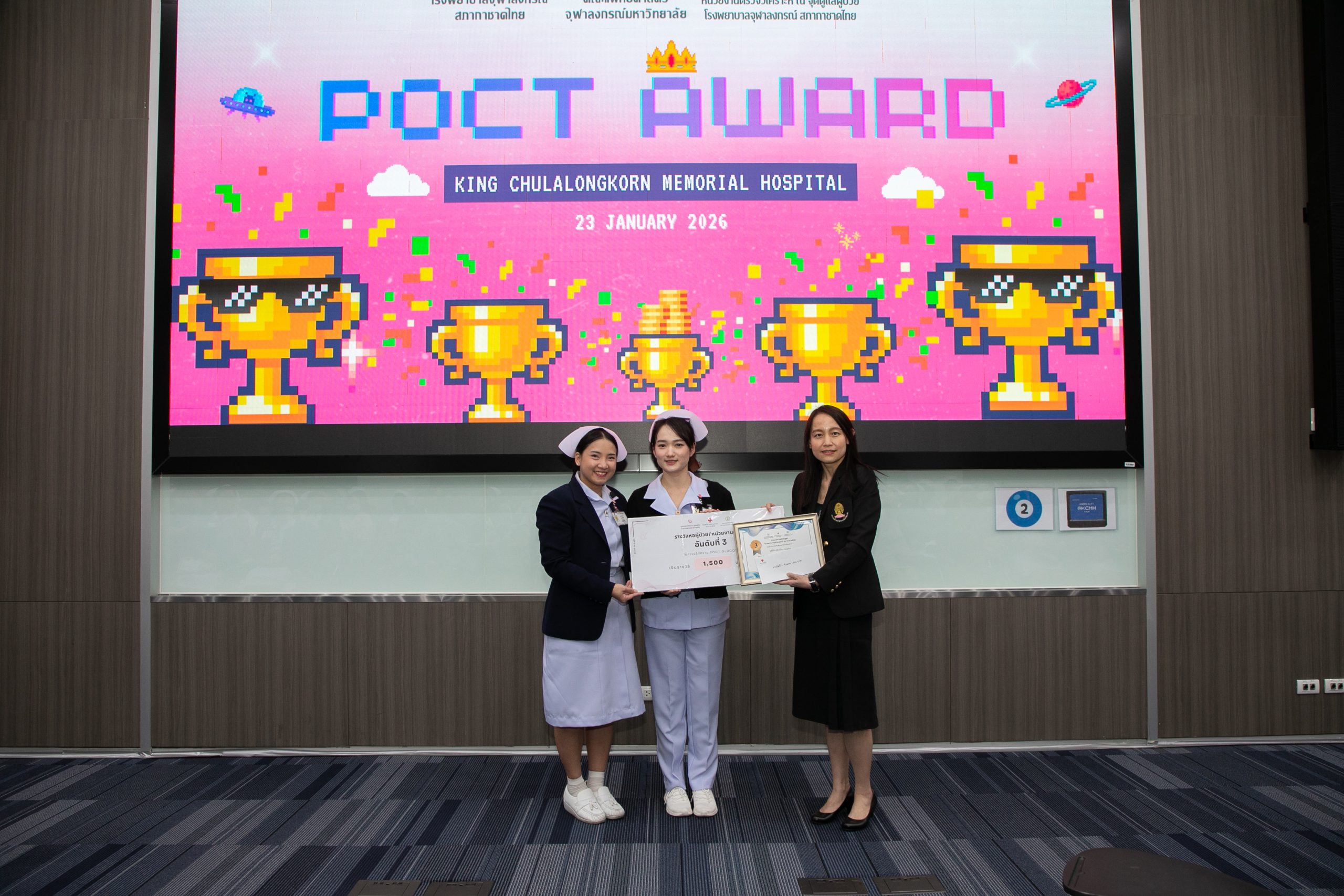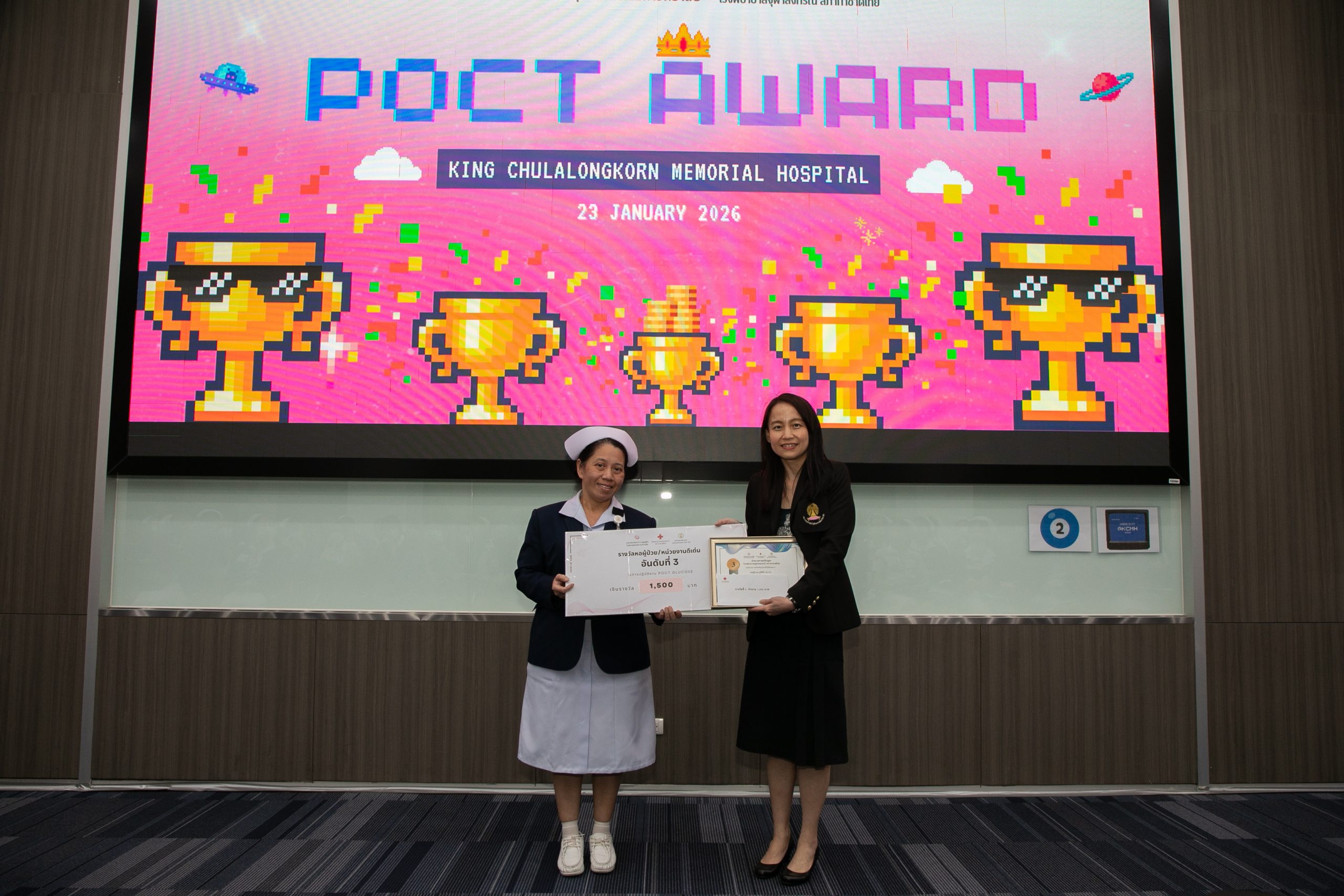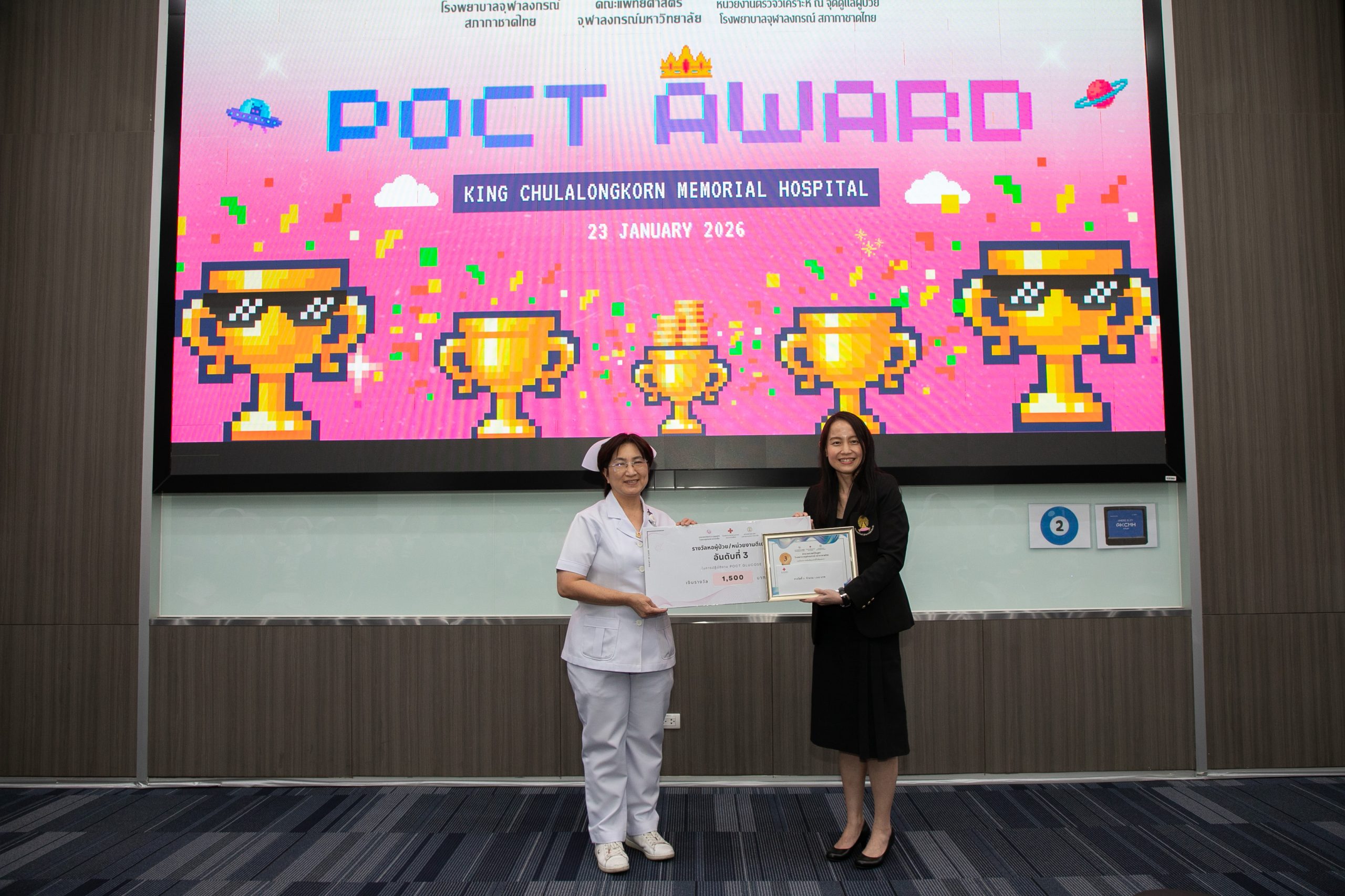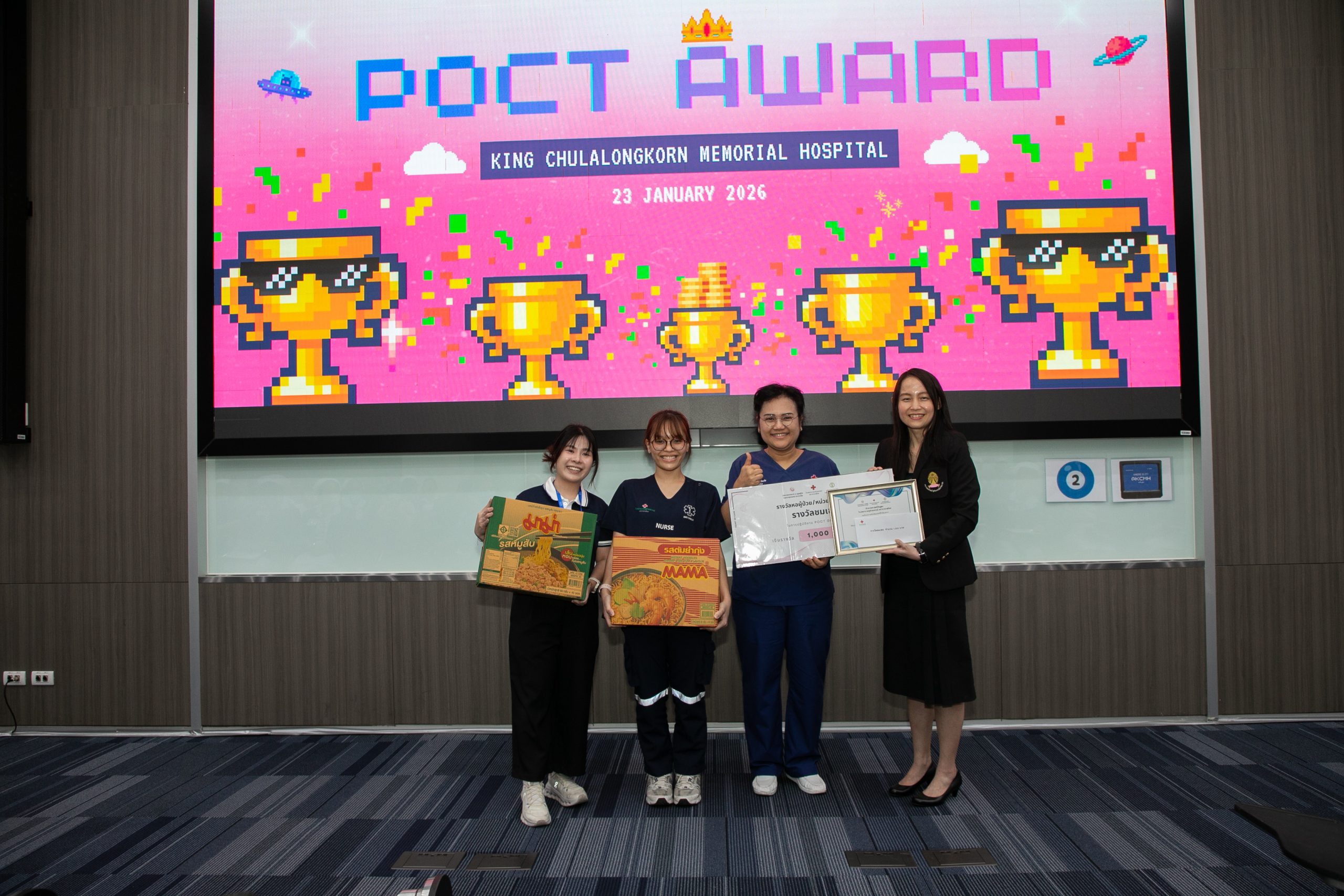 เมื่อวันที่ 22 มกราคม 2569 ฝ่ายเวชศาสตร์ชันสูตร โรงพยาบาลจุฬาลงกรณ์ สภากาชาดไทย จัดโครงการ POCT Day เพื่ออบรมและเตรียมความพร้อมในการขอรับรองมาตรฐาน ISO 15189:2022 และ ISO 15190:2020 โดยมี รศ.พญ.พรรณดี วัฒนบุญยงเจริญ หัวหน้าฝ่ายเวชศาสตร์ชันสูตร เป็นประธานมอบรางวัลแก่หอผู้ป่วยที่มีผลการตรวจประเมินคุณภาพภายในด้านการปฏิบัติงาน POCT ดีเด่น