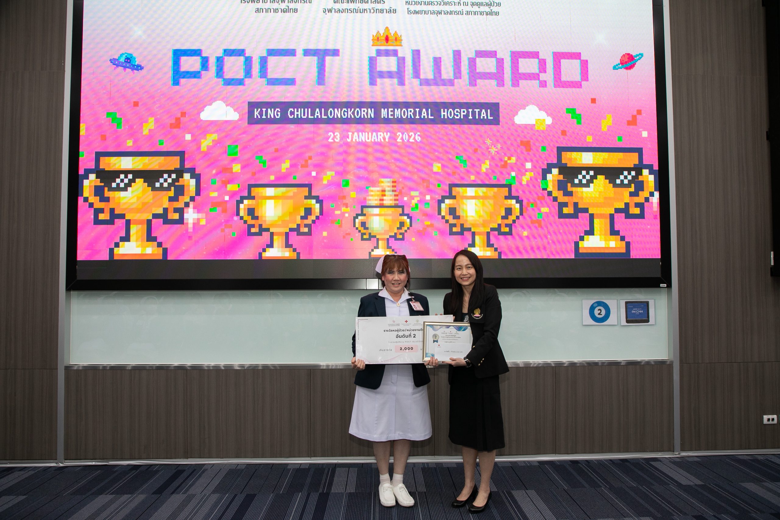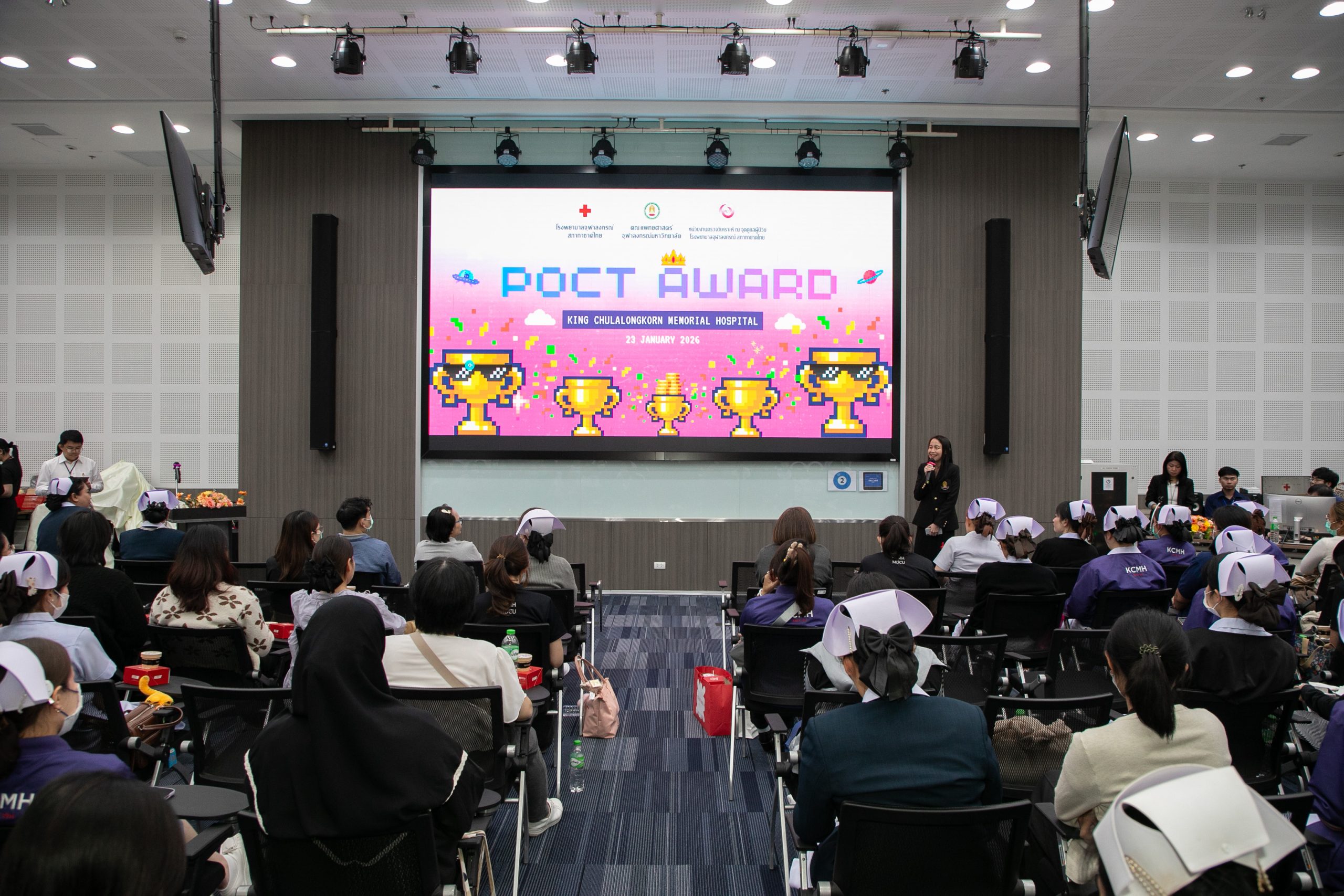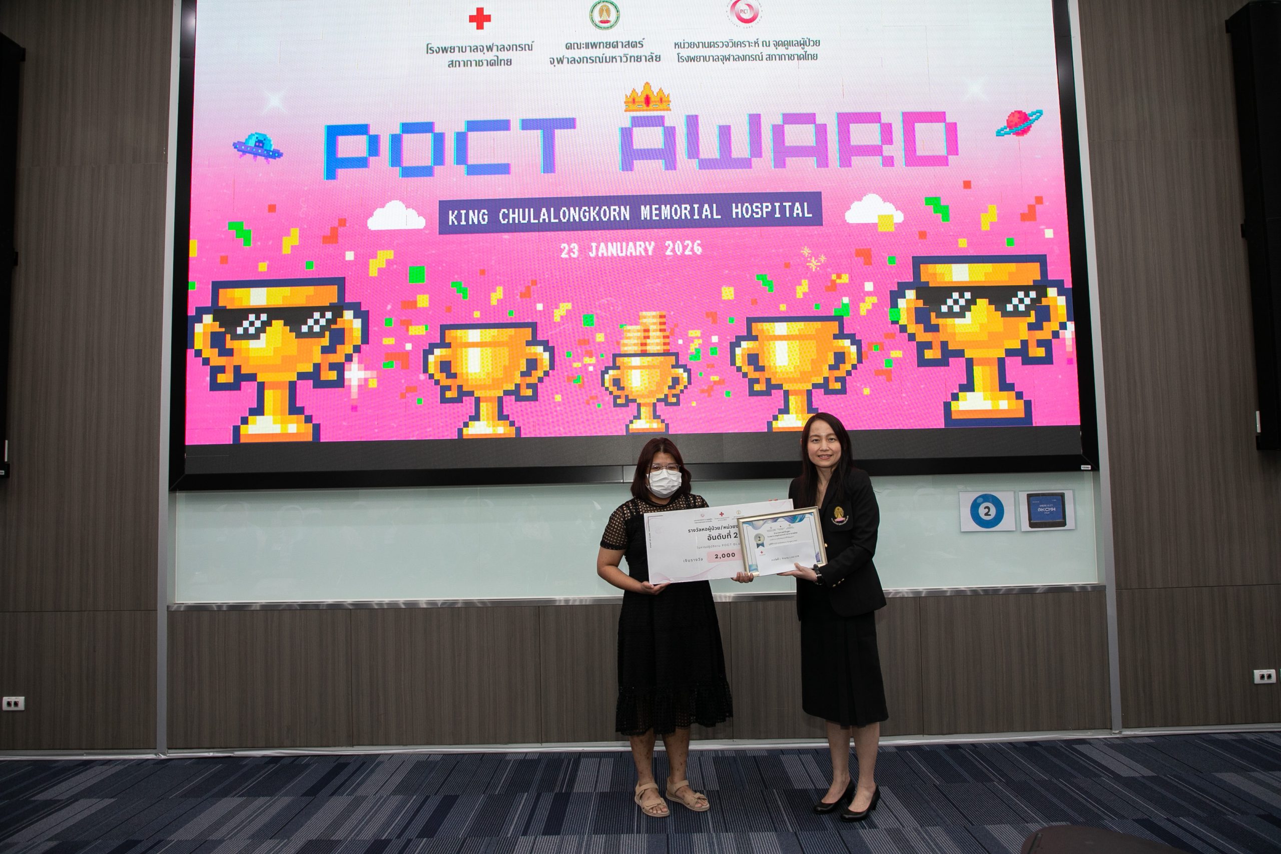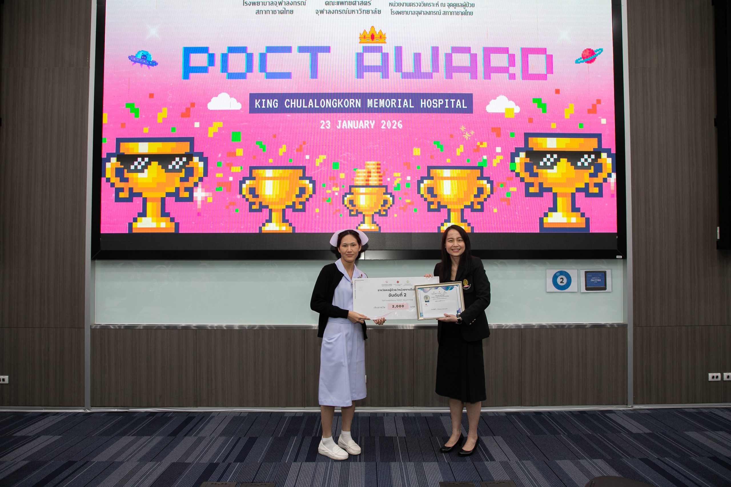 เมื่อวันที่ 22 มกราคม 2569 ฝ่ายเวชศาสตร์ชันสูตร โรงพยาบาลจุฬาลงกรณ์ สภากาชาดไทย จัดโครงการ POCT Day เพื่ออบรมและเตรียมความพร้อมในการขอรับรองมาตรฐาน ISO 15189:2022 และ ISO 15190:2020 โดยมี รศ.พญ.พรรณดี วัฒนบุญยงเจริญ หัวหน้าฝ่ายเวชศาสตร์ชันสูตร เป็นประธานมอบรางวัลแก่หอผู้ป่วยที่มีผลการตรวจประเมินคุณภาพภายในด้านการปฏิบัติงาน POCT ดีเด่น