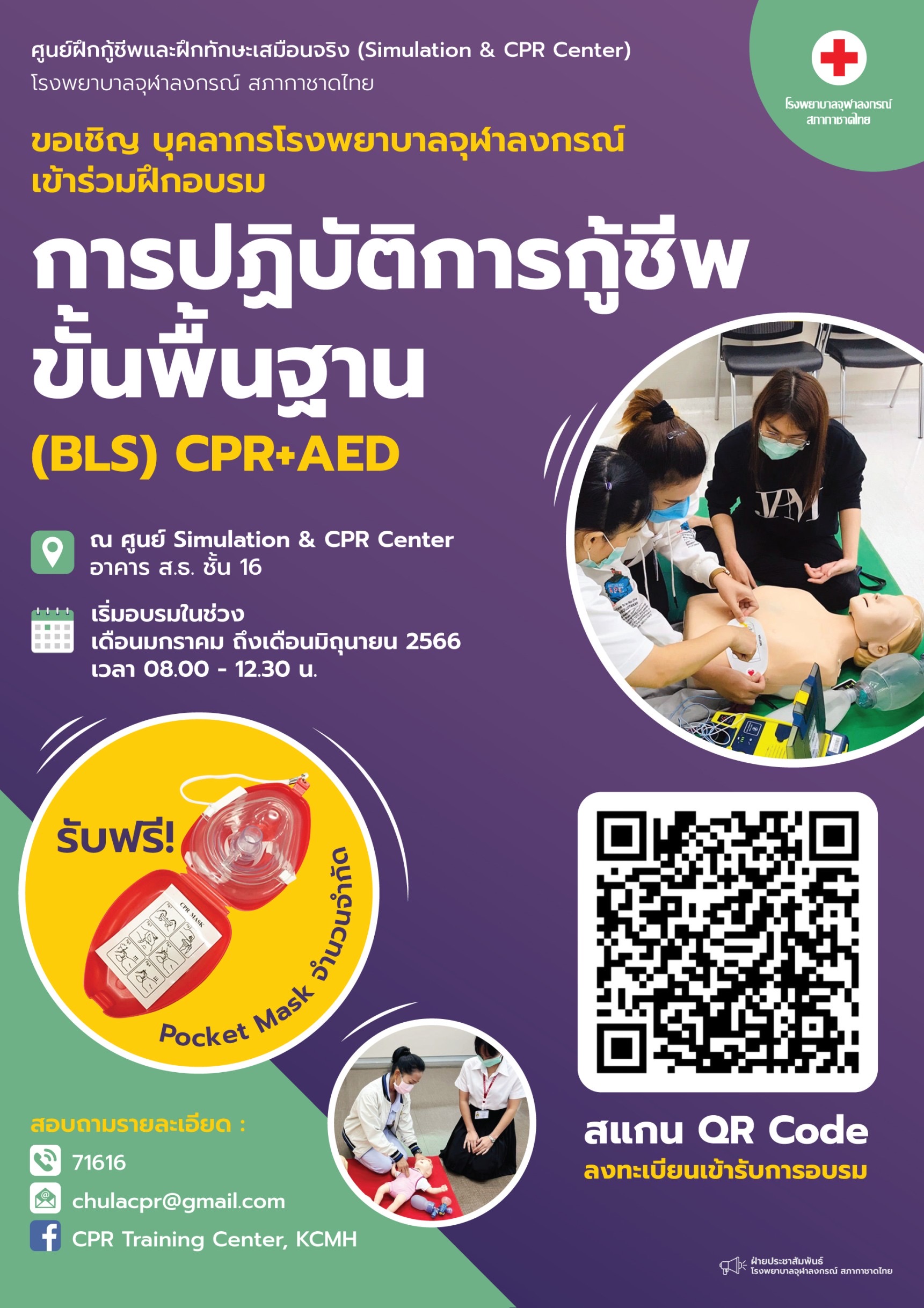 📣 ขอเชิญบุคลากร รพ.จุฬาลงกรณ์ เข้าร่วมฝึกอบรมการปฏิบัติการกู้ชีพขั้นพื้นฐาน (BLS) CPR+AED