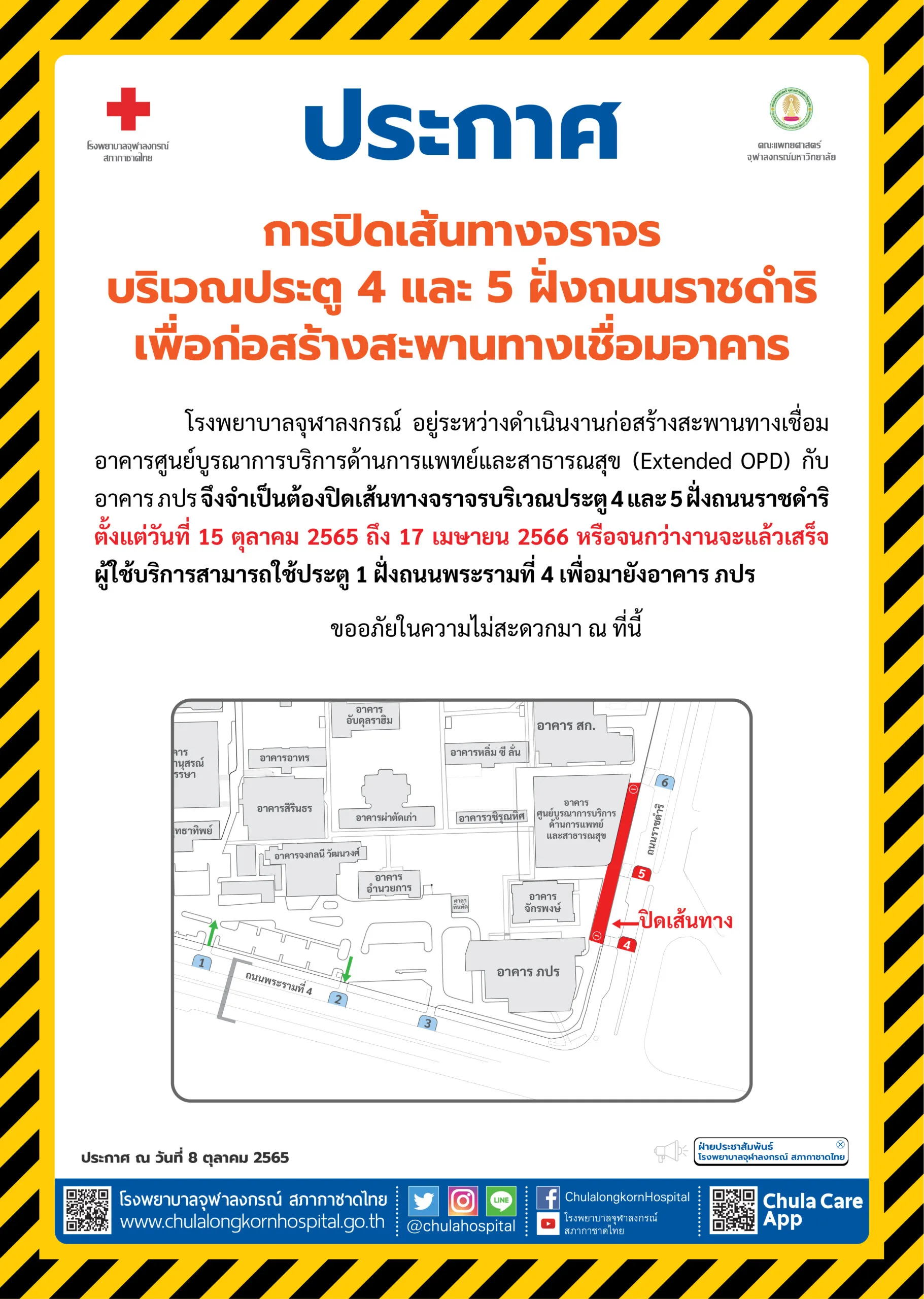 การปิดเส้นทางจราจรบริเวณประตู 4 และ 5 ฝั่งถนนราชดำริ เพื่อก่อสร้างสะพานทางเชื่อมอาคาร