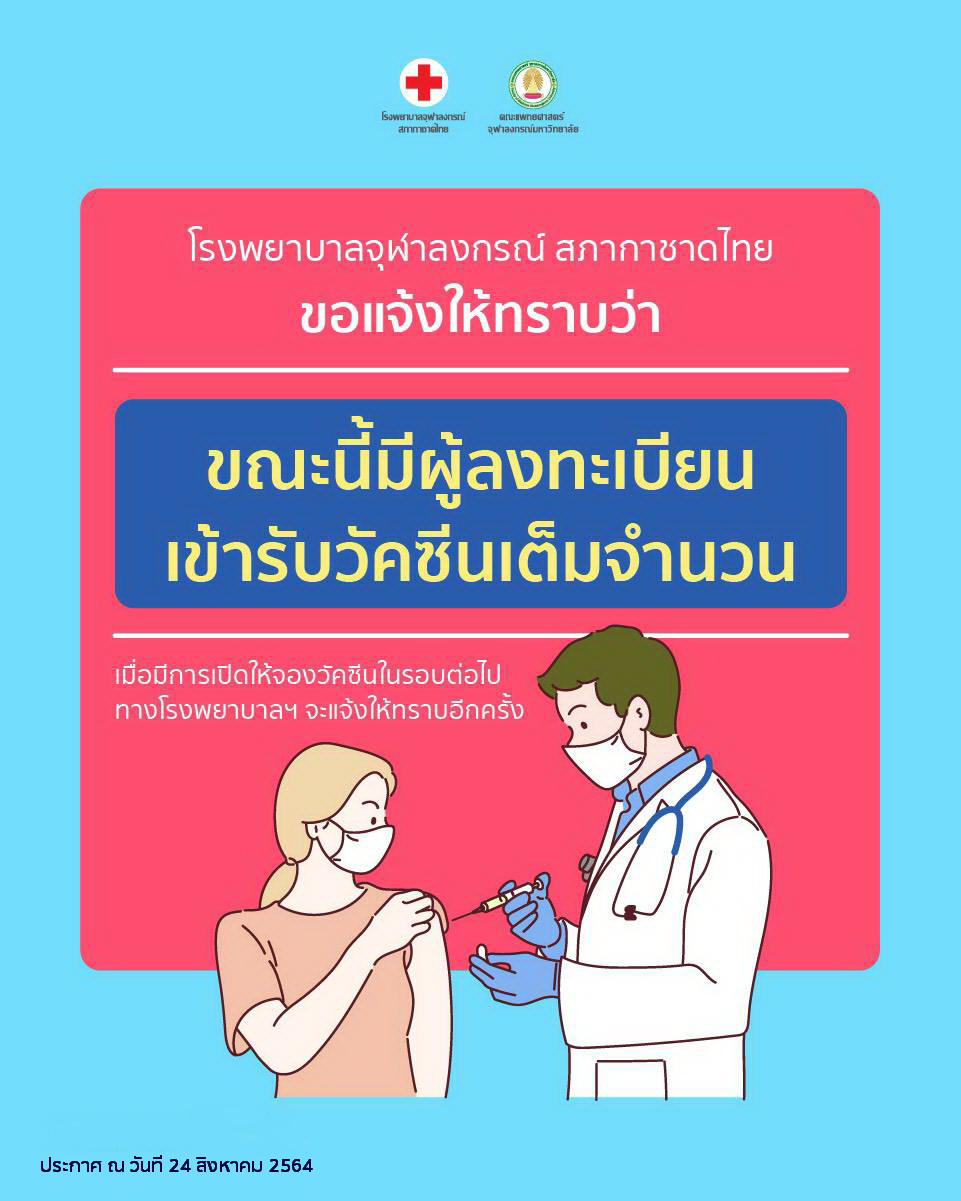 ขณะนี้มีผู้ลงทะเบียน เข้ารับวัคซีนเต็มจำนวน